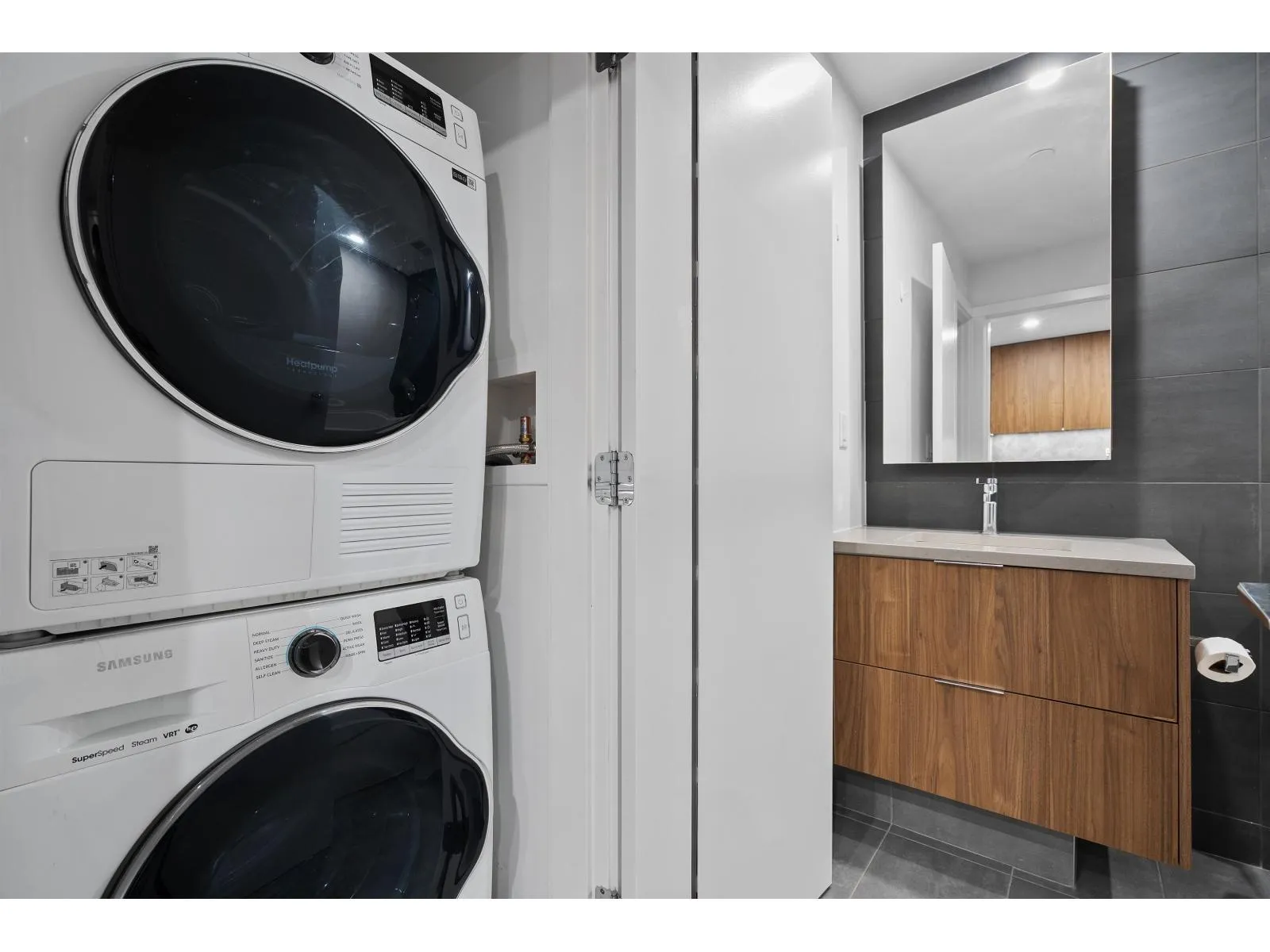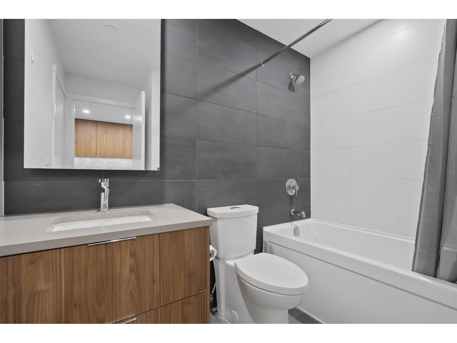 THE HOLLAND by TOWNLINE - located in the vibrant heart of Surrey City Centre. This well-designed 1-bed, 1-bath home on the 2nd floor features a contemporary kitchen with a premium Samsung appliance package, elegant tiled backsplash, under-cabinet lighting, and sleek contrasting cabinetry with ample storage. The spacious primary bedroom comfortably fits a queen bed with side tables, and the spa-inspired bathroom offers a luxurious retreat. Enjoy air conditioning, over-height ceilings, and access to 13,000 sq. ft. of resort-style amenities. Just steps to two SkyTrain stations, Holland Park, and the full array of City Centre shops, services, and restaurants-delivering an effortless urban lifestyle. A/C, heating, and gas included. Rentals and pets welcome! (id:27476)