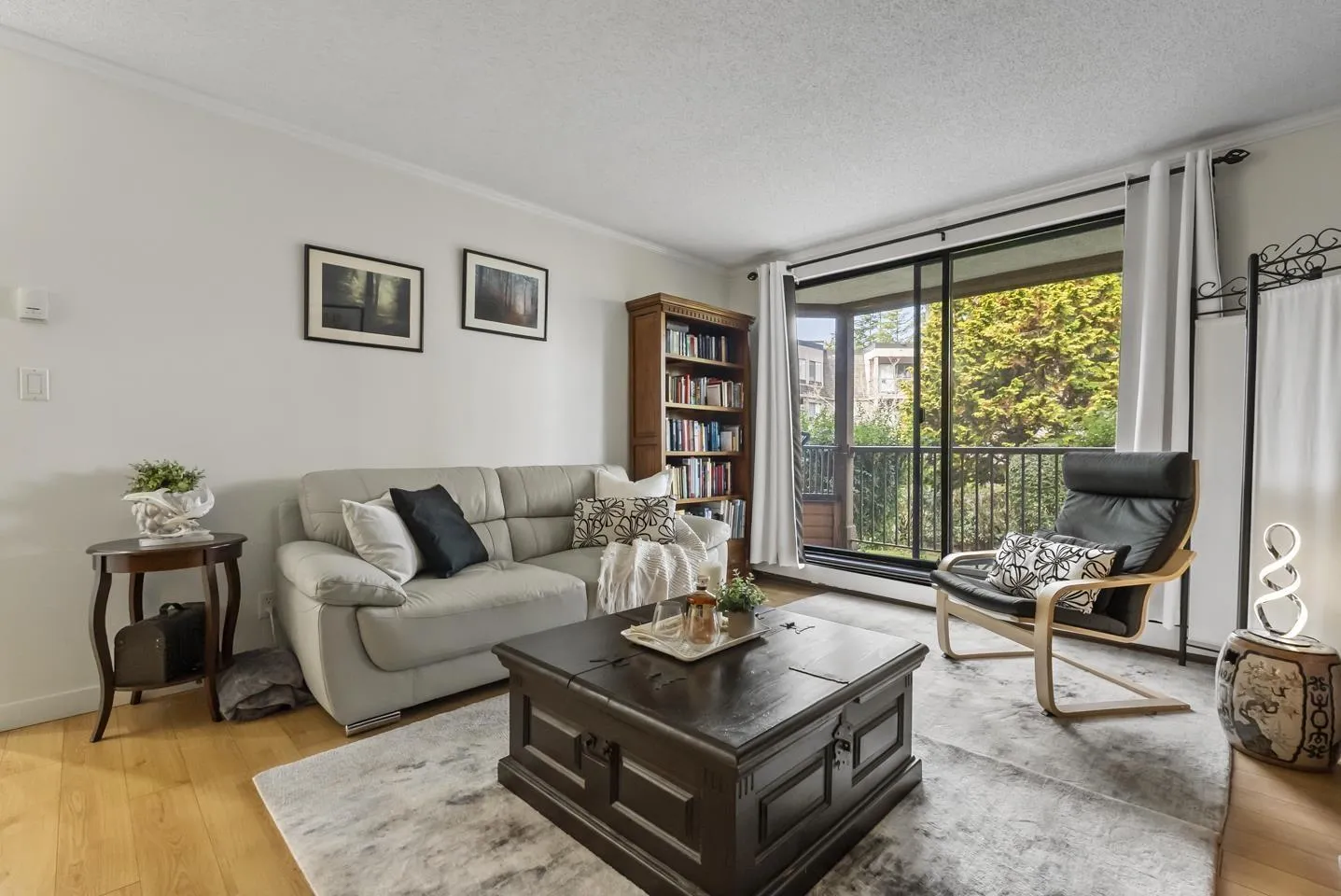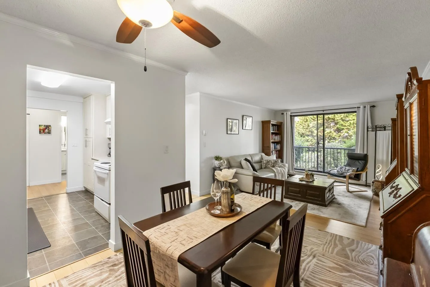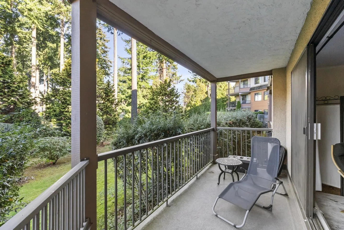 This bright 2-bedroom, 1-bath ground-floor home offers comfortable living with a spacious raised balcony overlooking peaceful greenspace. The unit has updated laminate flooring throughout, a fresh white kitchen with soft-close drawers, tile backsplash, dishwasher, and flooring, plus an updated bathroom and in-suite washer/dryer. Includes 1 parking stall, storage locker, and bike room. All ages are welcome in this no-pets, no-smoking building. Ideally located within walking distance to Semiahmoo Shopping Centre, transit, top schools, Southmere Village Park, and just minutes to White Rock Beach, combining convenience and easy living. (id:27476)
