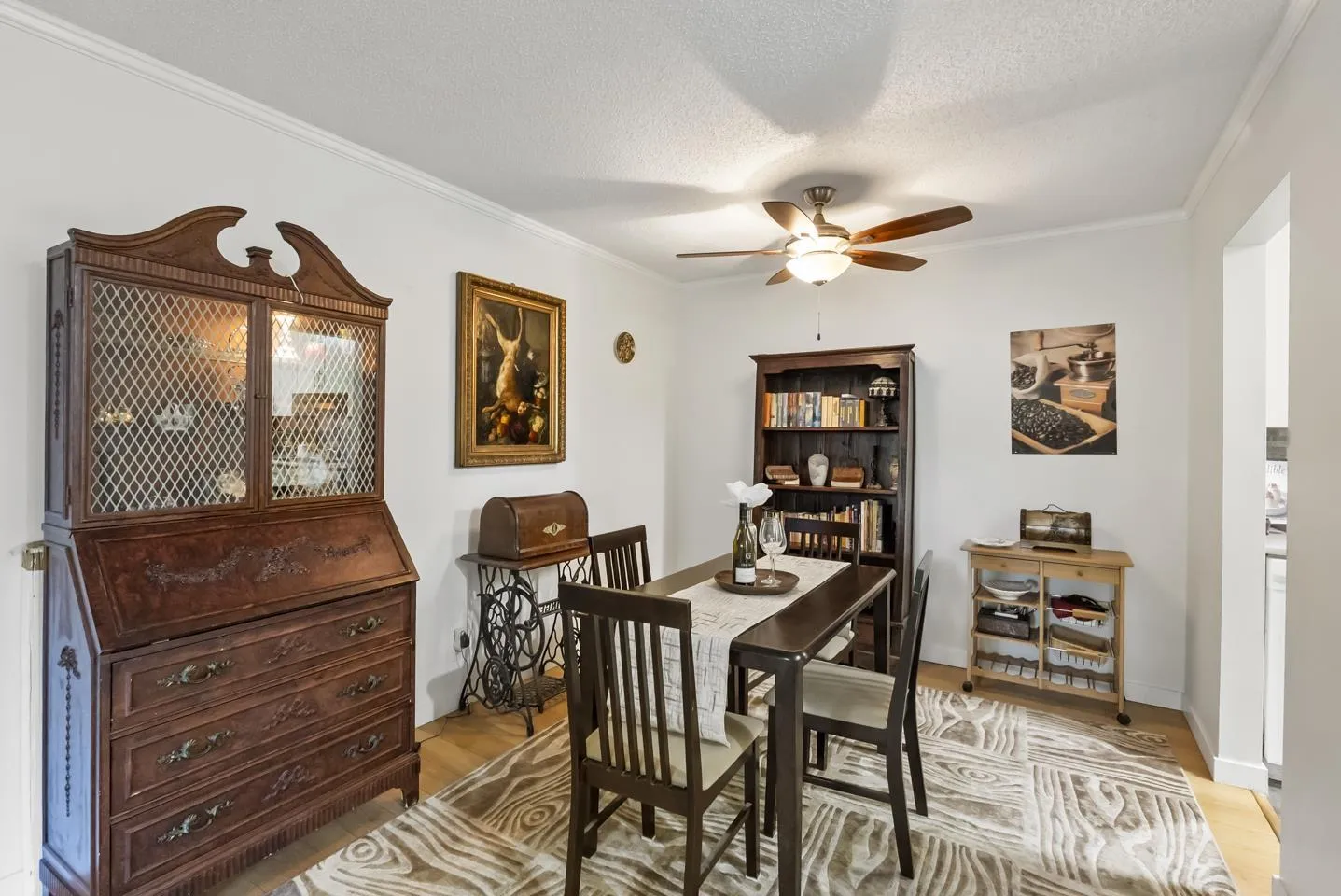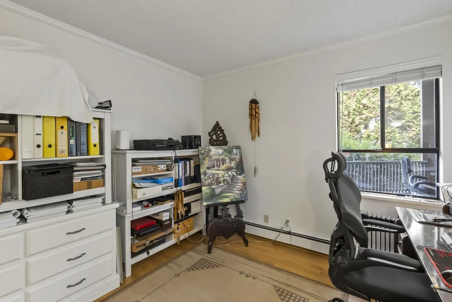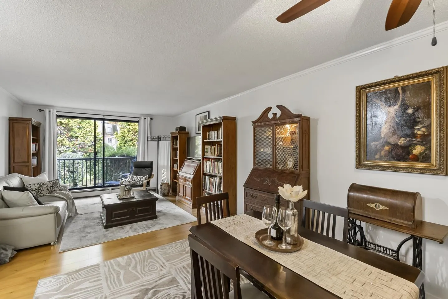 This bright 2-bedroom, 1-bath ground-floor home offers comfortable living with a spacious raised balcony overlooking peaceful greenspace. The unit has updated laminate flooring throughout, a fresh white kitchen with soft-close drawers, tile backsplash, dishwasher, and flooring, plus an updated bathroom and in-suite washer/dryer. Includes 1 parking stall, storage locker, and bike room. All ages are welcome in this no-pets, no-smoking building. Ideally located within walking distance to Semiahmoo Shopping Centre, transit, top schools, Southmere Village Park, and just minutes to White Rock Beach, combining convenience and easy living. (id:27476)