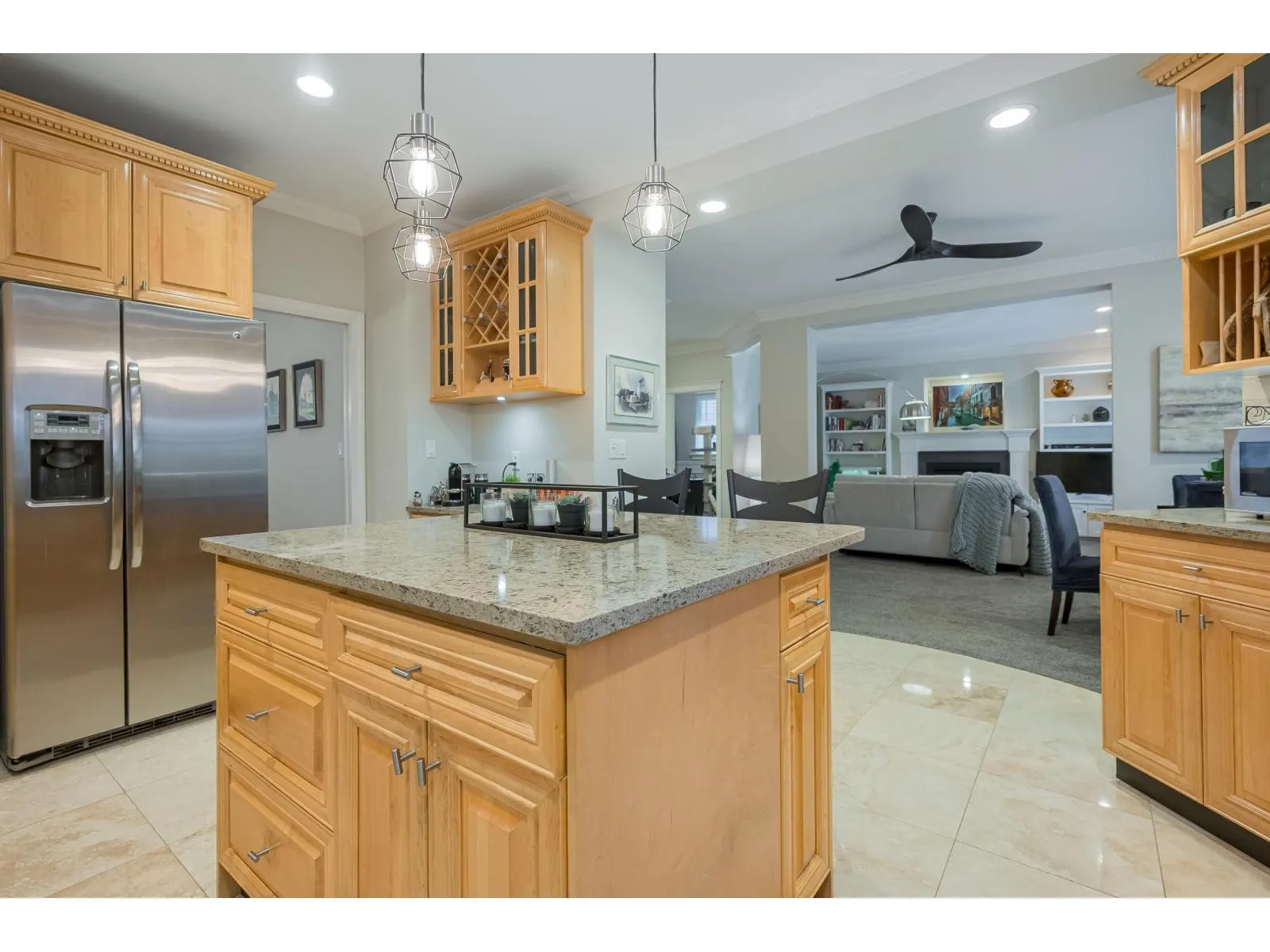 Immaculate 6-bed + den, 5-bath executive residence in coveted Heritage Trails. Fully transformed in 2016 with gourmet kitchen featuring quartz counters, extended island, natural stone floors & backsplash, plus $25K hardwood throughout main. Cozy family room boasts new $7K Napoleon fireplace & custom built-ins. Freshly painted inside/out, new carpets, crown molding, all door hardware, front door & garage door. Treated cedar roof (2023), newer high-efficiency furnace, new ensuite shower, new dishwasher. Bright 1400sq ft 2 bedroom basement suite, full bath & brand-new washer/dryer. Expansive 200sf front porch, low-maintenance paved backyard with new laurel privacy hedging. Top-ranked Semiahmoo Trail Elem & Secondary just steps away. Perfect family home with a mortgage helper suite included. (id:27476)
