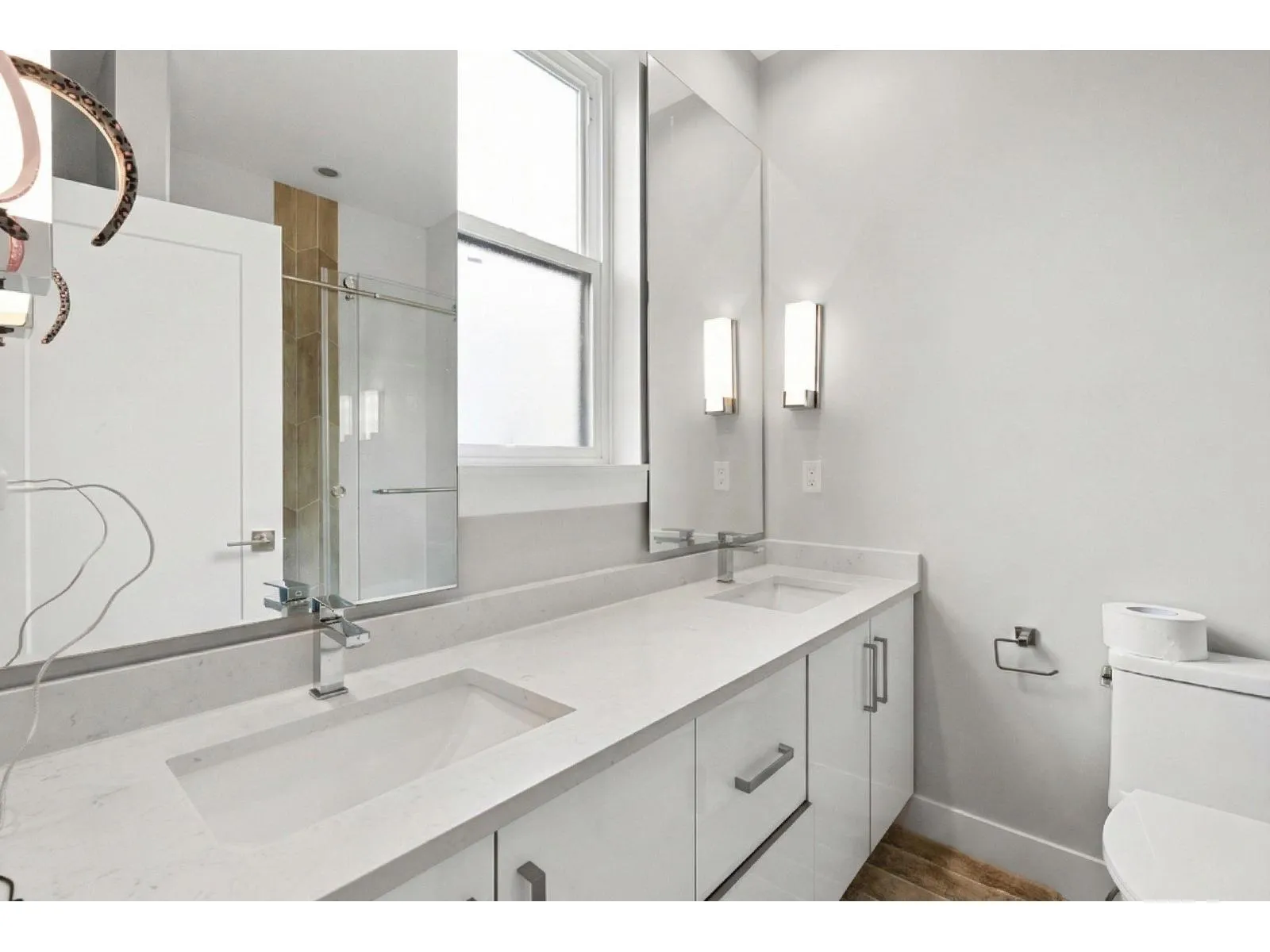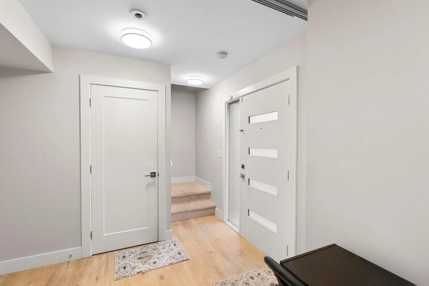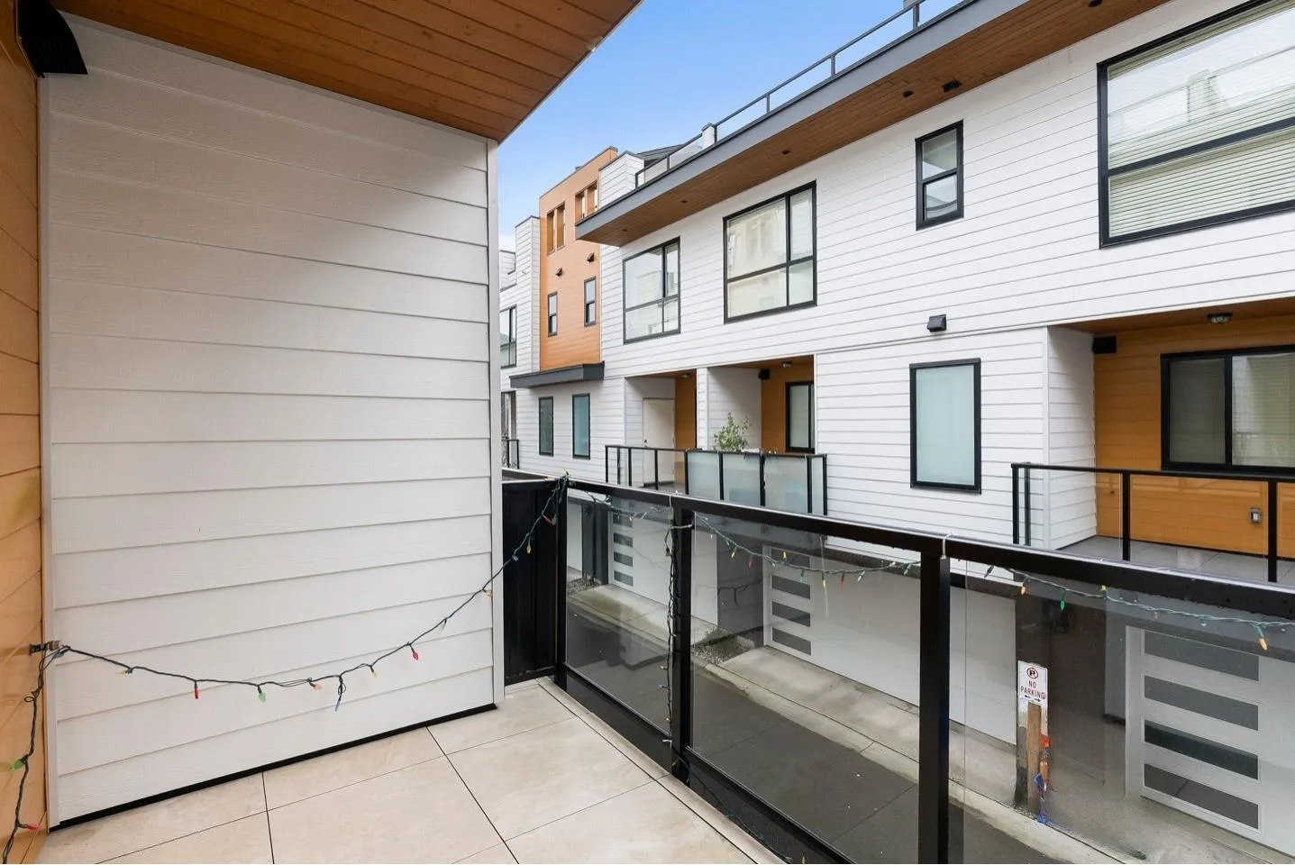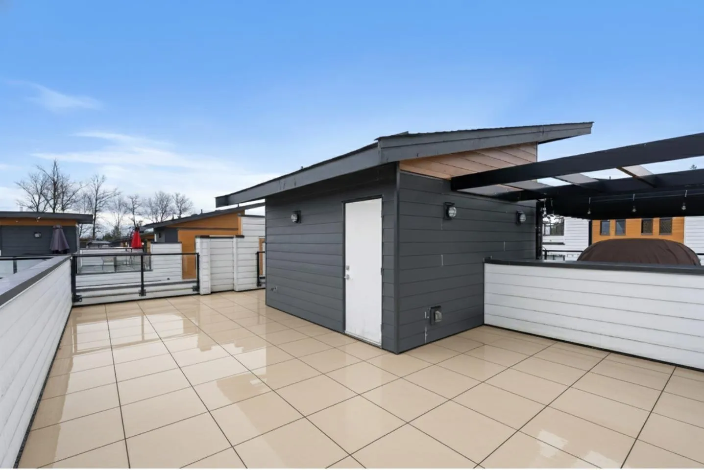Set in the heart of Fleetwood, this 3-bedroom + den townhouse delivers modern living with thoughtful design and incredible outdoor space. The open layout blends a bright living area, electric fireplace, and large windows with a contemporary kitchen featuring quartz counters, gas stove, stainless appliances, soft-close cabinetry, built-in microwave, and a walk-in pantry. Upstairs, all three bedrooms sit together, including a spacious primary suite with a spa-inspired ensuite. The showstopper is the 650+ sq.ft. private rooftop deck-perfect for sunsets, gatherings, and effortless entertaining. With laminate flooring throughout and a double side-by-side garage, this home brings comfort and convenience steps to shopping, parks, transit, and the future SkyTrain. (id:27476)