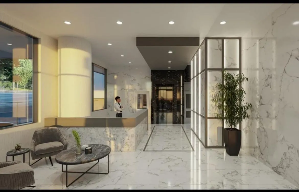 The Grand on King George premier luxury highrise. Residential comfort and convenience. 5 floors of commercial space. 23000 sqft of amenities including 24/7 concierge service. Fitness centre, outdoor space, BBQ facilities. 2 bedroom, 1 bath open concept unit offers a vibrant living area and a balcony with breathtaking views from the 22nd floor. (id:27476)