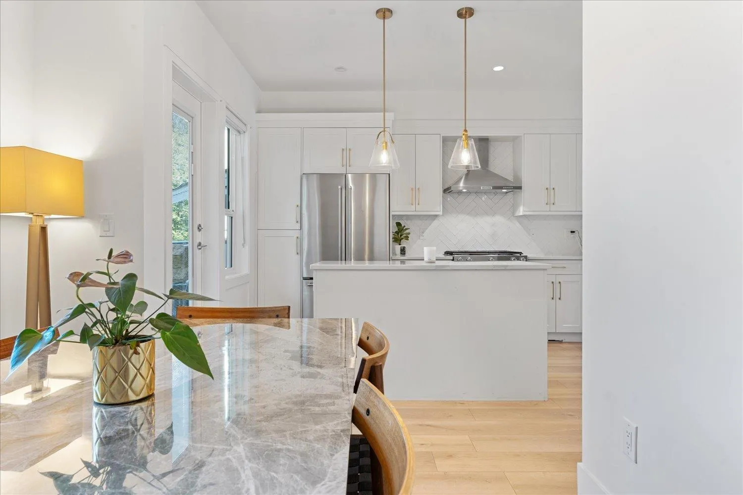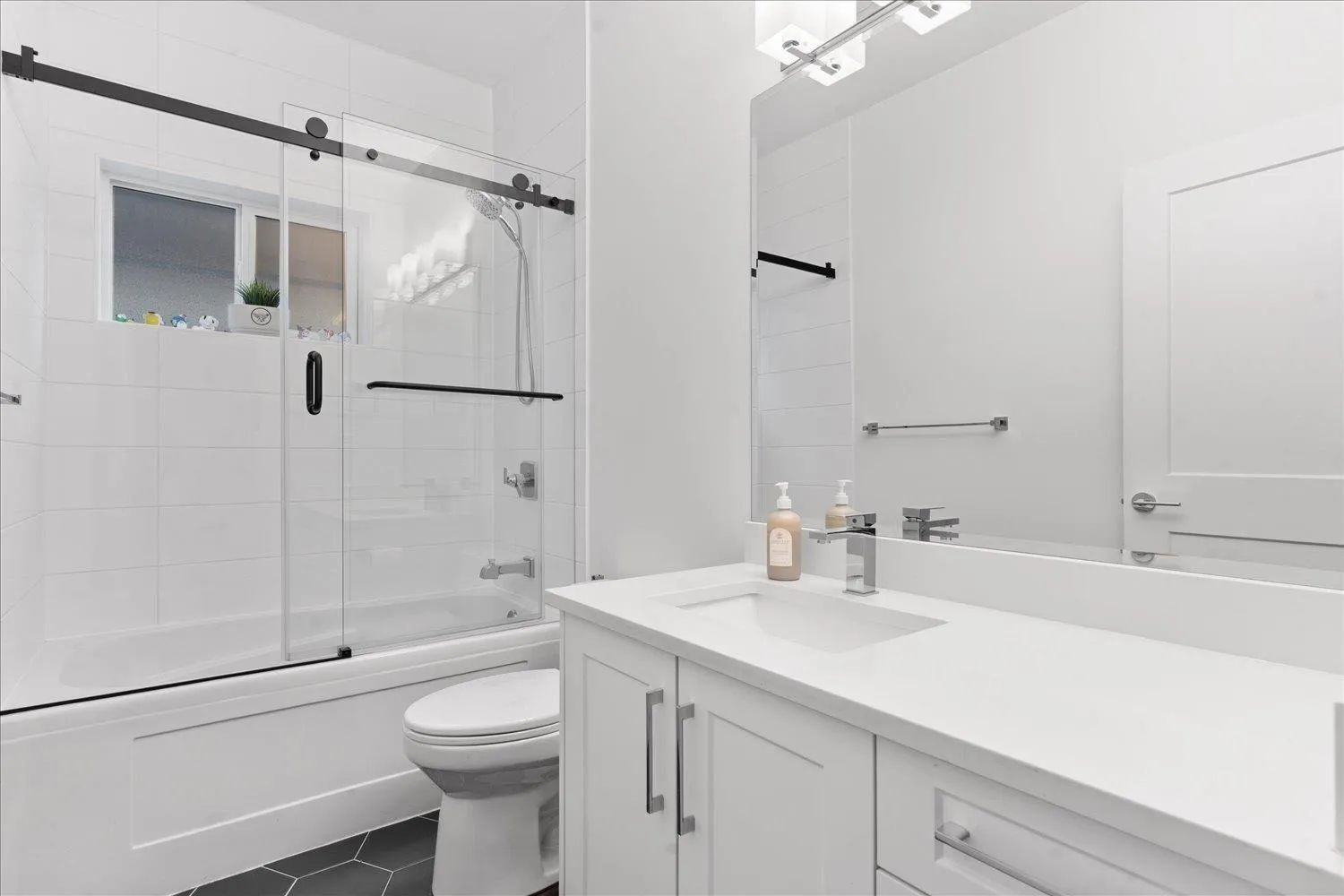 Welcome to PRESTIGE by Sivia Construction - this resale 4 bed + flex duplex-style townhome offers the best location and view in the complex! Bright open layout with a dream kitchen featuring a KitchenAid appliance package, gas range, and soft-close shaker cabinets. Enjoy a spa-inspired ensuite with dual sinks, rainfall shower & body jets, plus high-end finishes throughout. Includes forced air heating, A/C, gas fireplace, Navien on-demand hot water, and 2-car parking. Ideally located in Fraser Heights, close to parks, schools, Guildford & Willoughby Town Centres. Luxury, lifestyle, and location - this one has it all! Quick possession possible. (id:27476)