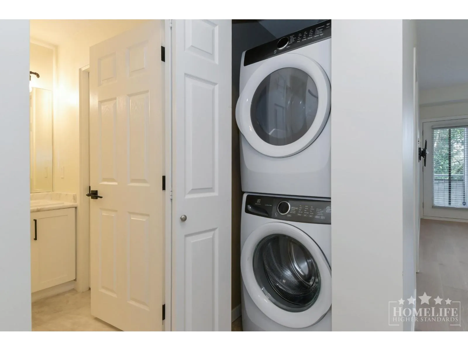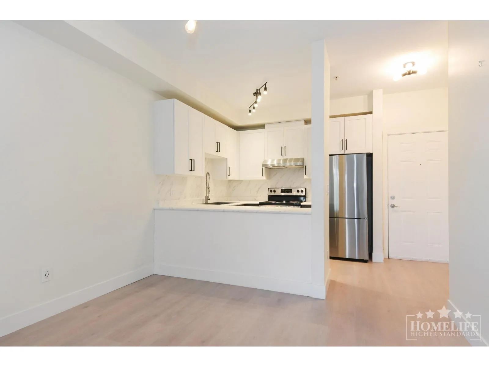 Bright & updated 1-bed condo in Pacifica, located in Surrey City Centre near Gateway SkyTrain. This peaceful, garden-style community offers easy access to shopping, dining, and transit. The ~600 sq ft west-facing unit features an open layout, large windows, private balcony, in-suite laundry, full kitchen with dishwasher, and warm modern finishes. Building includes secure entry, underground parking, elevator, amenity room, and allows cats. Unit comes with 1 parking stall and 1 locker. Min 1-year lease, 2M liability insurance, no smoking, credit/income check required. (id:27476)