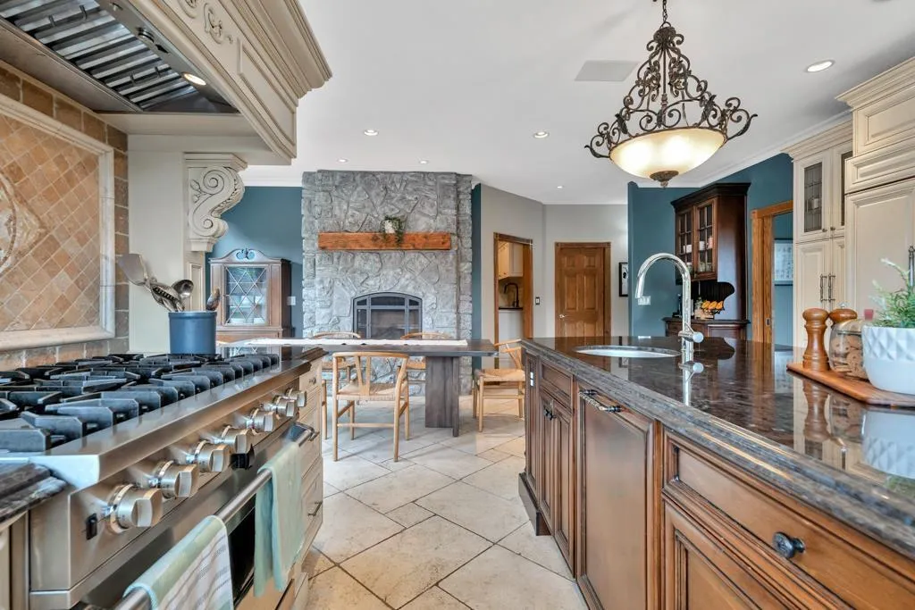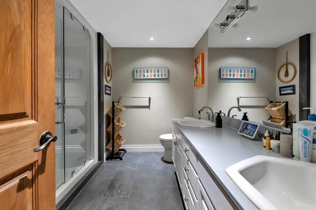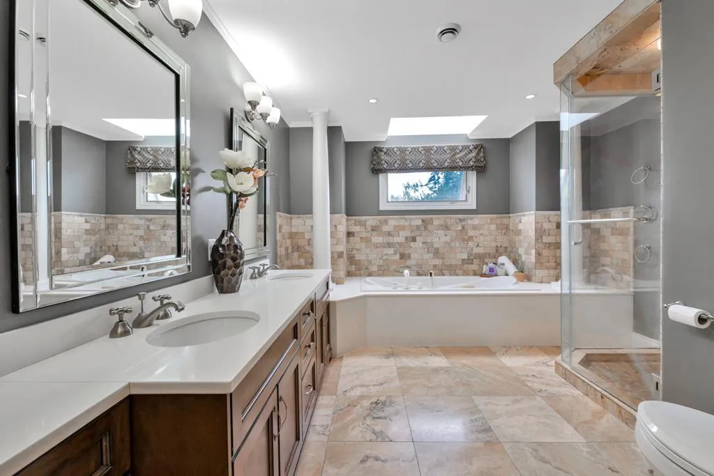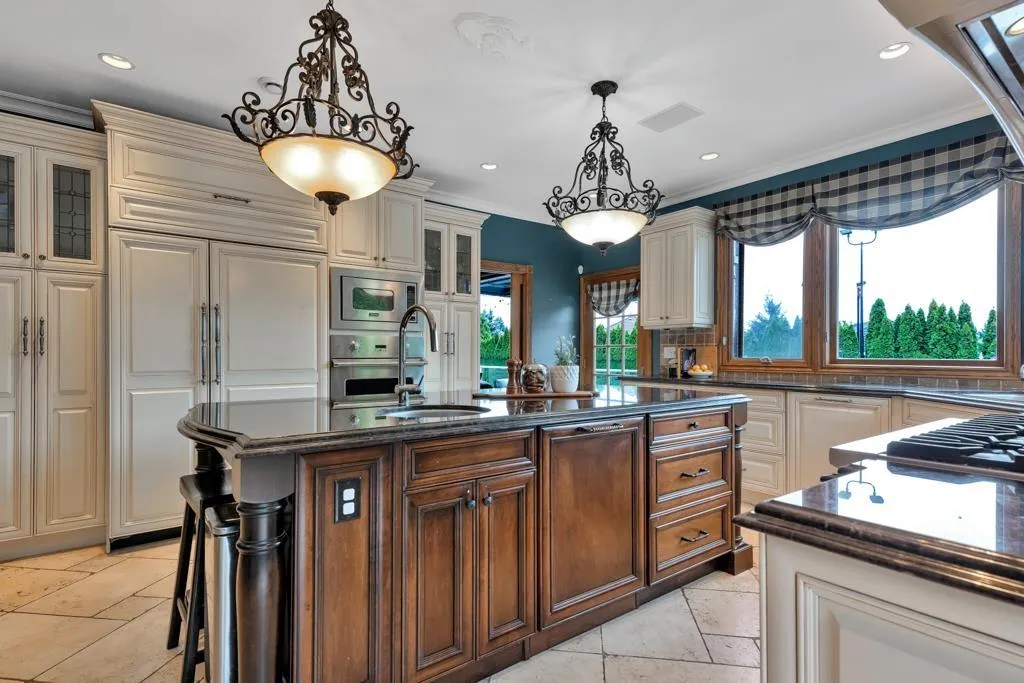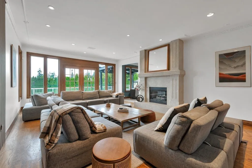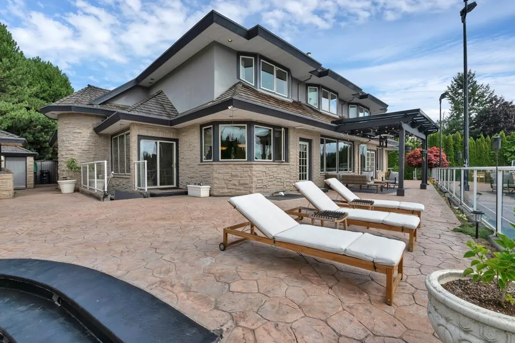 RESORT STYLE living in Panorama Ridge! This stunning estate boasts 8,000+ sq ft on a half-acre lot, perfect for entertaining or keeping the kids busy. Dramatic entry with soaring ceilings, formal dining, massive living & family rooms divided by a 2-way fireplace. Dream kitchen with large island, high-end appliances & 2 Sub-Zero fridges. Bonus main-floor bedroom w/ ensuite + hidden private office. Upstairs: 4 oversized bedrooms incl. a retreat-like primary with spa inspired ensuite clad in Calcutta gold marble tile. Basement has 1-bed legal suite, gym, luxe theatre with 133" screen & gold accents, extra bedroom & steam shower. Outside: 20x40 pool, regulation size tennis court, sauna, hot tub & outdoor kitchen/bar. Triple car garage for all your toys. Live the resort lifestyle every day! (id:27476)