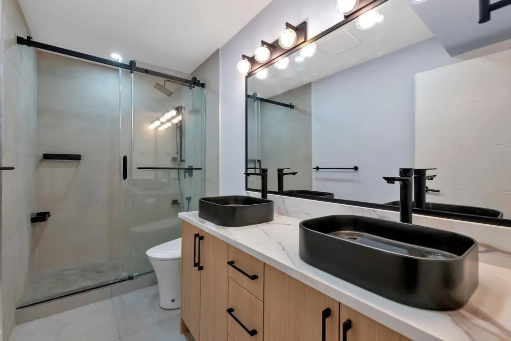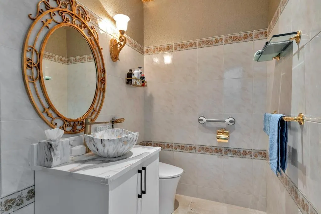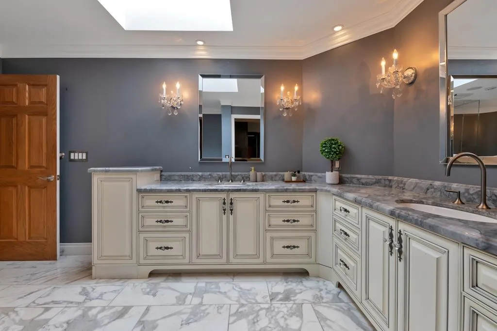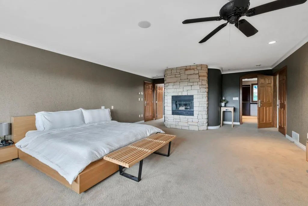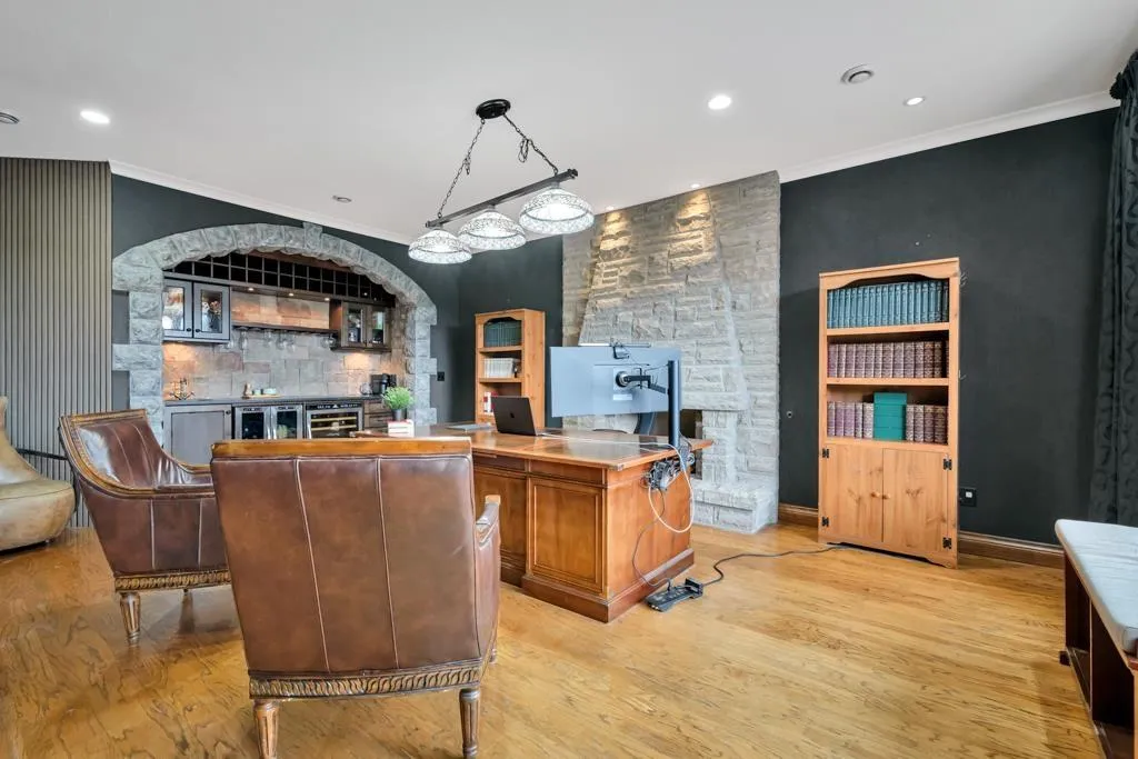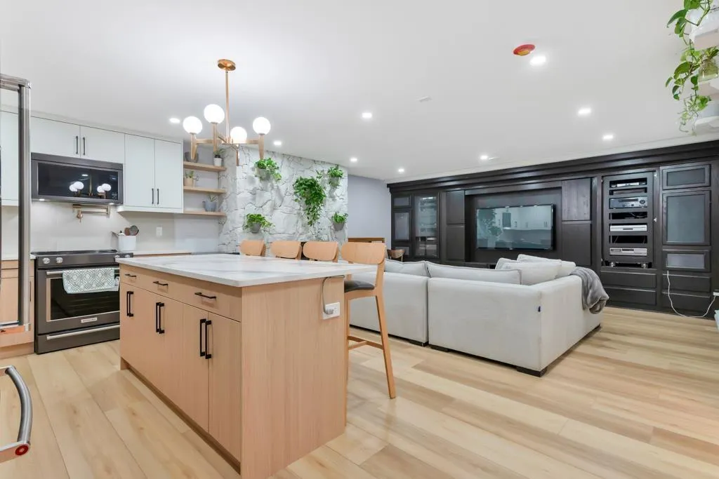 RESORT STYLE living in Panorama Ridge! This stunning estate boasts 8,000+ sq ft on a half-acre lot, perfect for entertaining or keeping the kids busy. Dramatic entry with soaring ceilings, formal dining, massive living & family rooms divided by a 2-way fireplace. Dream kitchen with large island, high-end appliances & 2 Sub-Zero fridges. Bonus main-floor bedroom w/ ensuite + hidden private office. Upstairs: 4 oversized bedrooms incl. a retreat-like primary with spa inspired ensuite clad in Calcutta gold marble tile. Basement has 1-bed legal suite, gym, luxe theatre with 133" screen & gold accents, extra bedroom & steam shower. Outside: 20x40 pool, regulation size tennis court, sauna, hot tub & outdoor kitchen/bar. Triple car garage for all your toys. Live the resort lifestyle every day! (id:27476)