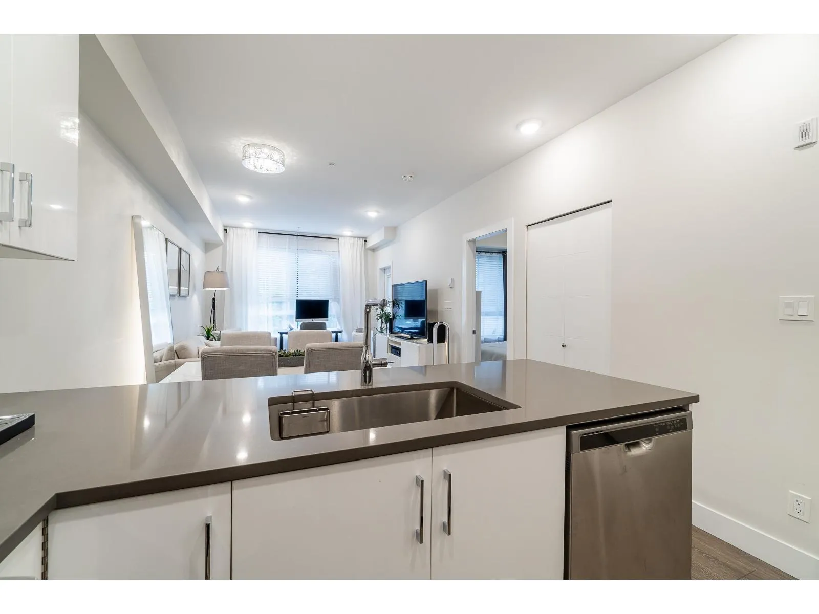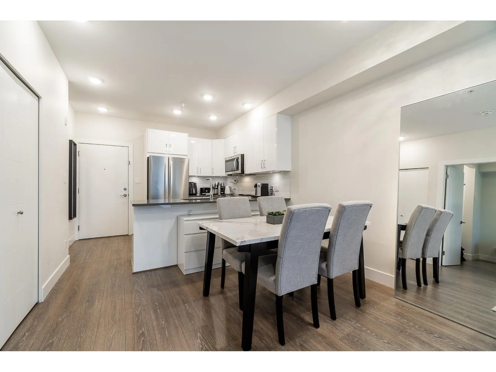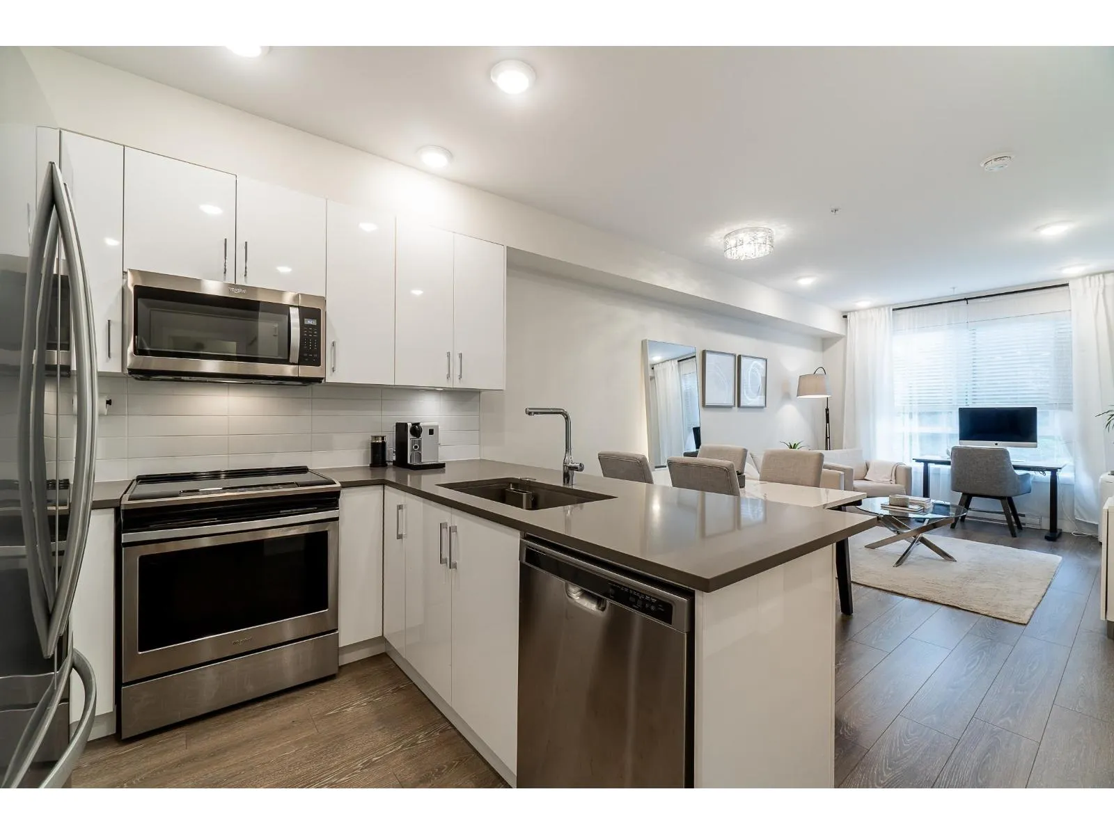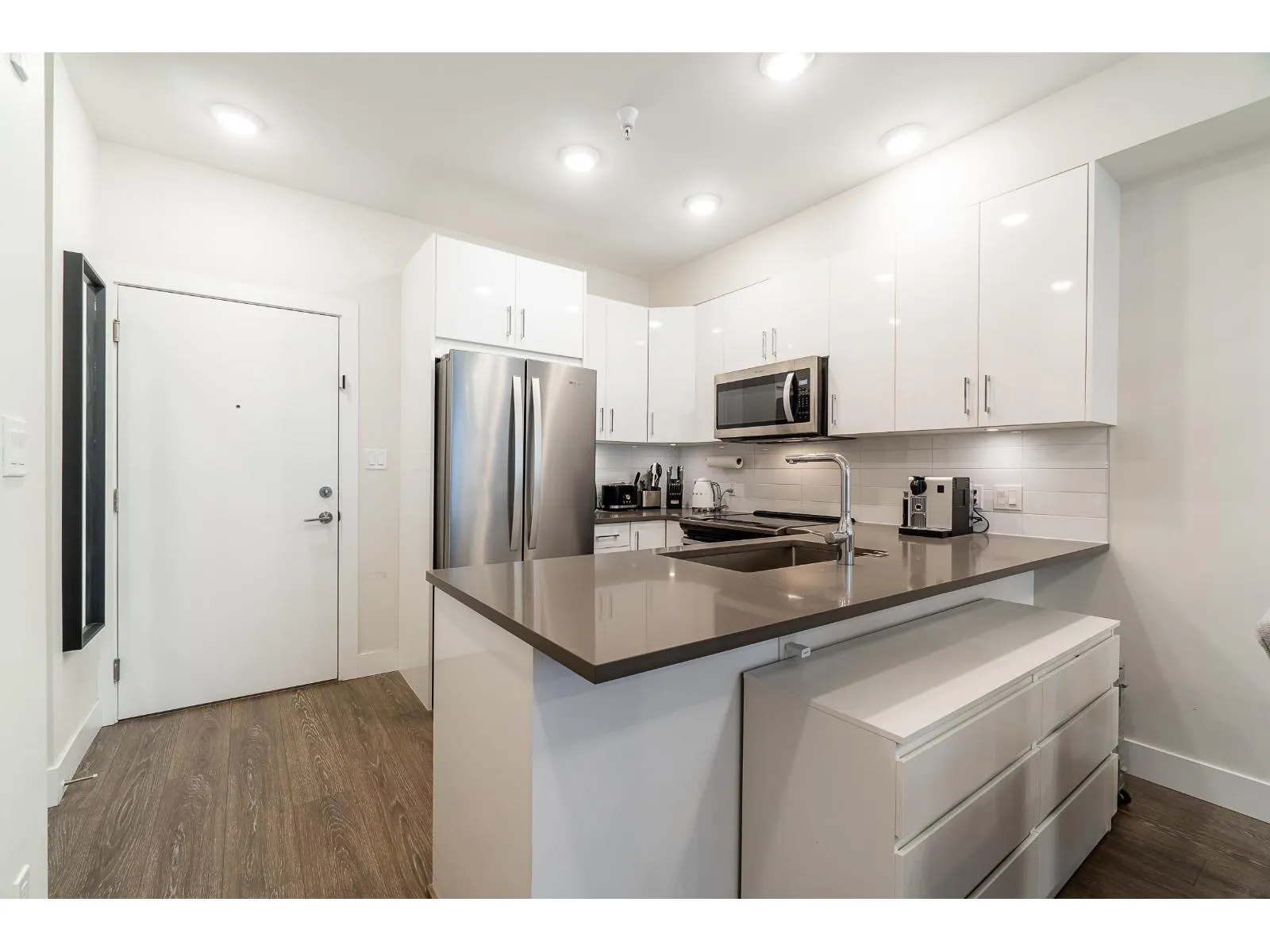 Welcome to The Guildford: A charming 1Bed and 1Bath Condo approx 589 sq.ft. This hidden gem rests in a prime location, nestled in the heart of Surrey. Imagine being just steps away from grocery stores, transits, parks, restaurants, and the Guildford Mall. Open concept floor plan With 9-foot ceilings and generously proportioned extra-large windows, natural light streams in, gives the living spaces in a warm and welcoming glow. The kitchen features S/S appliances and engineered quartz countertops. Delight in the small pleasures of life on your private and cozy patio, the perfect spot for sipping your morning coffee or unwinding after a long day or spend your time using the amenities, which include a gym facility, a fully equipped party room, and a lovely garden. Don't miss out! (id:27476)
