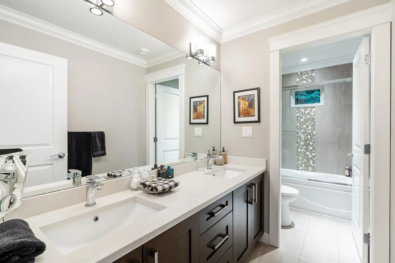 Exceptional craftsman-style residence in sought-after Ocean Park, blending timeless design with modern comfort. This 4-bedroom, 4-bath home is 2526 sqft features an office with coffered ceiling, engineered hardwood floors, custom millwork, and an open great room with gas fireplace and built-ins. The gourmet kitchen includes high-end appliances, oversized island, wine fridge, and walk-in pantry. Upstairs are four bedrooms and three baths, including a spacious primary with walk-in closet and spa-style ensuite. Enjoy the west-facing yard with covered deck gas hookups. Extras include radiant in-floor heating in the primary ensuite, on-demand hot water, Air conditioning and epoxy-finished double garage. Minutes to Ocean Park Village and White Rock Beach. Don't miss this one! (id:27476)