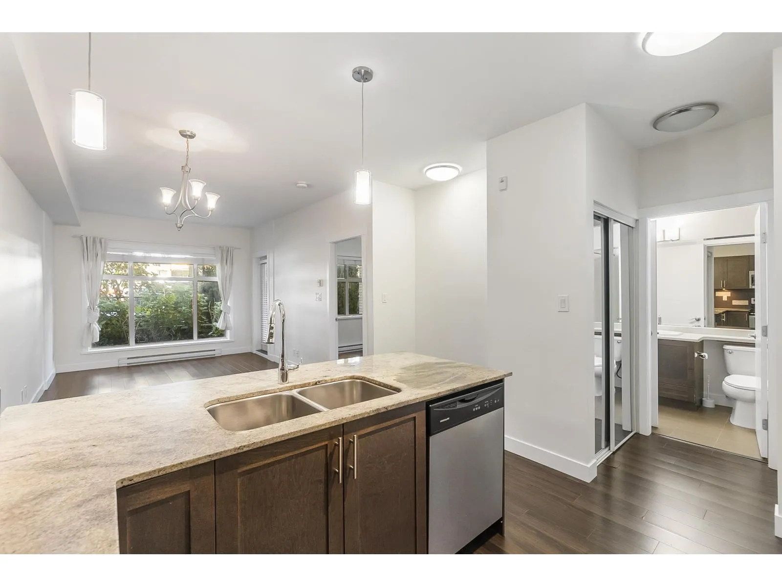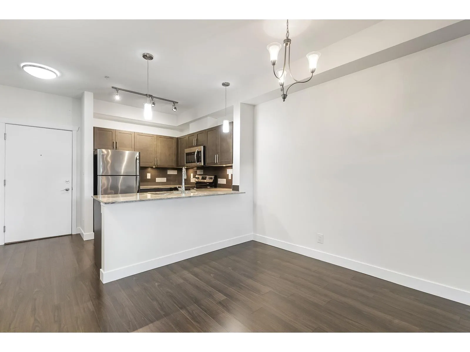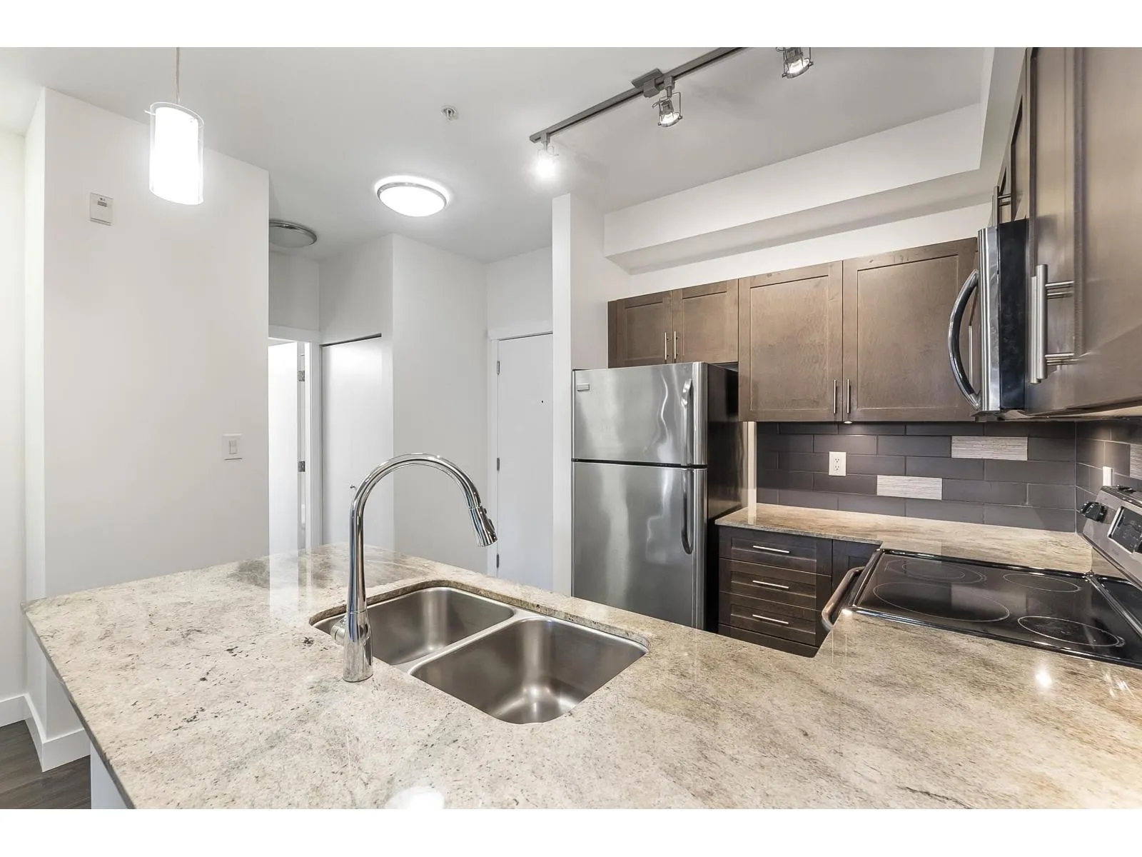 The Brookland - Only 4-minute walk to Gateway SkyTrain Station, Shoppers Drug Mart, & Nesters Market, this well-maintained 1 BDRM/1 BATH GROUND LEVEL condo offers both convenience & comfort. Built in 2011. This 595 SQ.FT FEAT. a functional open-concept layout w/ 9' ceilings & updated laminate flooring in the bedroom. The kitchen is equipped with maple cabinetry, granite countertops, a marble-accented tile backsplash, and quality appliances. Freshly painted throughout. Step outside to your spacious and private patio-perfect for relaxing or entertaining. Enjoy access to building amenities - lounge & fitness room. 1 secured parking stall. Located in the K.B. Woodward Elementary and Kwantlen Park Secondary catchment. Ideal for first-time buyers or investors. Don't miss this opportunity! (id:27476)