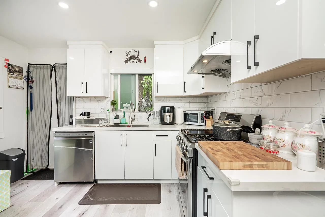 Nestled on a very quiet street, welcome to this beautifully renovated home in Bolivar Heights. Upstairs offers 3 bedrooms and 2 full bathrooms. The kitchen boasts custom cabinetry, quartz countertops, stainless appliances, and leads to a large balcony. The backyard is a nature lovers paradise with countless trees, greenery and the utmost privacy. The long driveway offers plenty of vehicle parking and space for RV. The 2+1 suites with laundry provide great mortgage helpers as well. This home is centrally located near Guildford Mall, James Ardiel elementary school, and minutes to highway 17, Gateway Skytrain Station and much more. This is a great family home and wont last! (id:27476)
