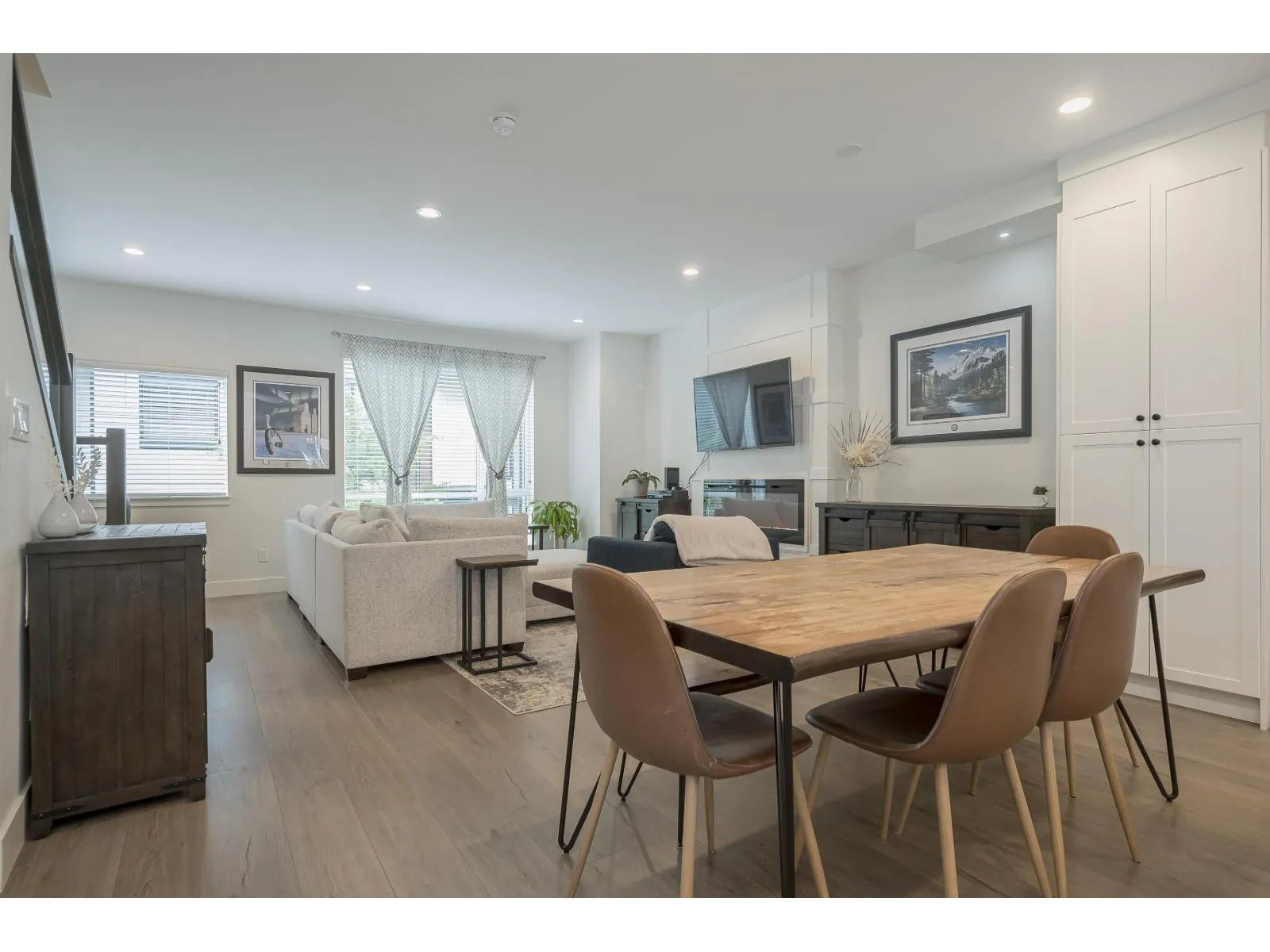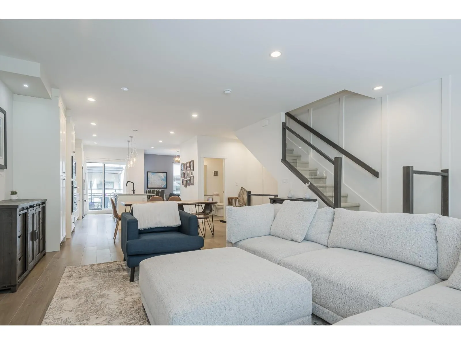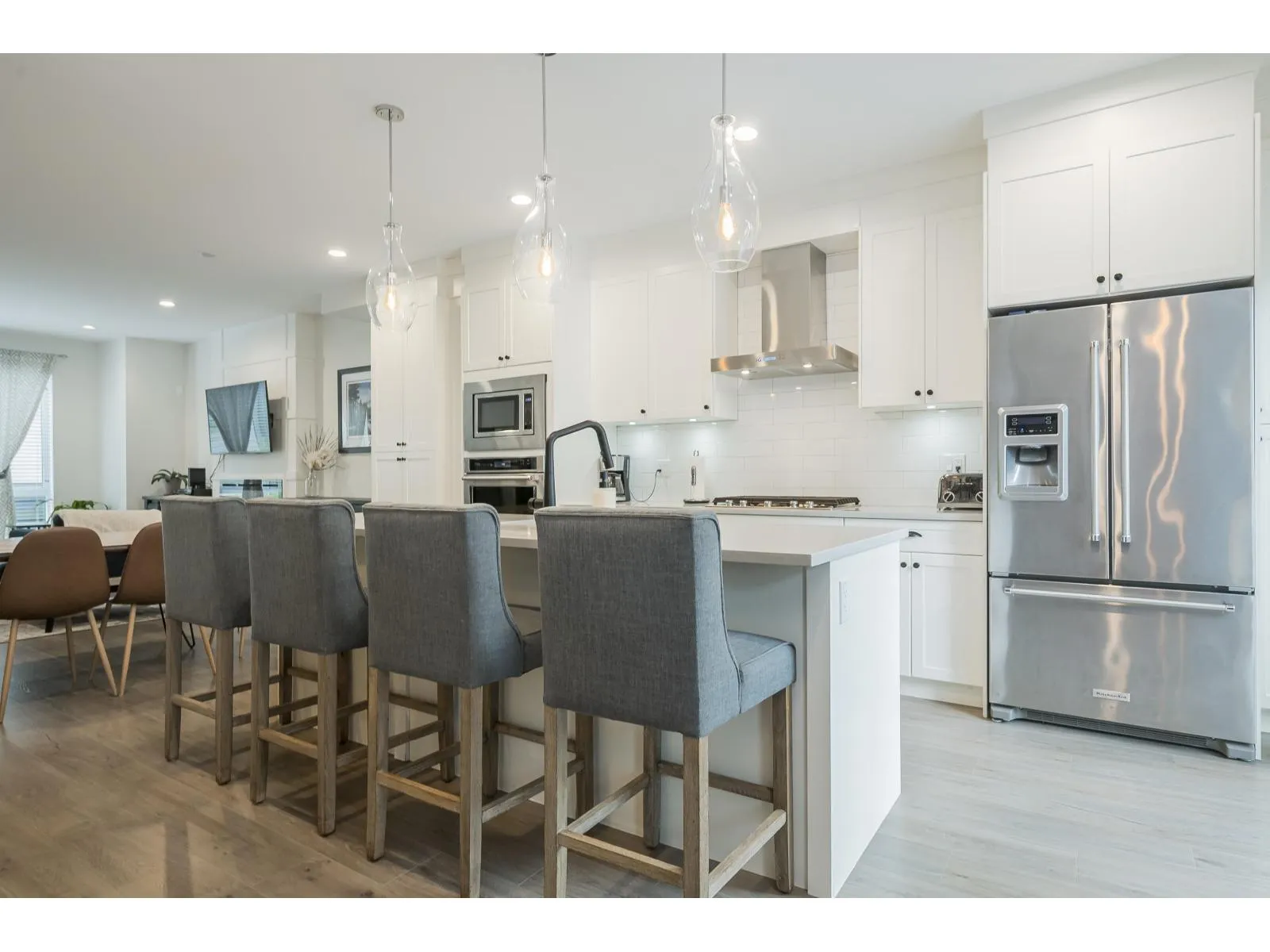 Welcome to this exceptional Sakura townhome with 4 bedrooms and 4 bathrooms in 1,868 sqft of thoughtfully designed space. The open-concept main floor is perfect for entertaining, with a well-appointed kitchen and premium appliances flowing to bright living areas. Upstairs features a primary suite with vaulted ceilings, stylish ensuite, and spacious walk-in closet, plus two additional bedrooms. The ground-level bedroom with full bath makes an ideal guest room or home office. Enjoy forced air conditioning throughout, efficient heating on every floor, and a spacious double garage. The community clubhouse offers an excellent gym. Ideally located near Morgan Crossing shops, top schools, and recreation in one of South Surrey's most desirable communities. (id:27476)