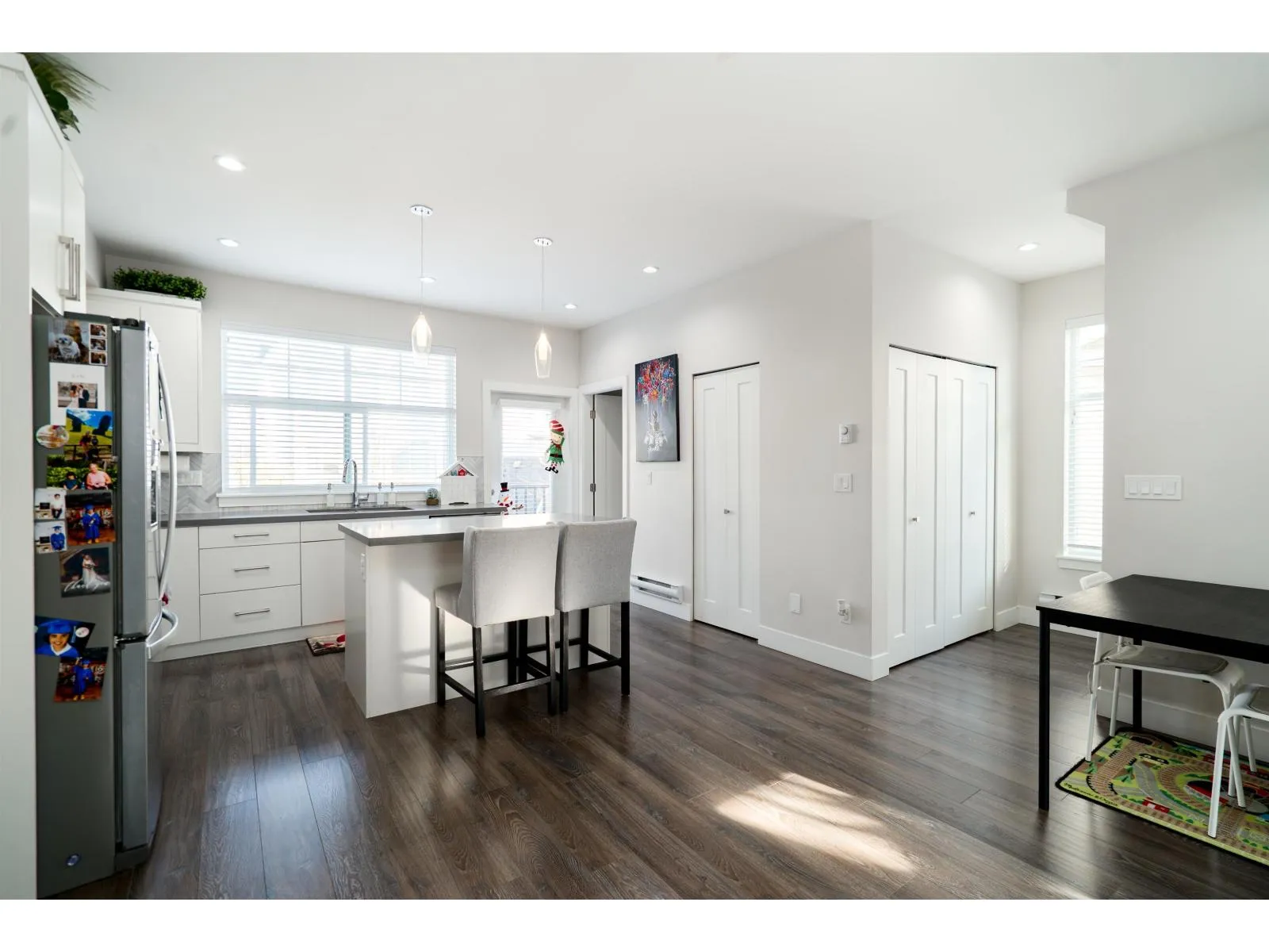 A tranquil neighbourhood of beautiful homes tucked along the Nicomekl River in South Surrey. This bright and airy corner townhome is the one you've been waiting for! Offering 3 spacious bedrooms + rec room, 2.5 baths, and a double side-by-side garage, this home is designed for comfortable family living. Enjoy a fenced front yard with front patio plus a balcony off the kitchen - perfect for a private BBQ or morning coffee. The primary bedroom features vaulted ceilings and a double-sink vanity, while the other two bedrooms offer functional layouts with no wasted space. Nestled just steps from nature, this home sits adjacent to the future Nicomekl riverfront and is surrounded by scenic walking trails. All this, while being conveniently close to commuter routes, schools, and local amenities. (id:27476)