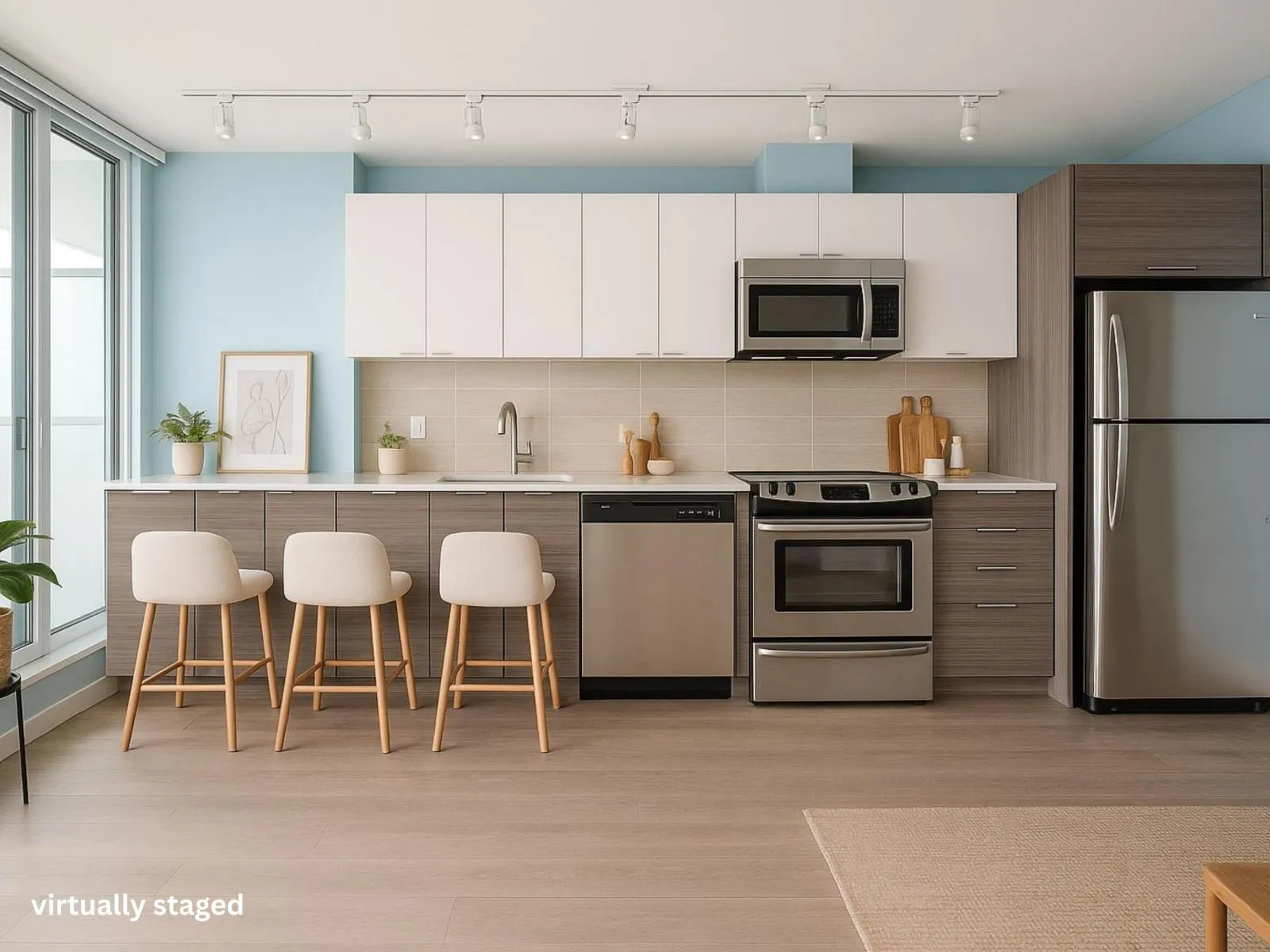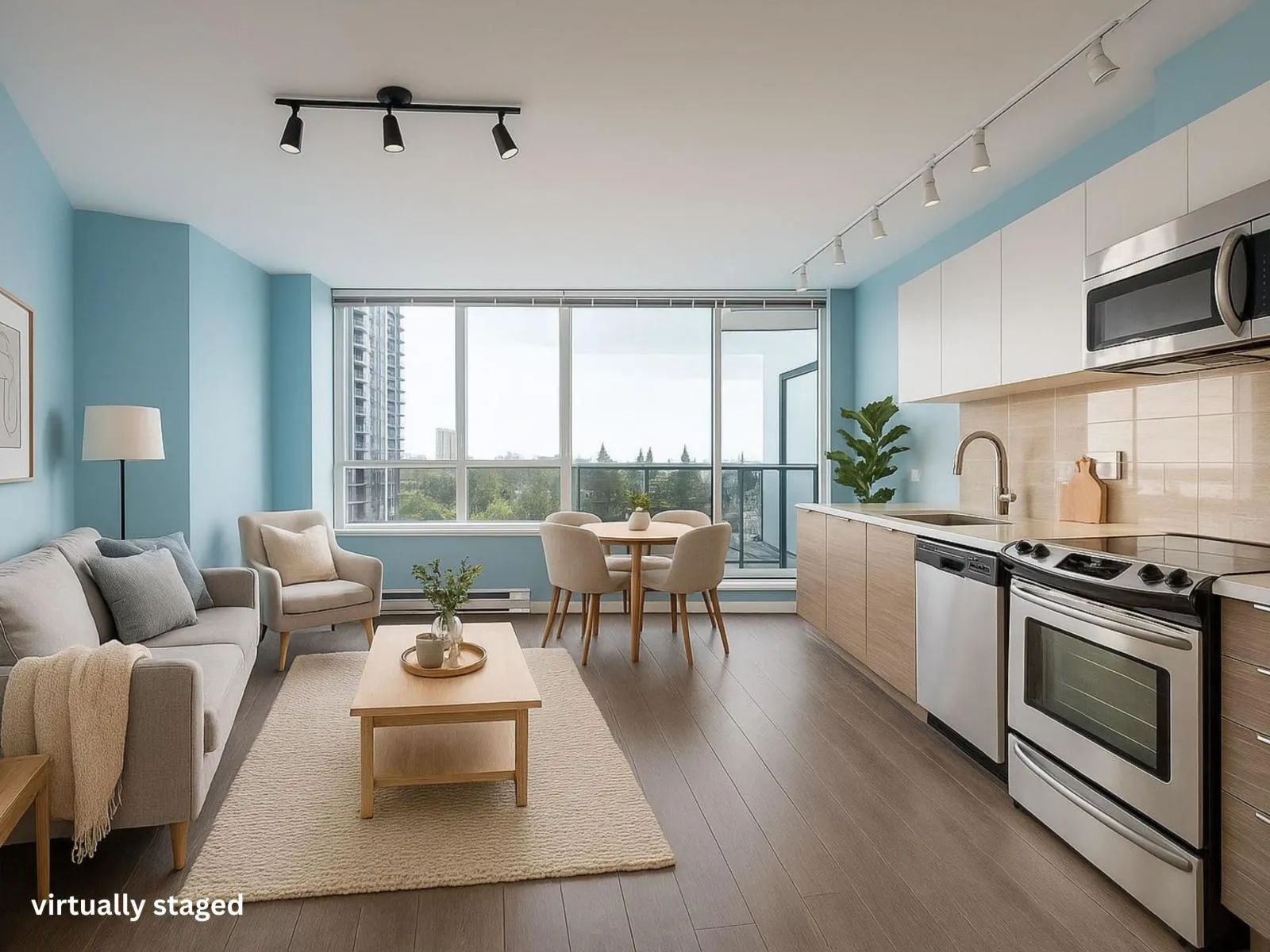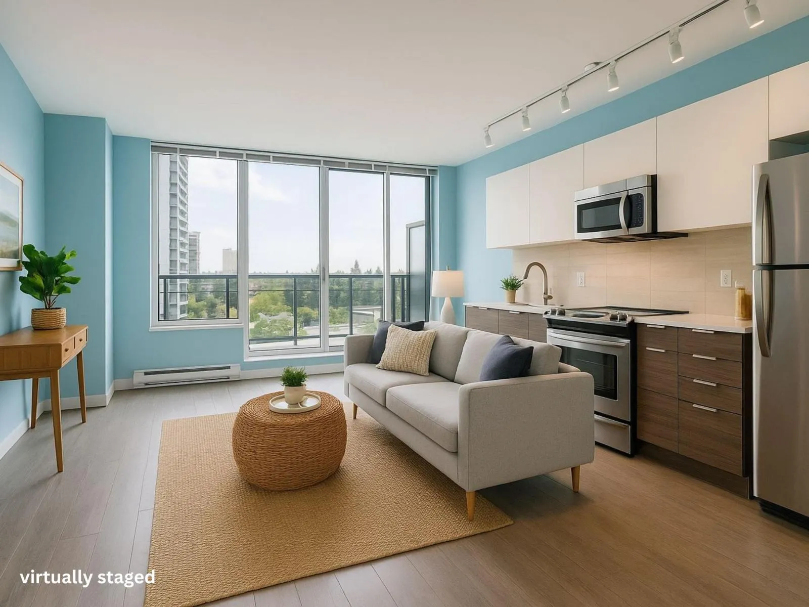 Welcome to The Wave - a modern, centrally located building just steps from King George SkyTrain, SFU, Surrey Centre, and all major amenities. This beautifully designed south-facing home offers a bright and functional 522 sq. ft. layout, thoughtfully configured 1 bedroom flex. Enjoy an open-concept kitchen that spans the width of the home, featuring ample cabinetry and seamless flow into the living and dining areas. The sunny south-facing balcony provides the perfect spot for morning coffee or evening relaxation. BOOK YOUR PRIVATE SHOWING NOW!!! GREAT NEWS!!! 1 PET - NO SIZE RESTRICTION. (id:27476)