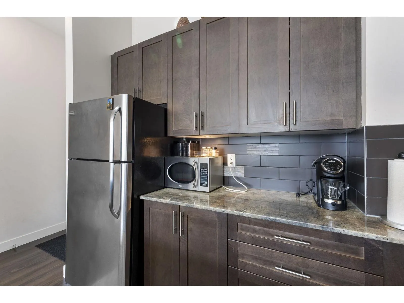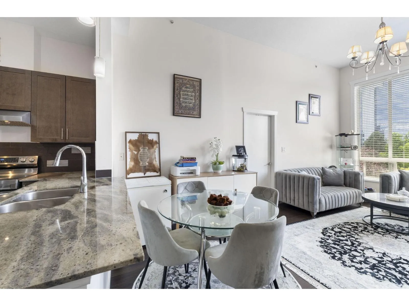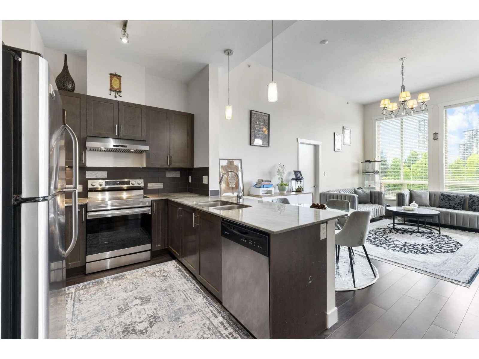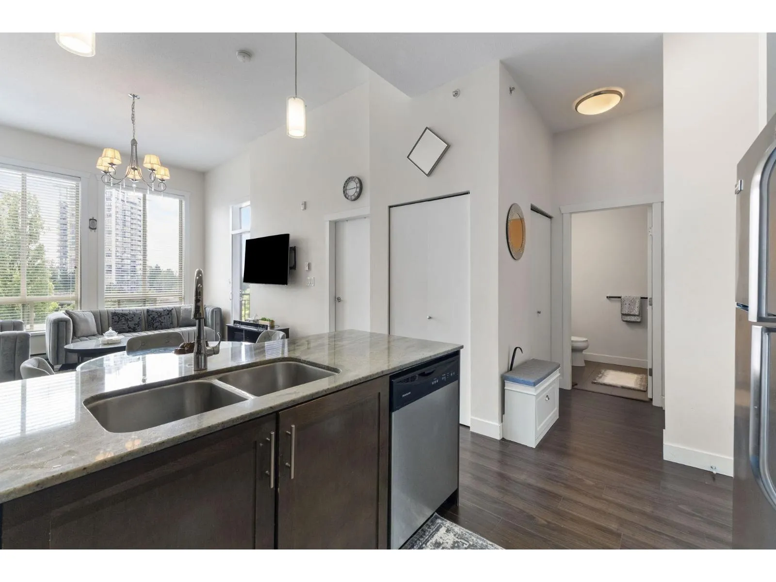 You'll be stunned when you first walk into this amazing 2 BED, 2 BATH penthouse unit, soaring 14' ceilings and oversized west-facing windows pour sunlight into the airy open-concept living space. The modern kitchen features granite counters, maple cabinetry, stainless steel appliances, and porcelain tile flooring. The spacious primary bedroom includes a sleek ensuite with a walk-in shower, while the second bedroom is paired with a full bath with tub. Complete with in-suite laundry, 2 PARKING STALLS, common storage, and a massive private patio perfect for summer lounging. All just steps from Gateway SkyTrain, grocery stores, banks, and more! Amenities include a furnished lounge, gym, conference room. Call for more information! Open House on 3-5pm Sat Jan 3 and 11:30am-1:30pm Sun Jan 4 (id:27476)