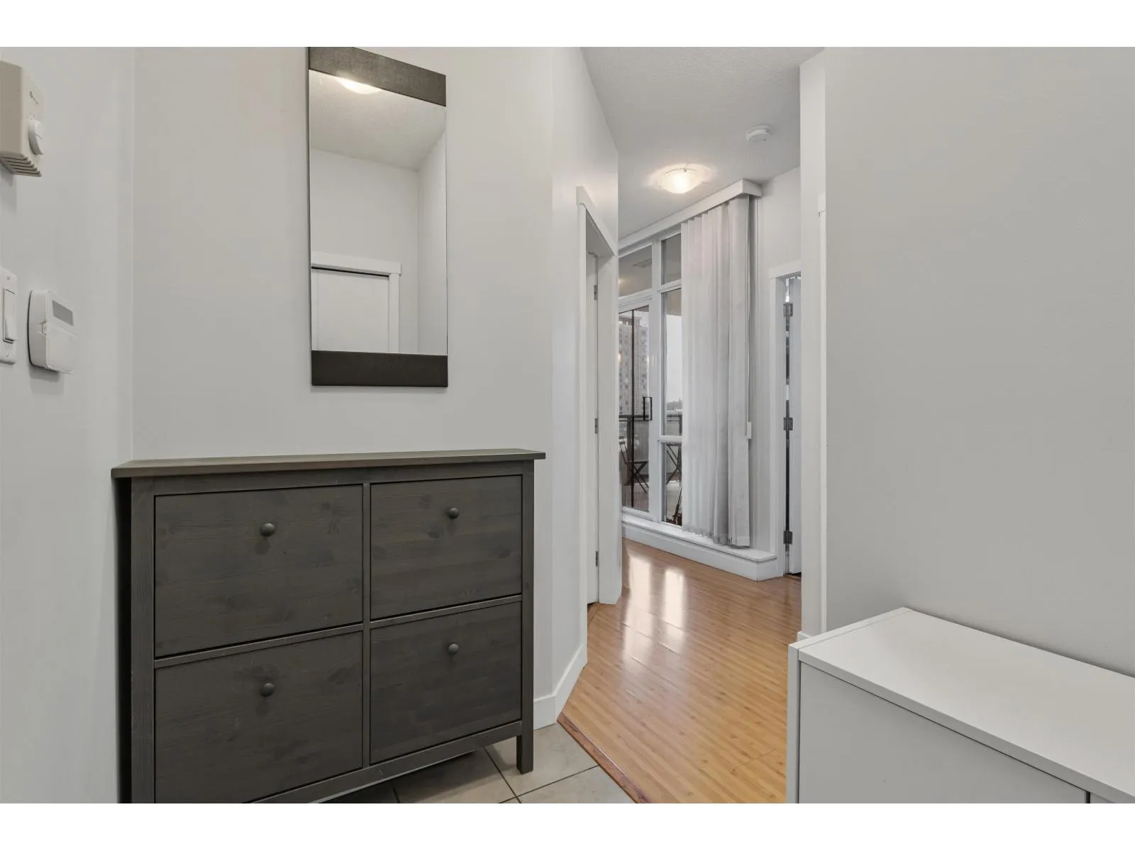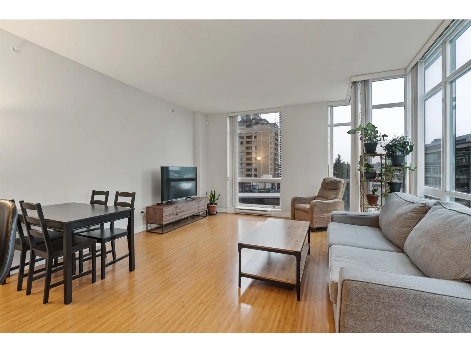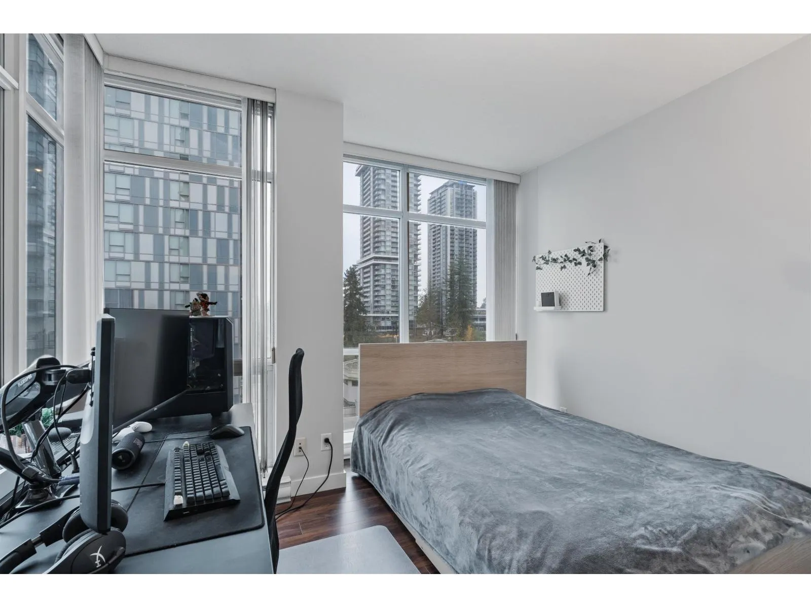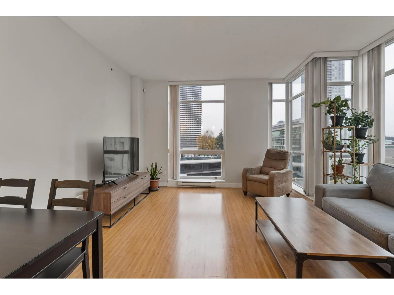 Welcome to a bright and stylish 1-bedroom plus den corner condo in the lively Surrey Central community. This modern high-rise home features expansive windows that fill the space with natural light, creating a comfortable and inviting atmosphere. The den offers valuable flexibility and can be used as a bedroom, home office, and/or extra storage. With sleek laminate flooring throughout and a layout designed for everyday convenience, this unit blends functionality with comfort. Located just minutes from Surrey Central SkyTrain, Walmart, SFU and KPU campuses, King George Boulevard, Highway 1, and nearby New Westminster amenities, this condo provides exceptional access to everything you need for effortless urban living. (id:27476)