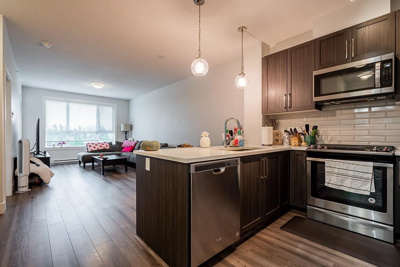 Welcome to South Point Walk 2! This Centrally Located 692sqft 1 Bed 1 Bath Unit is perfect for First time Buyers, Downsizers & Investors. Great location, steps away to shops, transit, restaurants and banks. This beautiful top floor unit features a large NE facing balcony, spacious bedroom, sophisticated kitchen with gas range, thick quartz counter tops and distinctive shaker style cabinetry and stainless steel appliances. One parking stall and one locker included. Semiahmoo Trail Elementary and Semiahmoo Secondary Catchment. Rentals allowed. Tenanted property. (id:27476)