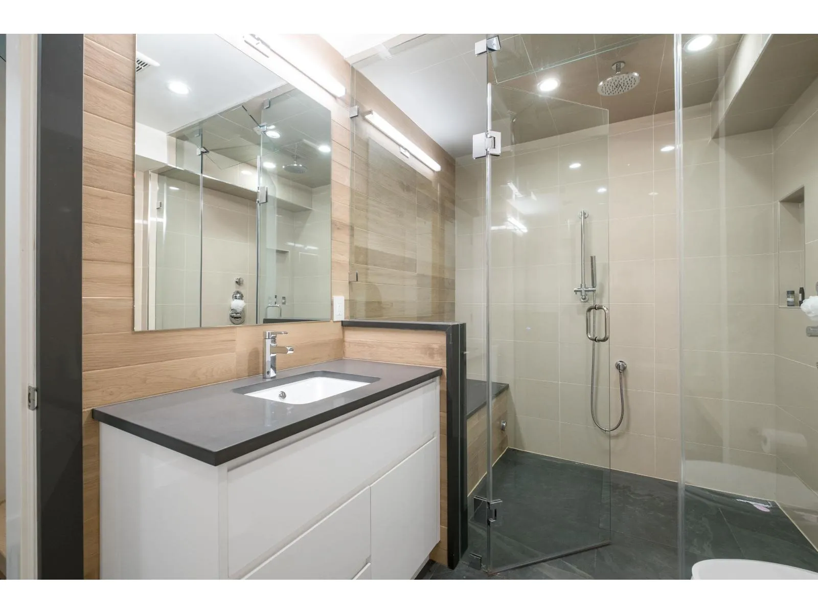 TOP OF THE HILL - Custom built 5300+ SF, 6-bed, 8-bath home on prestigious McNair Drive situated on a 10,000+ SF lot with a rare grade-level south-facing backyard. Inspired by Jamie Banfield Design, this 3-level residence features Shinoki millwork, a $200K Miele appliance package, main floor guest suite with ensuite, wok kitchen, 12-zone radiant in-floor heating, AC, European windows and doors, suspended engineered staircase, elevator, and full home automation. Enjoy mountain views, multiple covered balconies and decks, a private gym with steam spa, high ceilings, eclipse doors opening to an outdoor living area with gas fireplace and full kitchen, plus a dedicated home office with its own exterior entrance. Every detail has been carefully crafted to offer the ultimate in luxury. (id:27476)