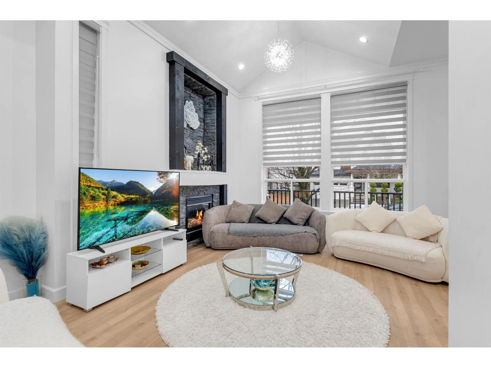 Stunning 7-bedroom, 6-bath home featuring vaulted ceilings, premium engineered hardwood, and a bright, open layout. The elegant living room showcases a large window, stylish feature wall, and stone fireplace. The gourmet kitchen offers high-end stainless steel appliances, granite counters, and a sleek waterfall island. The spacious family room includes custom built-ins and opens to a sunny backyard with a covered patio and custom BBQ-perfect for entertaining. Upstairs includes a designer primary bedroom plus three generous bedrooms with a Jack & Jill ensuite. A 3-bedroom basement suite rented at $2,700/month adds excellent income potential. Located in the Adams Road Elementary and Salish Secondary catchments, with a 240V EV charger included. 3-bedroom basement currently rented for $2300. (id:27476)