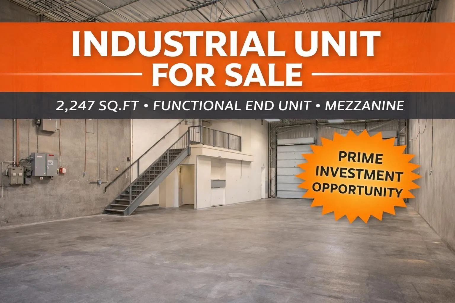 A great opportunity to own a functional and well-positioned industrial unit. This 2,247 sq.ft. space offers a practical layout with a high open warehouse, grade-level loading, 700 sq.ft. mezzanine, and a 2-piece washroom. Equipped with 100 amp 3 -phase power, this end unit is ideal for businesses needing storage, production, or light industrial use. The IL-1 zoning supports a wide range of operations. Easy access to major routes and situate within a busy industrial complex. Perfect for a long-term investment. (id:27476)