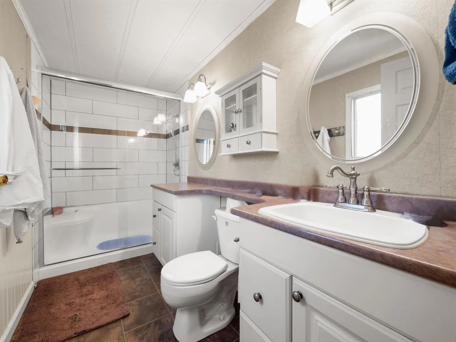 BEST LOCATION in Westwood Estates! This one feels like home. Enjoy a private yard with plenty of lawn and multiple decks, perfect for relaxing, gardening, or entertaining. This double wide home offers 2 bedrooms, 2 full bathrooms, and a separate dining area. The spacious primary bedroom includes a 3 piece ensuite and a generous walk in closet. Pad rent is just $911 and includes water, sewer, garbage, and land taxes. Located in the highly sought after 55 plus community of Westwood Estates, where large dogs are welcome with manager approval (no vicious breeds). A rare find for anyone who values outdoor living! (id:27476)