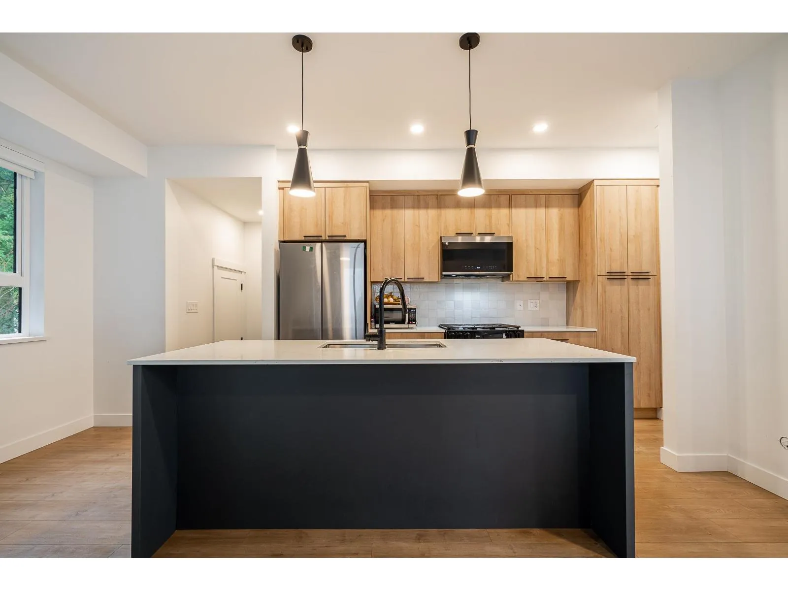 A standout in Guildford! This newly built, double side-by-side garage, 3 Bedroom & 2.5 Bath corner end home offers a private fenced yard and refined, modern finishes by award-winning IOM. The gourmet kitchen impresses with custom cabinetry, premium appliances, and a stylish island highlighted by designer lighting. Upstairs, the primary bedroom features a generous walk-in closet and a luxurious ensuite complete with dual sinks, matte black hardware, and chic herringbone tile. Plus rough-ins for A/C, EV charging, and security. A HAVAN Award finalist, located steps to schools, shopping, dining, transit, Hwy 1, and positioned next to a future park and greenbelt. Full 2-5-10 Home Warranty & NO GST! This is the one you've been waiting for! OPEN HOUSE DEC 13 & 14 2-4PM (id:27476)