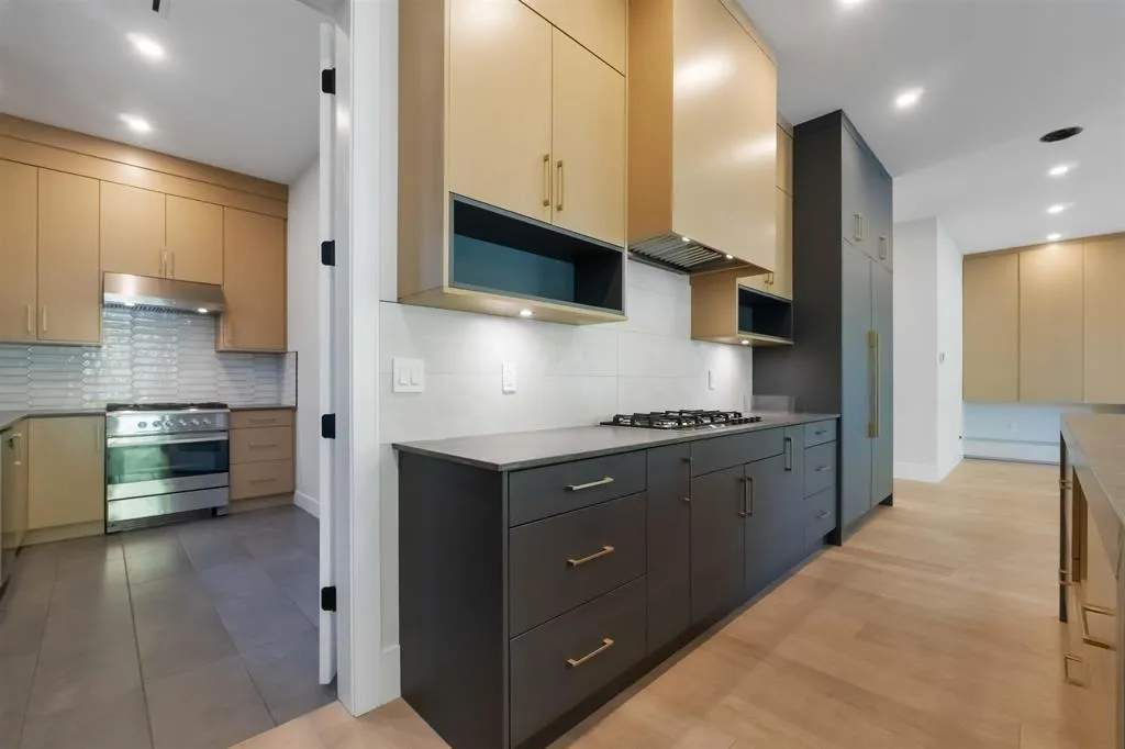 Stunning custom-built 3-storey home offering nearly 5,000 sq ft of luxurious living on a 6,300 sq ft lot! This elegant residence features 8 spacious bedrooms and 8 beautifully finished bathrooms. The main floor boasts a grand open-concept layout with a bright living and dining area, a gourmet kitchen with premium appliances, a full spice kitchen, and a convenient bedroom with ensuite, perfect for guests or in-laws. Upstairs includes 4 generous bedrooms, each with an ensuite, while the basement offers a theatre room plus two mortgage-helper suites (2-bed + 1-bed) with private entrances. Designed for comfort, style, and versatility, this home is ideal for large or multi-generational families seeking modern luxury in a prime location! (id:27476)