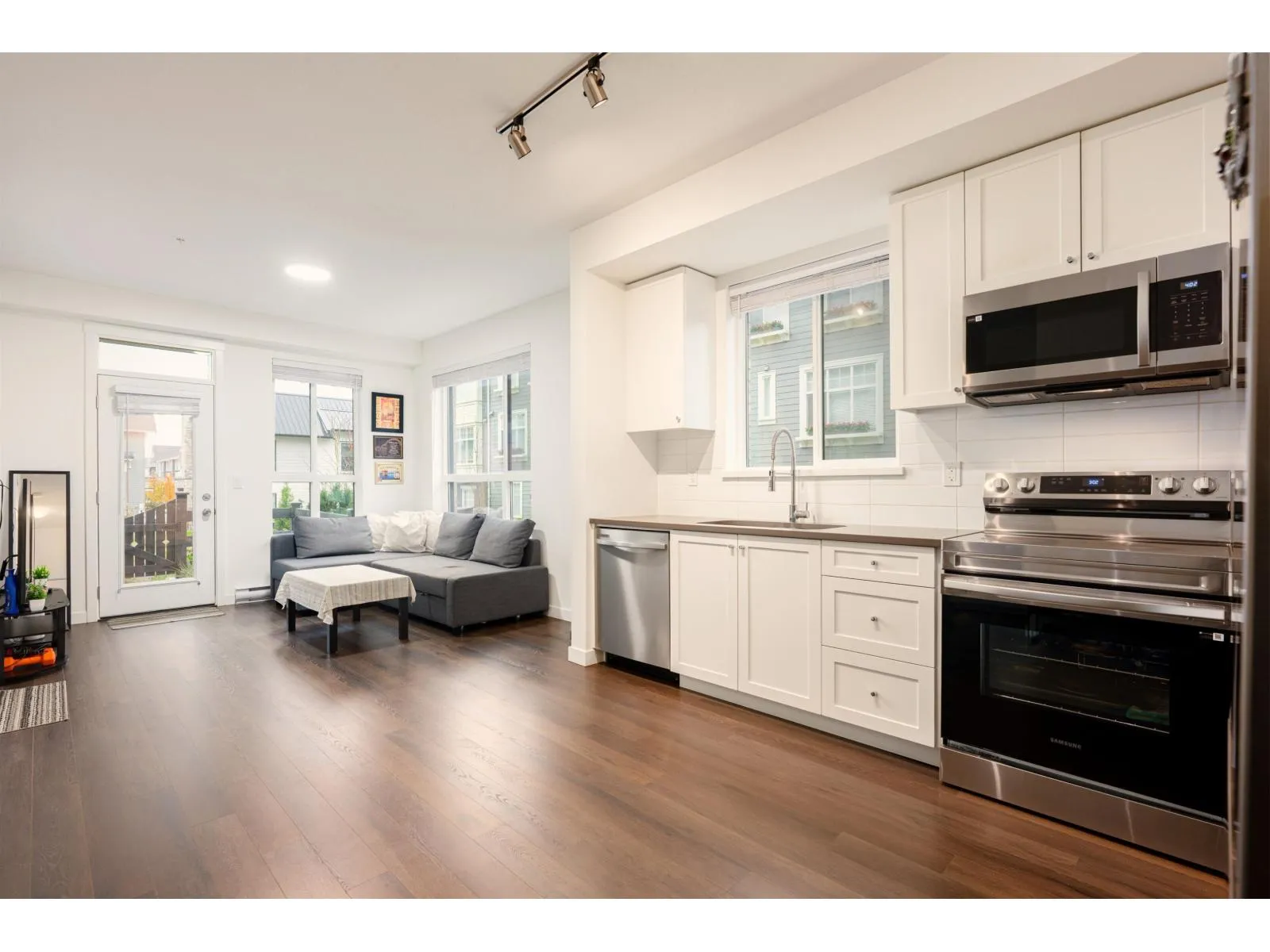 Welcome to this bright and beautifully designed 3-bedroom corner unit offering the rare convenience of ground-level living with direct outdoor access-truly townhouse-style living for the price of a condo. Flooded with natural light from oversized windows, this newer home features an efficient open-concept layout, modern finishes, and seamless indoor-outdoor flow through your walk-out patio. Enjoy the best of both worlds with private exterior entry plus full access through the building, perfect for families, pet owners, or anyone who values ease and accessibility. Located in an exceptional, well-maintained complex, this home is just minutes from schools, shopping, parks, and transit-and within walking distance to the future SkyTrain station. Book your appointment today. (id:27476)