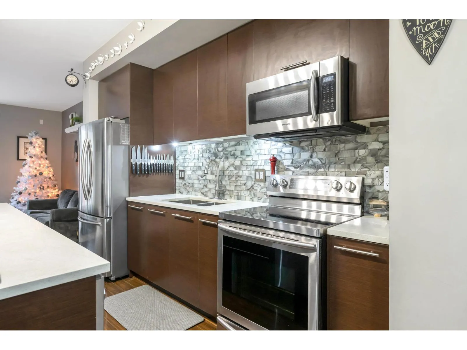 THE KEW by Mosiac. This fabulous Townhome is move in ready! WELL MAINTAINED with 2 bedrooms, 2 bathrooms up and bonus den on lower level perfect for the kids, home office or a 3rd bedroom. The open concept plan on the main level is a entertainers dream with the living room boasts an ashlar fireplace and built in cabinetry. The kitchen is profiled by modern quartz countertops, stainless steel appliances, large island and flows into the ample sized dining area. The good sized deck provides that extra space needed for a crowd! Room for 2 car parking! (id:27476)