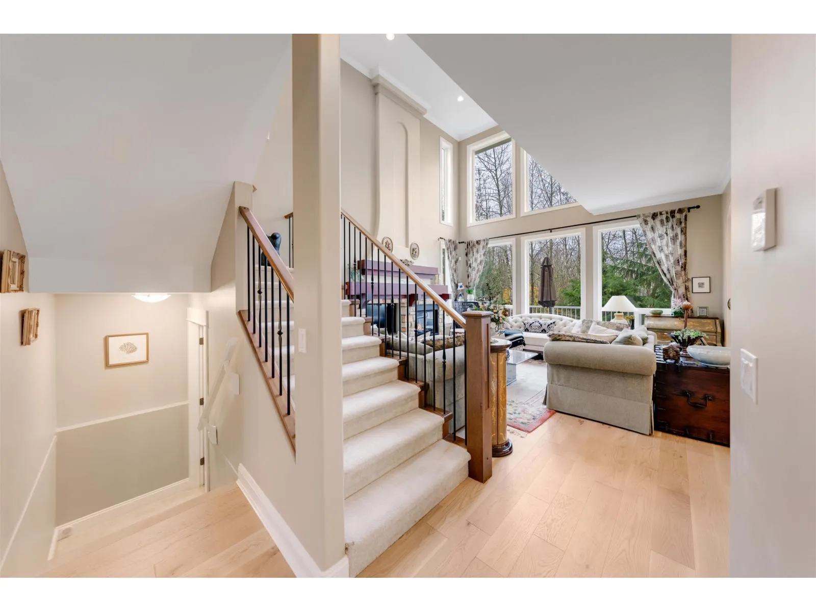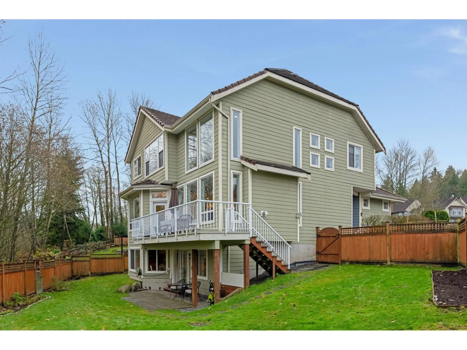 Discover this stunning 2-storey home with a walk-out daylight basement, set on a premium point lot in The Vista's at Fraser Point with breathtaking views of sunsets, the Fraser River, snow-capped mountains, and lush greenbelt. Built with superior quality, it features soaring 10-19 ft ceilings, a grand Tuscan-inspired fireplace, and an entertainer's gourmet kitchen with a large granite island. Recent upgrades include 200-amp service with EV plug, Mitsubishi AC/heat pump, and Navien on-demand hot water (2024). Additional updates include 2023 flooring, quartz countertops, refreshed kitchen paint, new dishwasher and gas range, plus a 2021 refrigerator. A lower-level kitchen added in 2011 provides extra versatility. This rare opportunity won't last! (id:27476)