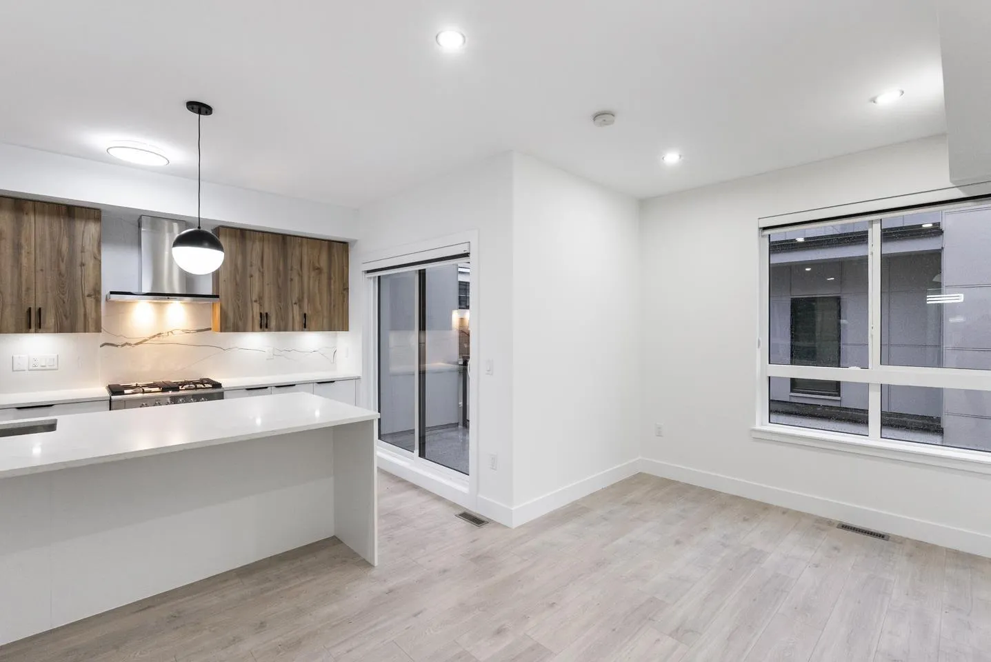 Brand-new, ultra-modern 3-bedroom + Den, 2.5-bath townhome backing onto a protected lush greenbelt. The bright, airy main level features 9' ceilings, Fisher & Paykel appliances, motorized blinds, and a kitchen made for cooking enthusiasts with a gas cooktop, quartz countertops, and ample storage in custom cabinetry. The Park Landmark features a playground surrounded by nature and private amenity building perfect for events. This unit features a spacious double garage with rough in EV. Just a short drive to Hyland Elementary and Sullivan Heights Secondary, and minutes to Newton Town Centre, shops, parks, transit, and major amenities. (id:27476)
