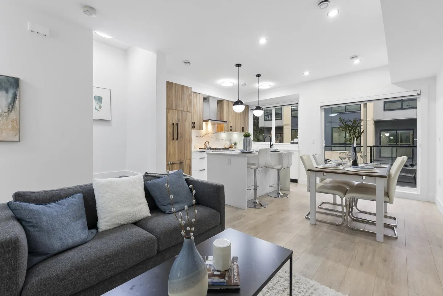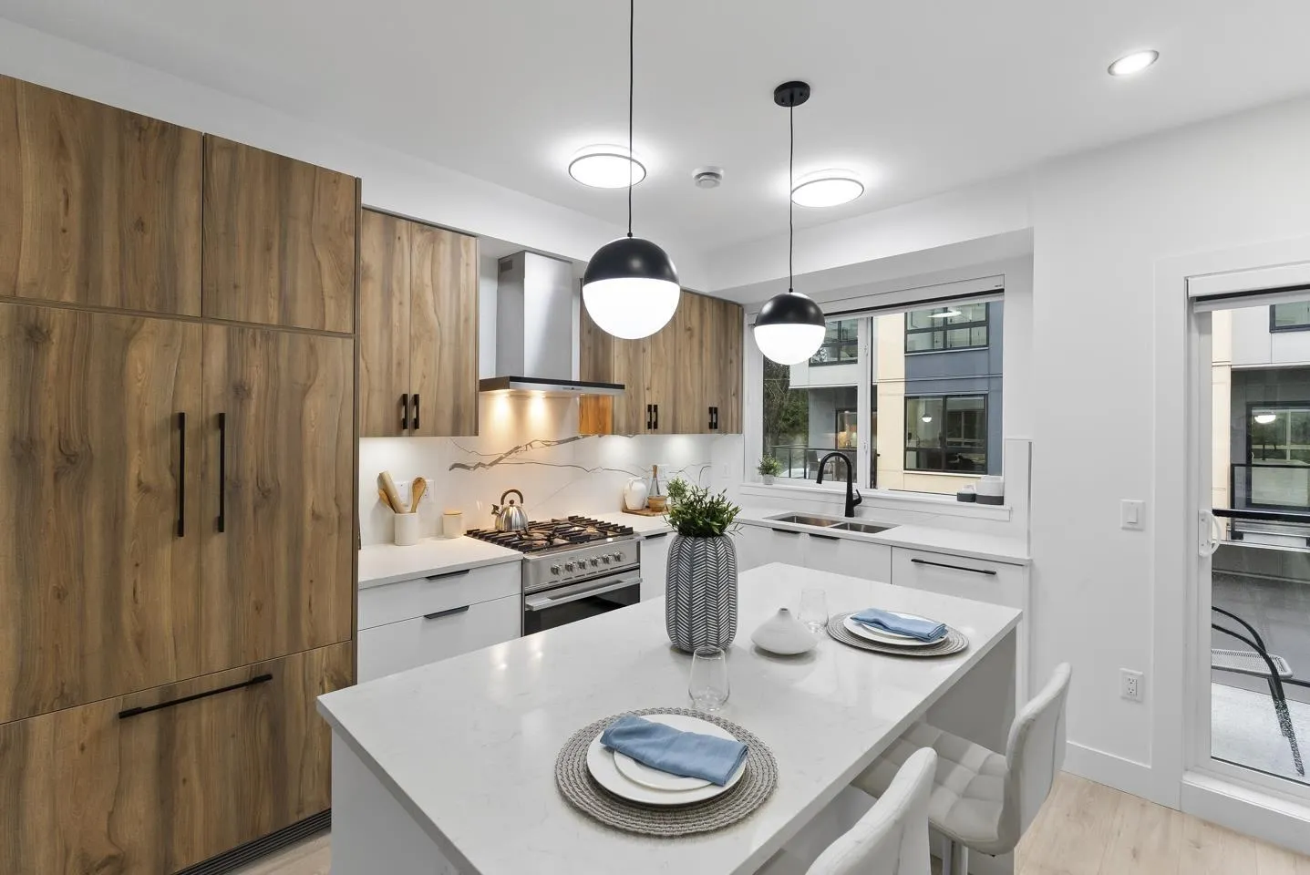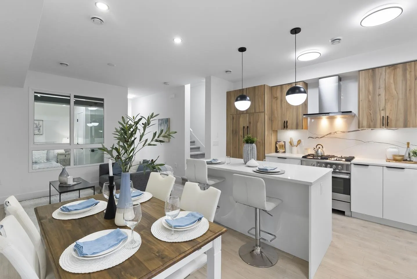 Brand-new, ultra-modern 3BR+Flex, 2-bath townhome surrounded by a protected greenspace with a private playground & amenity building perfect for your private events. The bright, airy main level features 9' ceilings, Fisher & Paykel appliances, motorized blinds, and a kitchen made for cooking enthusiasts with a gas cooktop, quartz countertops, and ample storage in custom cabinetry. Enjoy a ROOFTOP PATIO perfect for summer entertaining, complete with a gas BBQ hookup. Just a short drive to Hyland Elementary and Sullivan Heights Secondary & minutes to Newton Town Centre, shops, parks, transit, and major amenities. (id:27476)