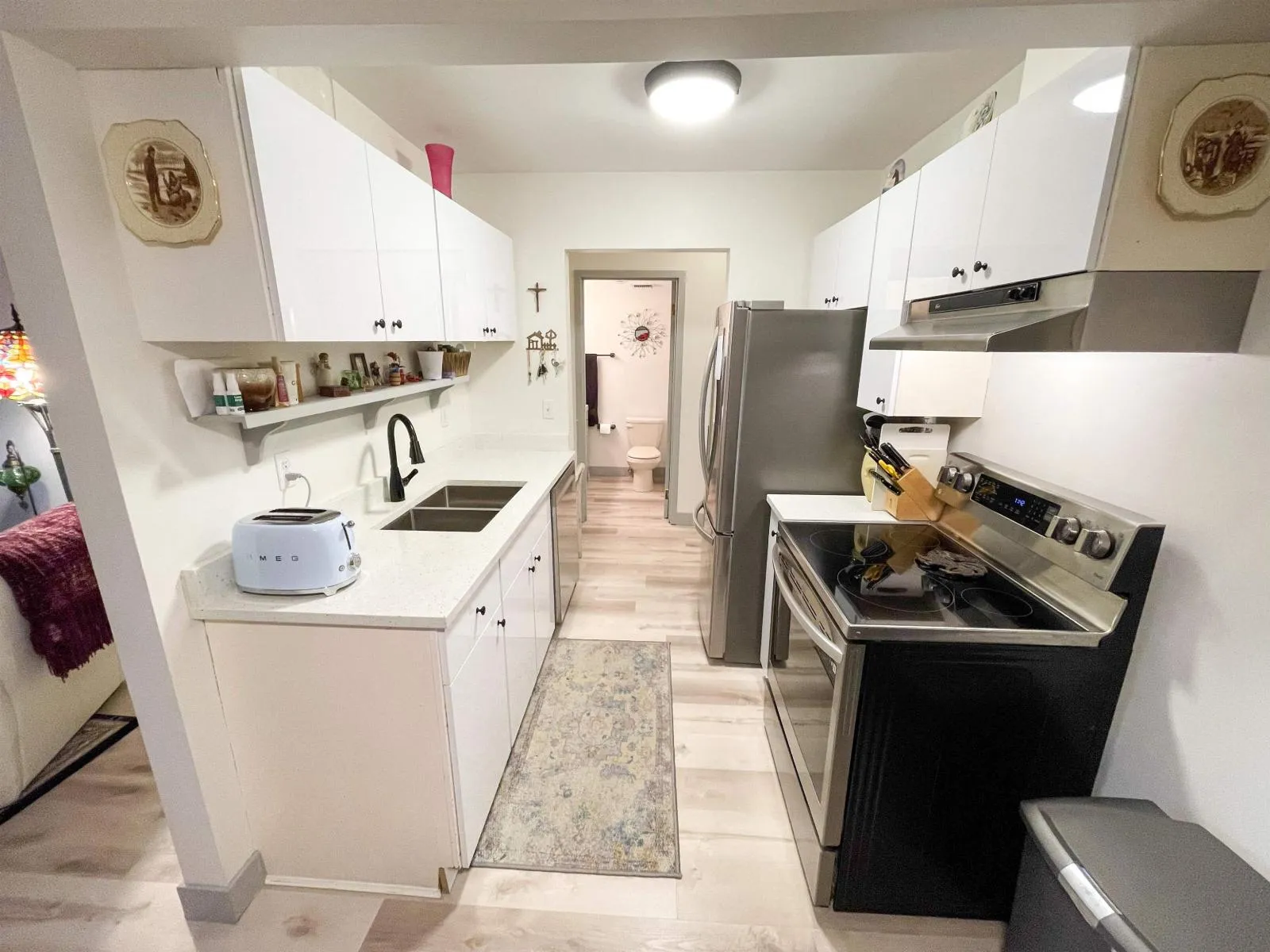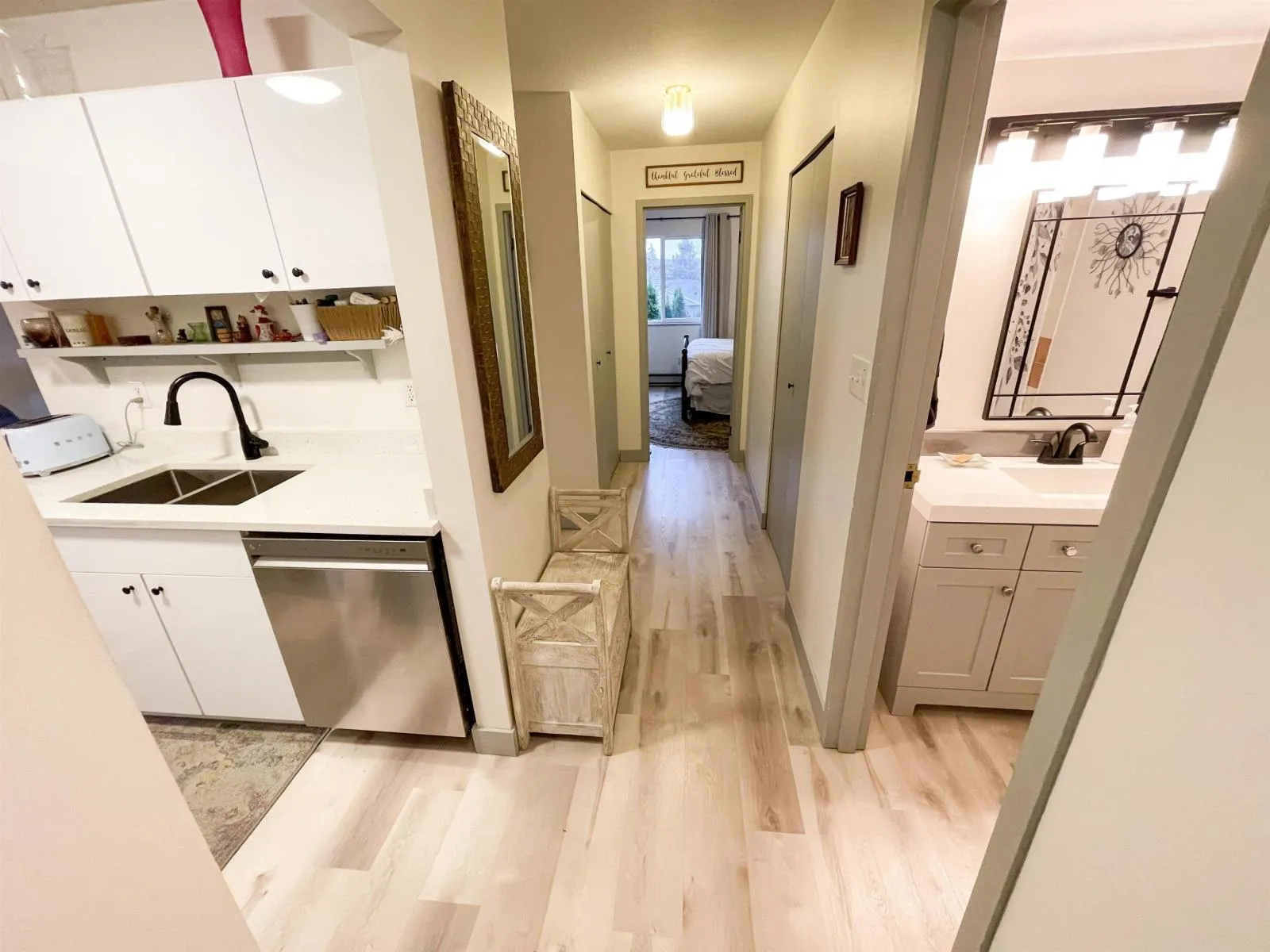 Step into this beautifully updated home where all the work has already been done for you. Featuring a completely refreshed interior with modern finishes throughout, this inviting space is move in ready and ideal for both first time buyers and downsizers. The bright living area is enhanced by a brand new window that lets in loads of natural light, while the adjoining dining space flows seamlessly out to a newer vinyl deck that is perfect for morning coffee or evening relaxing. Updated flooring, fresh paint, and contemporary fixtures create a clean, cohesive look, and the kitchen and baths have been tastefully modernized for everyday comfort and style. Set in a well located building close to shopping, transit, schools, and everyday amenities. (id:27476)
