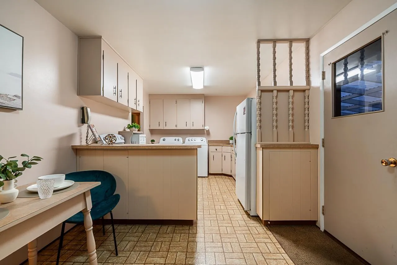 DETACHED DOUBLE GARAGE / WORKSHOP WITH DRIVE-IN VEHICLE ACCESS! Discover this cozy, no-stairs rancher set on a large west-facing, fully fenced backyard in a quiet neighbourhood of well-kept homes-plus new construction happening in the area. NO EASEMENTS on the property. Inside, you'll find 3 bedrooms, a spacious living room with a cozy wood burning fireplace, and a bright kitchen overlooking the backyard. A den with optional laundry hookups offers flexibility if you prefer moving the washer/dryer out of the kitchen. This home is perfect for downsizers, first-time buyers, or investors looking for a solid rental. Or build your dream home on this excellent lot. (id:27476)