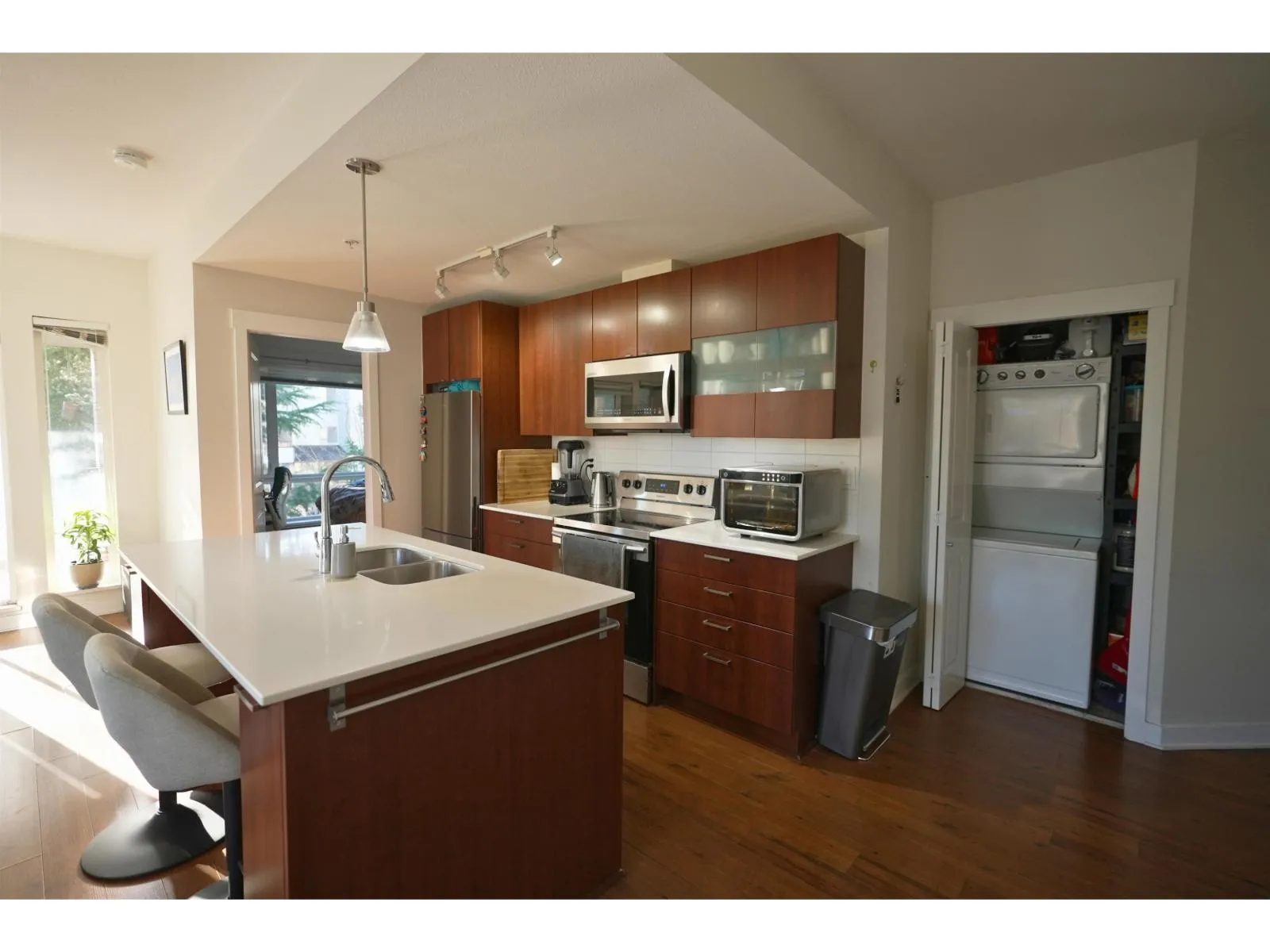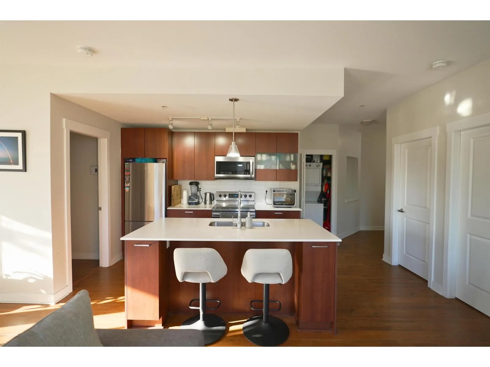 Bright southeast-facing apartment in Urban Village! Ideally located just one block from Central City SkyTrain Station and steps from Central City Mall, SFU Surrey Campus, grocery stores, transit, and more. This beautiful 900 SQFT home features 2 bedrooms, 2 bathrooms, soaring 9-ft ceilings, stainless steel appliances, and sleek siltstone quartz countertops. Strata fees include hot water. Comes with 1 secure underground parking stall and 1 storage locker. (id:27476)