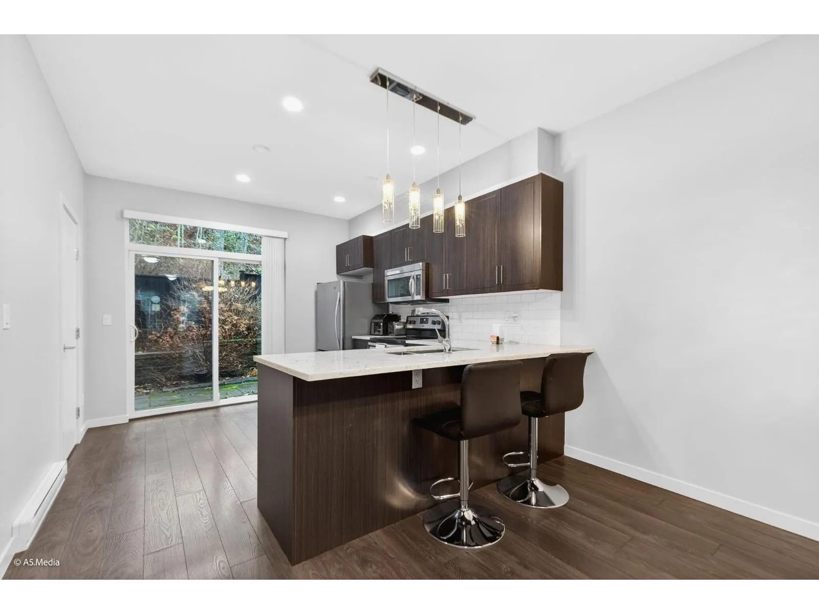 Discover this beautifully cared-for home, showing true pride of ownership from the moment you walk in. The stylish kitchen offers stainless steel appliances, ivory-white quartz counters, and rare direct access to your private backyard-perfect for families and entertaining. The bright south-facing living room is filled with natural light all day. Upstairs, the primary bedroom features a luxurious double-vanity en-suite. Enjoy year-round comfort with custom A/C, plus a Level 2 EV charger and parking for two in the garage. Quietly set near the courtyard, Sync offers abundant visitor parking, playgrounds, and scenic pathways. This greenbelt-facing unit provides exceptional privacy. *** Open house Sat and Sun [Dec 20 & 21] 1-3pm.*** (id:27476)