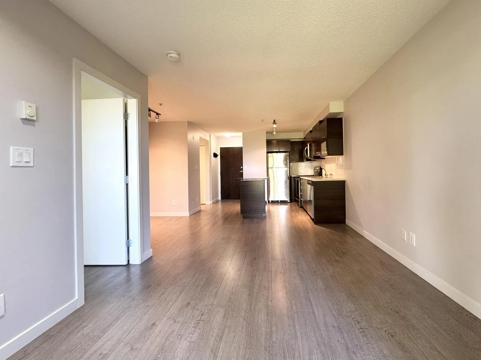Enjoy top floor living in this bright 1 bedroom plus open den unit in Aura 2, featuring a peaceful west-facing view of a quiet greenspace. In like-new condition and meticulously cared for. Highlights include laminate flooring, stainless steel appliances, updated countertops, and in-suite laundry. The building offers secure fob entry, surveillance cameras, and double gated underground parking. Conveniently located just minutes from shopping, SFU campus, SkyTrain, and Highway 1. An elementary school and community park are right across the street. Includes one secured parking stall and a storage locker. Ideal for first-time buyers or investors seeking comfort, security, and convenience. (id:27476)