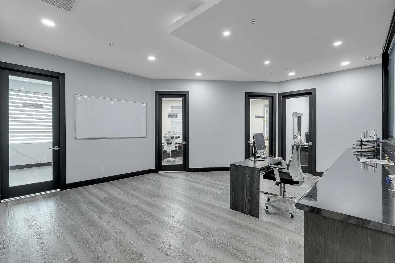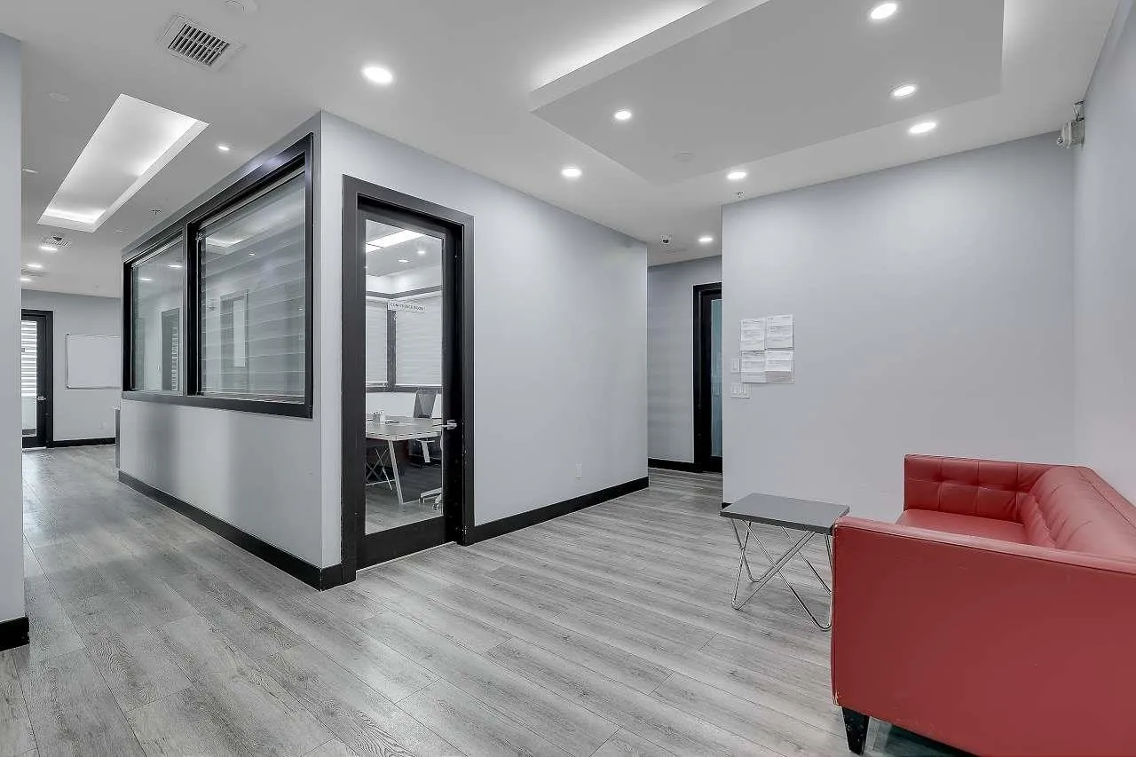 2,796 Sq.Ft Office Space in PAYAL BUSINESS CENTRE!? Prime corner unit with expansive windows flooding the space with natural light, creating a bright and welcoming environment. Excellent visibility and exposure for your business! The office features 11 private rooms, 2 washrooms, and a spacious boardroom, making it ideal for a variety of professional uses. Recently renovated and freshly painted, the unit showcases modern finishes, glass doors, and a sleek contemporary vibe. A perfect workspace for professional firms seeking a highly functional, move-in ready office in one of Surrey's most sought-after business centres. (id:27476)