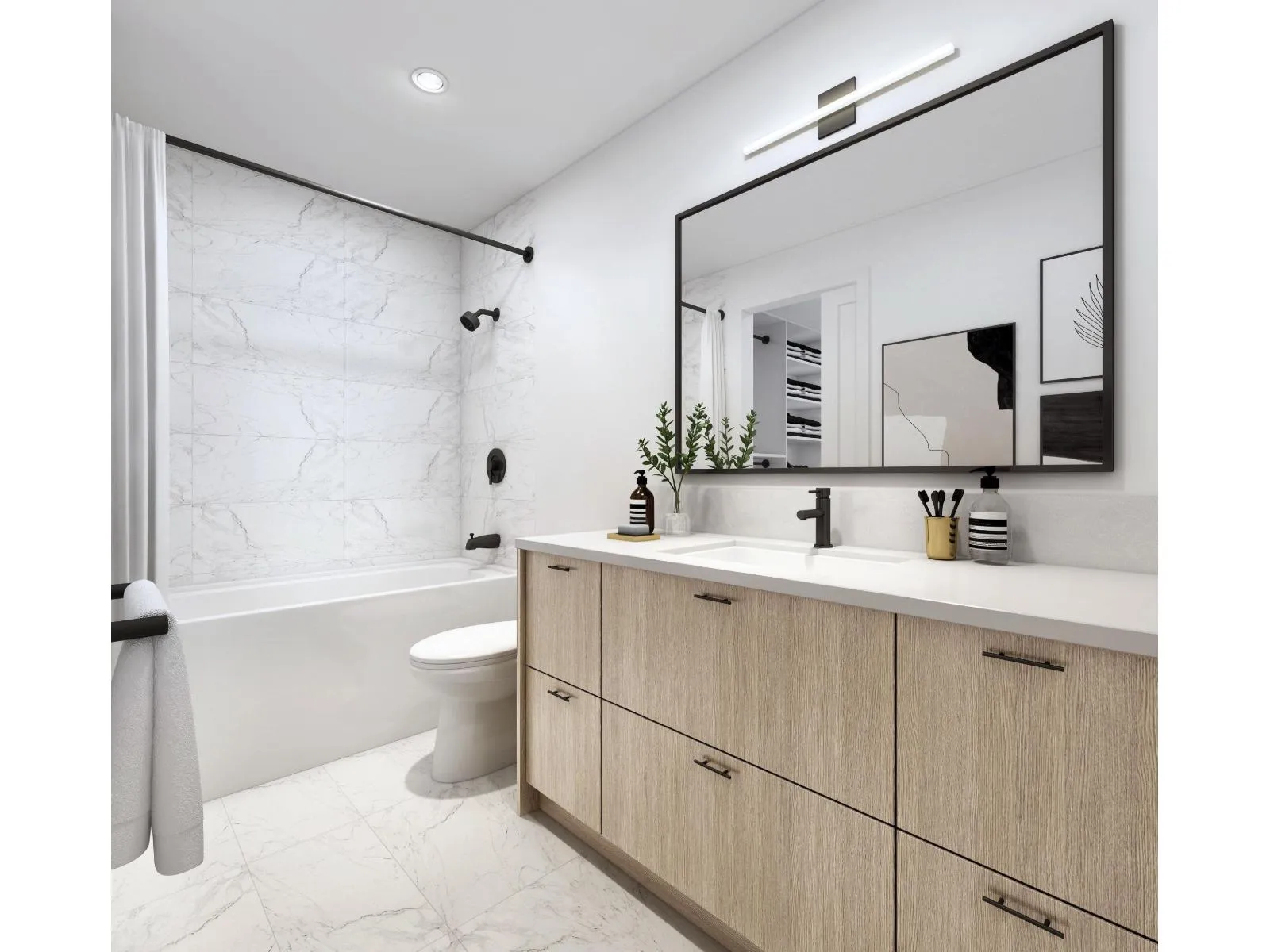 Welcome to Odyssey by award-winning Forge Properties. This 1-bedroom home features an open layout, full-size S/S appliances, black matte fixtures, quartz countertops, and a private deck. Choose from two designer colour schemes. Includes Whirlpool W/D, AC rough-in, 1 parking, and 1 storage locker. Enjoy top-tier amenities including a fitness centre, sauna, and lounge spaces. Located just off King George Blvd & 152nd St-close to transit, shopping, parks, schools, and only minutes to the beach. (id:27476)