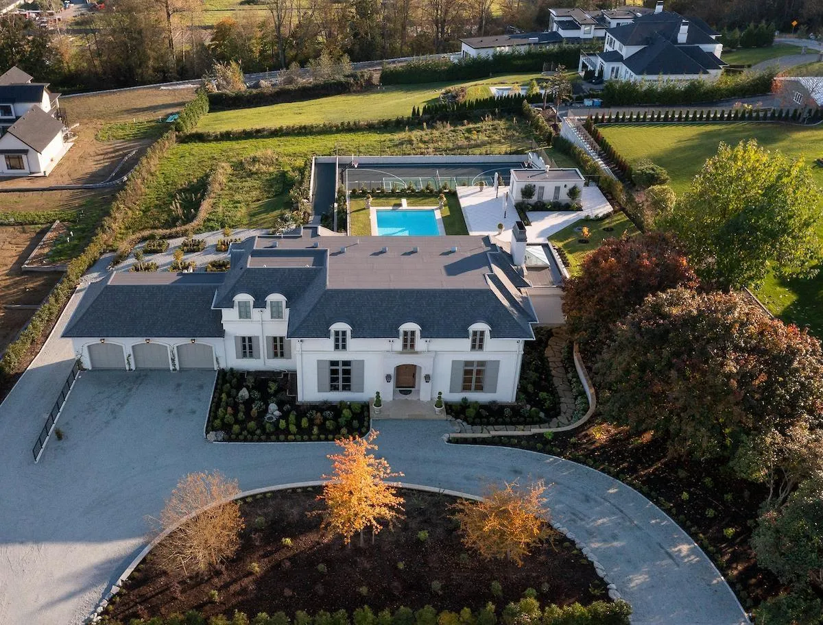 Welcome to Château des Rêves! Extraordinary architectural masterpiece by award-winning Jaheny Custom Builders, set on a private 1.5-acre estate. This landmark residence blends grandeur with contemporary sophistication, showcasing exceptional craftsmanship and the finest imported materials. The limestone exterior, dramatic rooflines, and precise detailing create a commanding arrival. Inside, Italian marble, French white oak flooring, and European-designed lighting and hardware define timeless elegance throughout. Spanning three levels with 10-ft ceilings, the home is perfectly oriented to capture sweeping water views and panoramic vistas across the Fraser Valley. A once-in-a-generation offering of unparalleled luxury, privacy, and presence! (id:27476)