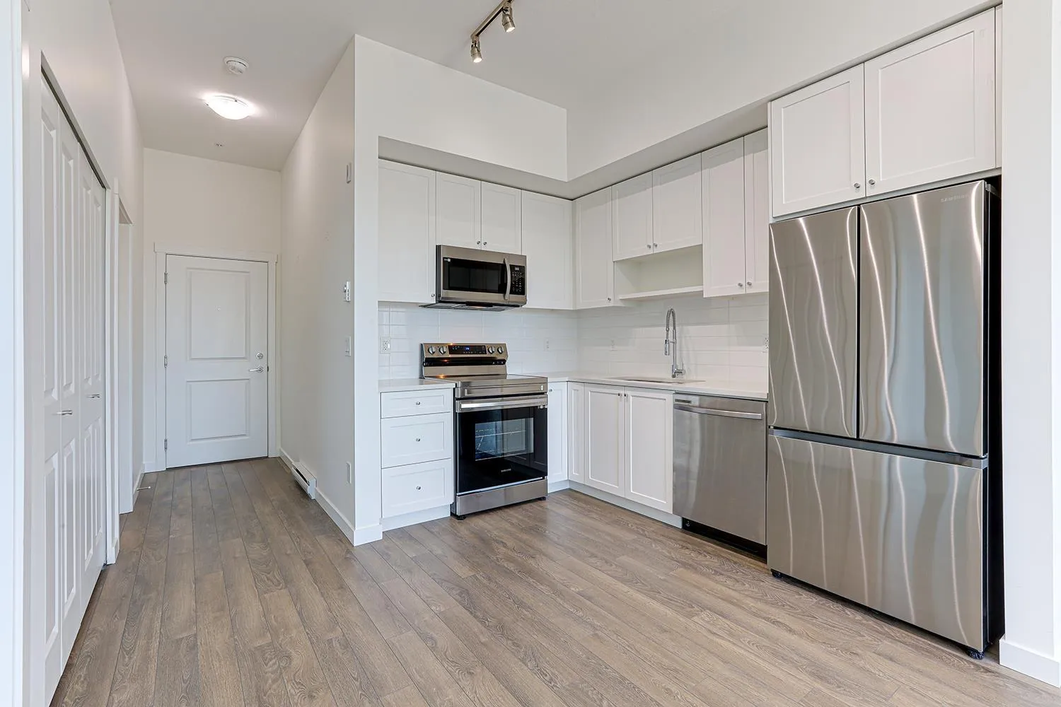 Welcome to FLEETWOOD VILLAGE by Dawson + Sawyer. A modern community in one of Surrey's most connected and convenient locations. This top-floor 1-bed, 1-bath home offers a smartly designed living space, highlighted by unobstructed city views through oversized windows and a private balcony. Enjoy contemporary finishes, an open-concept layout, and a sleek kitchen with quality stainless steel appliances and quartz countertops. The bedroom features ample closet space and natural light. Located steps from the future SkyTrain extension, shopping, parks, and dining, this unit is ideal for first-time buyers, investors, or anyone seeking a vibrant urban lifestyle in a new, worry-free building. (id:27476)