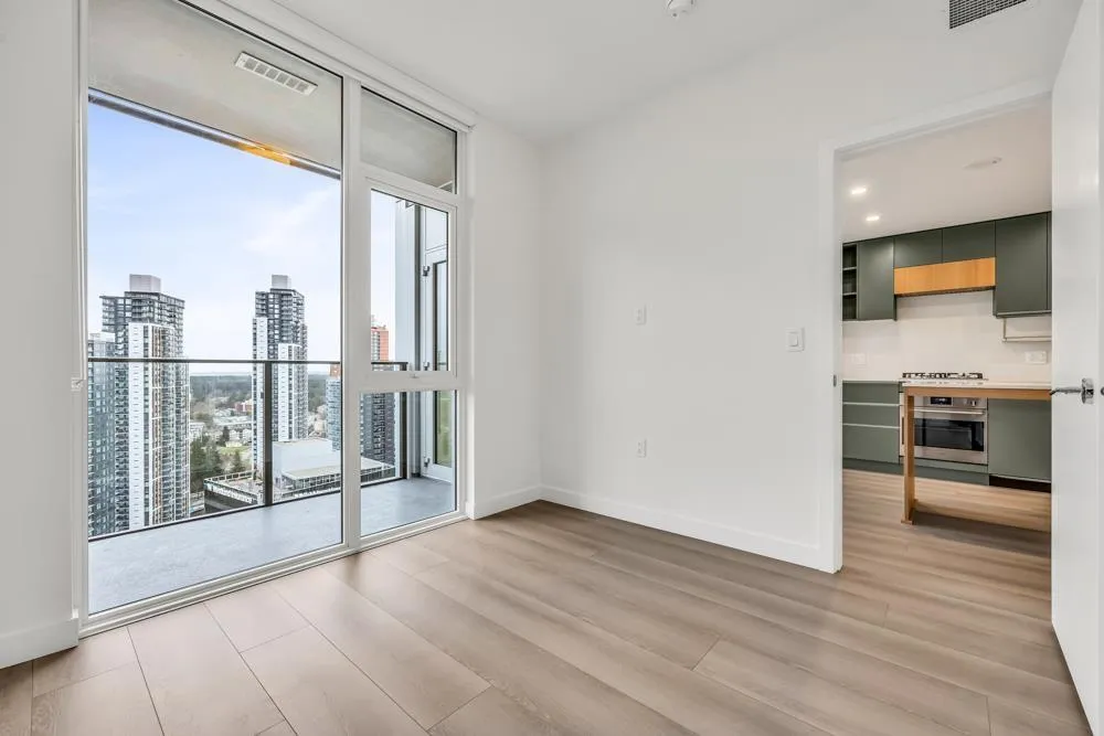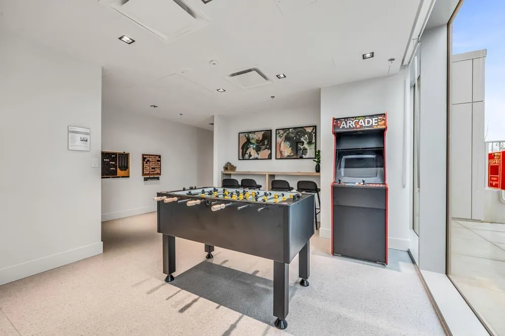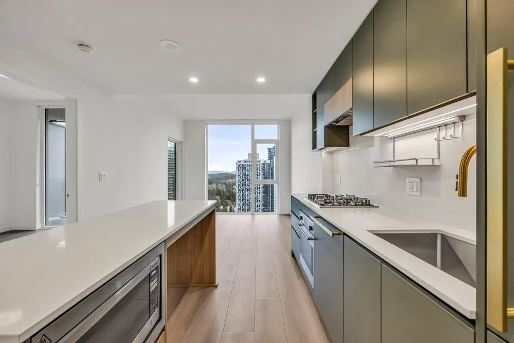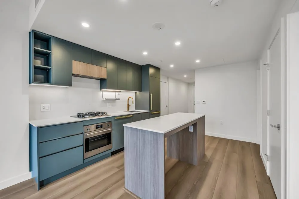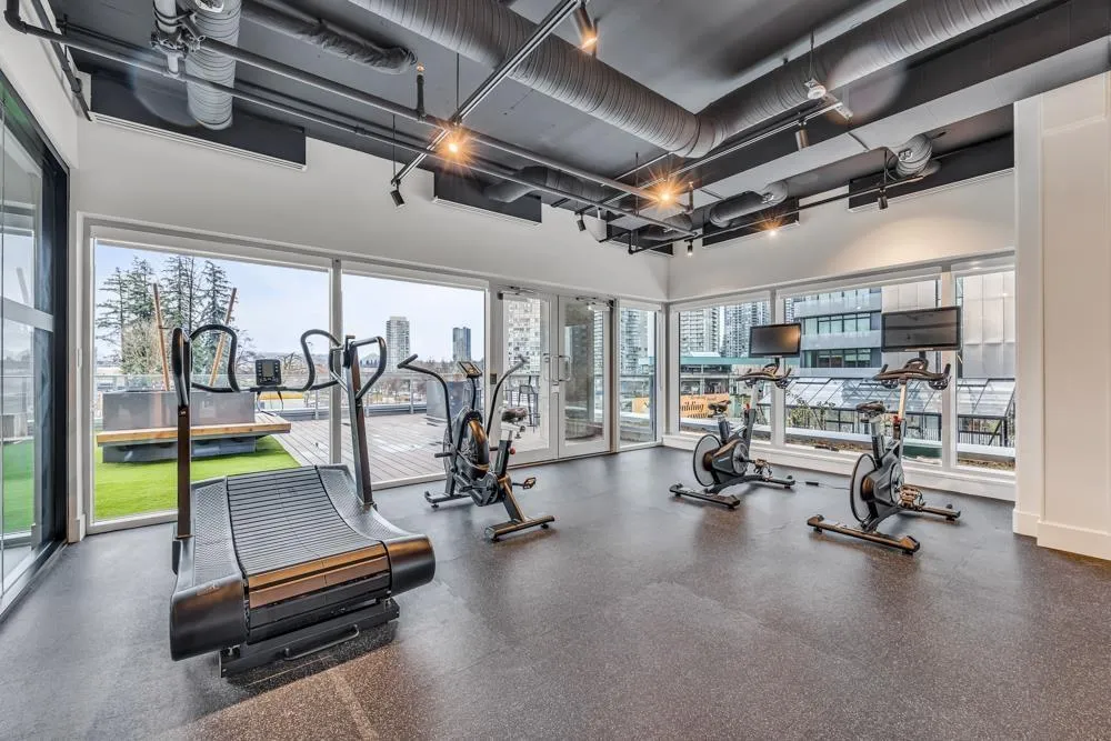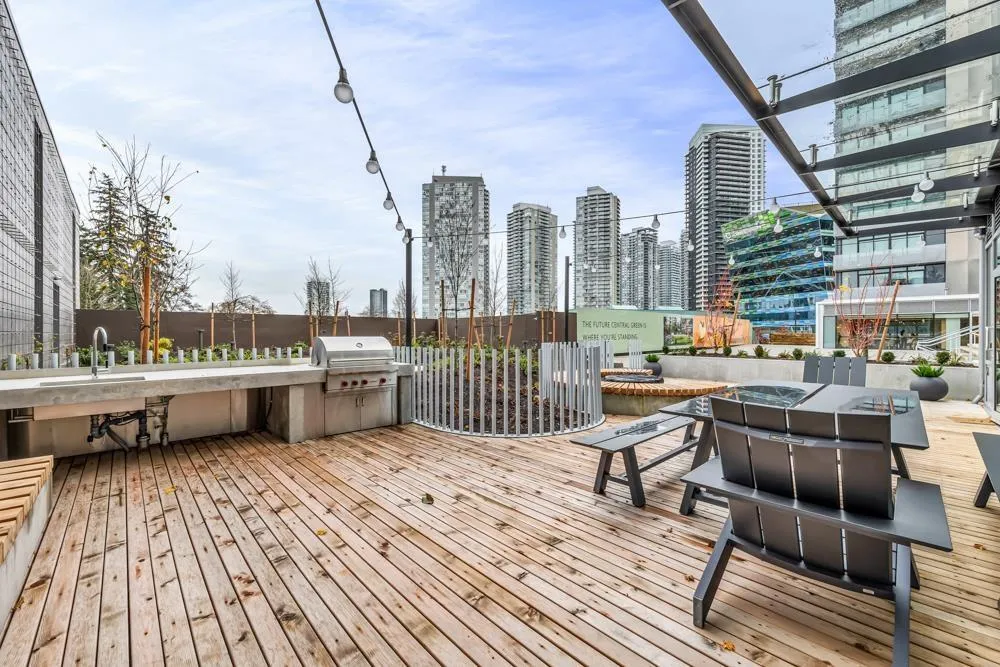 A/C available. Modern 1-bedroom condo offers a well-designed open-concept layout with efficient use of space and quality finishes throughout. The home features built-in heating and air conditioning, in-suite washer and dryer, and a private balcony. Located in a well-managed concrete high-rise, the building offers excellent amenities including a fitness centre, resident lounge, shared kitchen, BBQ area, and dedicated work or study rooms. Secure underground parking and a bike locker are included. Conveniently situated in Central Surrey with easy access to major routes, transit, shopping, restaurants, and everyday amenities. Ideal for professionals seeking comfort, functionality, and modern condo living. Two identical units are available in the same building, located one floor apart. (id:27476)
