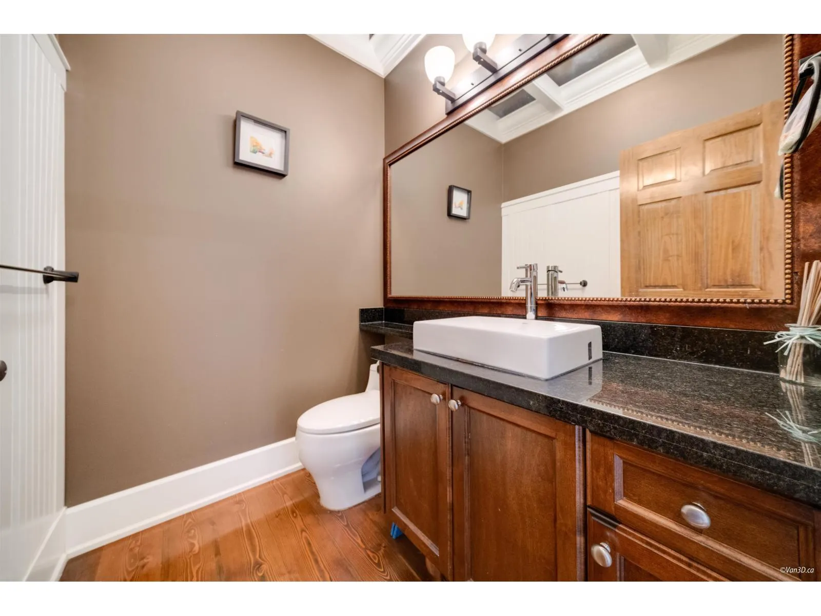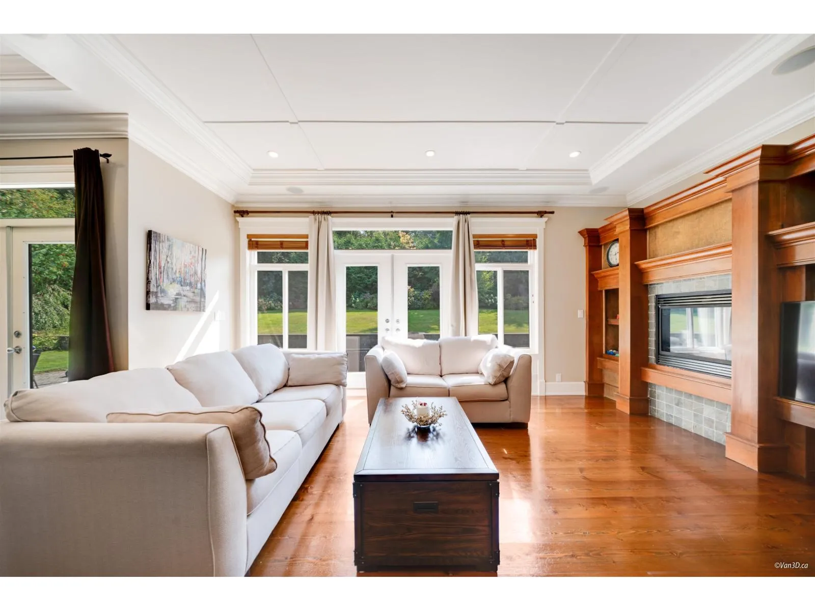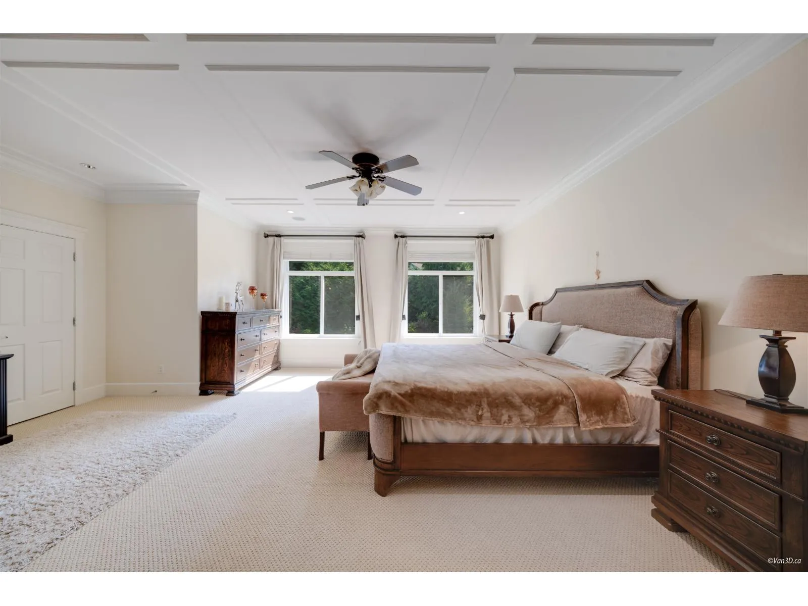 Nestled in a quiet cul-de-sac, this stunning home sits on a massive 11,717sqft lot with a beautifully landscaped, south-facing backyard. Quality built with an exceptional layout, it boasts 10-ft ceilings on the main floor and 14-ft vaulted ceilings in the living room, complemented by classic 7-inch wide plank flooring. The gourmet kitchen features granite countertops, high-end stainless steel appliances, and a built-in pantry. Offering two master bedrooms-one conveniently located on the main floor-all upstairs bedrooms come complete with walk-in closets and ensuites. Enjoy premium amenities including a games room, media room, gym, home sound system, and full house A/C. Located in a highly desirable South Surrey neighborhood, close to Southridge private school, shopping, recreation (id:27476)