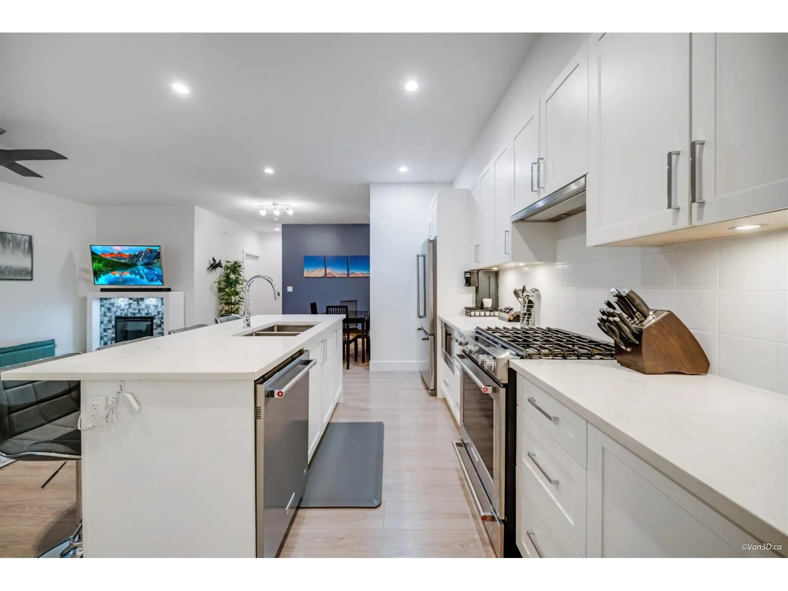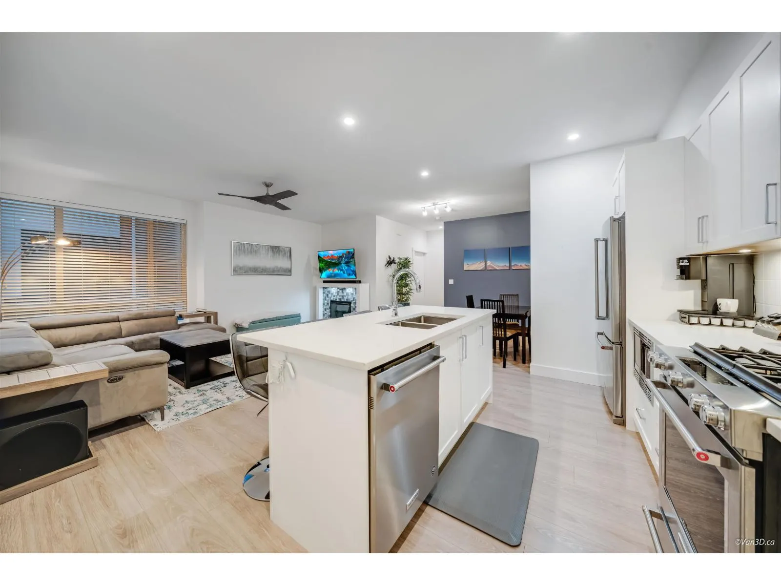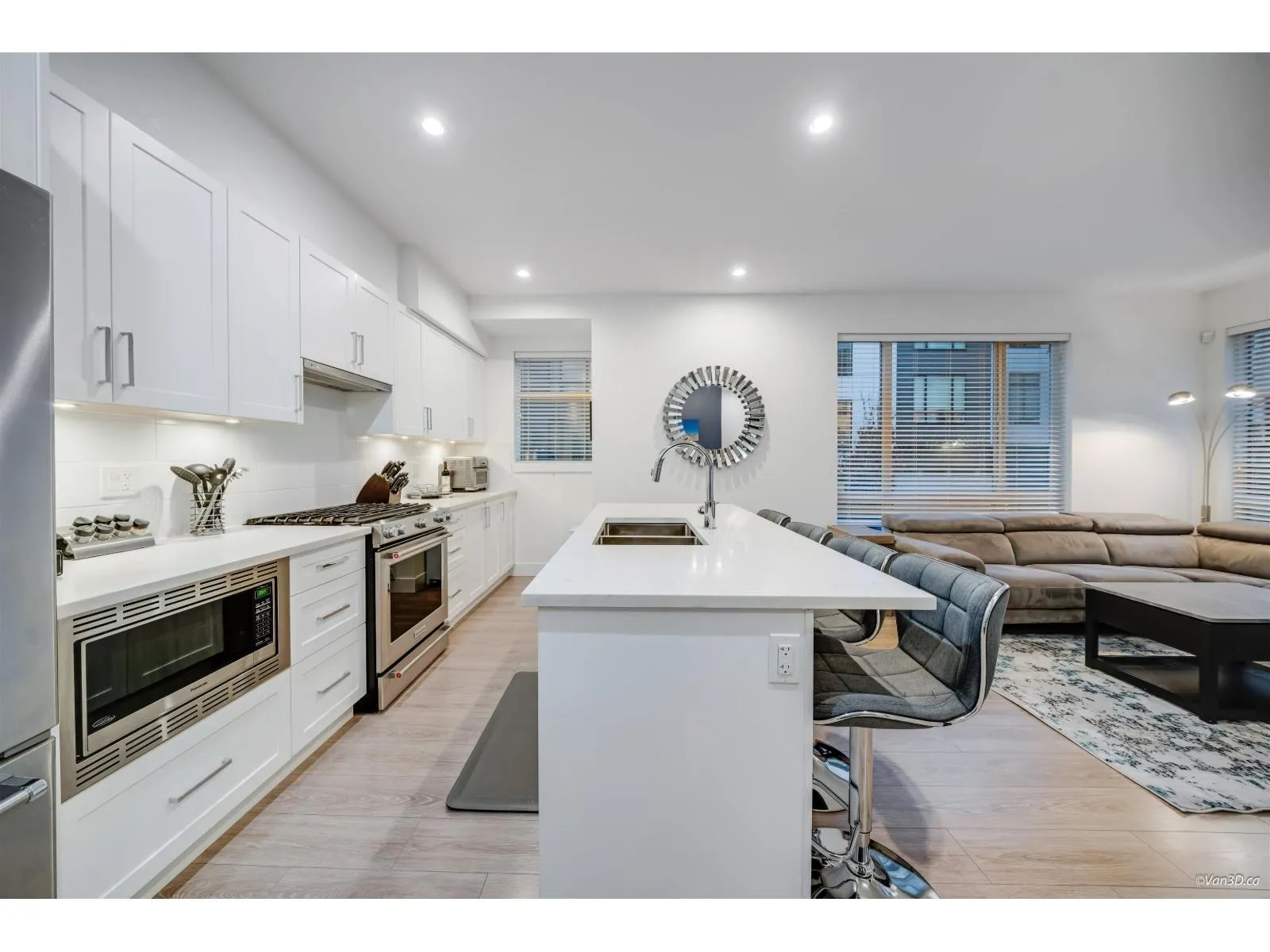 This stunning 3-bed + den end unit at Berkeley Village offers over 1,500 SF of bright, modern living space. This corner unit provides extra privacy and natural light, complemented by a superior side-by-side double garage with EV charger. The gourmet kitchen features a large quartz island, gas cooking, and high-end S/S appliances. The flexible layout showcases an open-concept main floor with a dedicated den space. Luxury finishings include polished quartz surfaces and contemporary fixtures throughout. The massive rooftop patio is a true extension of the home, featuring a hot tub and umbrella for year-round enjoyment. Pet owners will love the integrated "catio" (easily removable). Commuting is a breeze w/ quick access to Hwy 99/US border. Easy to show anytime. Open Sat Jan 3rd, 2-4pm. (id:27476)