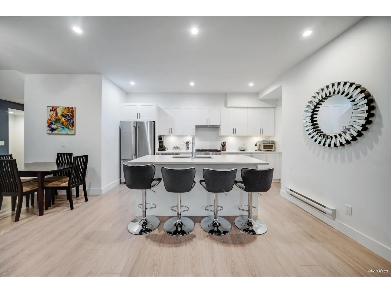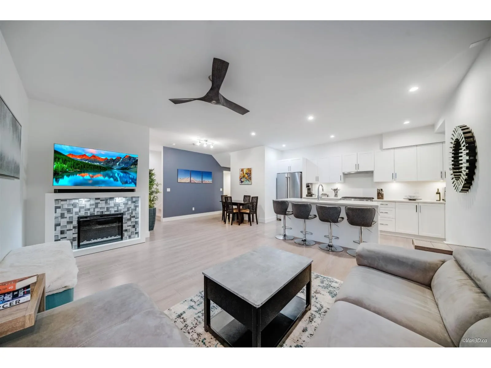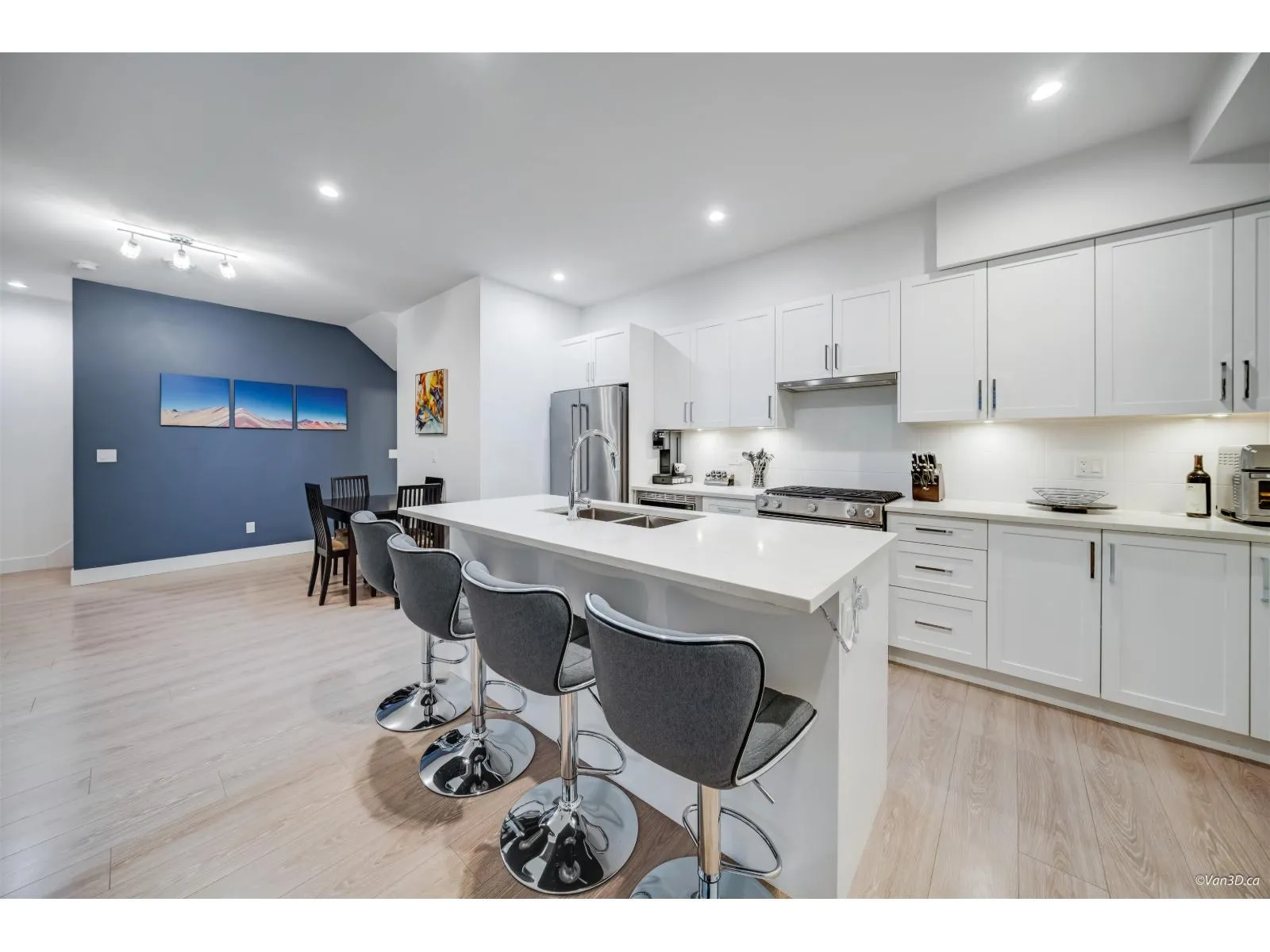 This stunning 3-bed + den end unit at Berkeley Village offers over 1,500 SF of bright, modern living space. This corner unit provides extra privacy and natural light, complemented by a superior side-by-side double garage with EV charger. The gourmet kitchen features a large quartz island, gas cooking, and high-end S/S appliances. The flexible layout showcases an open-concept main floor with a dedicated den space. Luxury finishings include polished quartz surfaces and contemporary fixtures throughout. The massive rooftop patio is a true extension of the home, featuring a hot tub and umbrella for year-round enjoyment. Pet owners will love the integrated "catio" (easily removable). Commuting is a breeze w/ quick access to Hwy 99/US border. Easy to show anytime. Open Sat Jan 3rd, 2-4pm. (id:27476)
