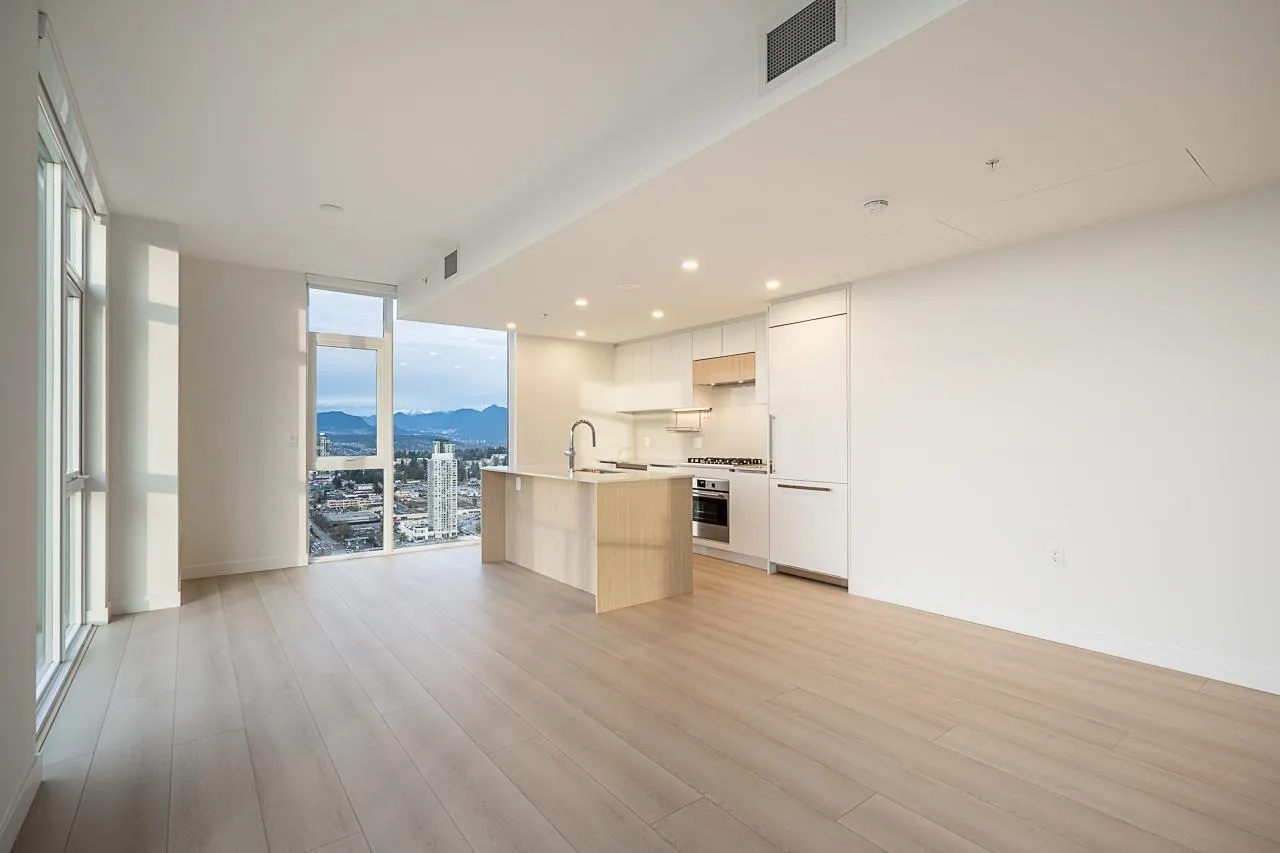SUB-PENTHOUSE at Century City, quality built by Century Group. Stunning NW CORNER | 2 BED | DEN | 2 BATH, almost 1,000 sq.ft. of refined living with spectacular panoramic city, water, and mountain views. 9' ceilings, floor-to-ceiling windows, laminate flooring throughout, the home is bright, elegant, and functional. Gourmet kitchen features quartz countertops, Fulgor Milano S/S and GAS cooktop. Spacious primary bedroom includes walk-in closet, a spa-inspired ensuite with rainfall shower and mirrored medicine cabinet. Enjoy over 40,000 sq.ft. of luxury resort-style amenities, including a Fully Equipped GYM, Lounge, Games Room and much more! Steps to King George SkyTrain Station and King George Hub with restaurants, shops, banks. Walking distance to SFU, and future UBC campus. 10/10! (id:27476)