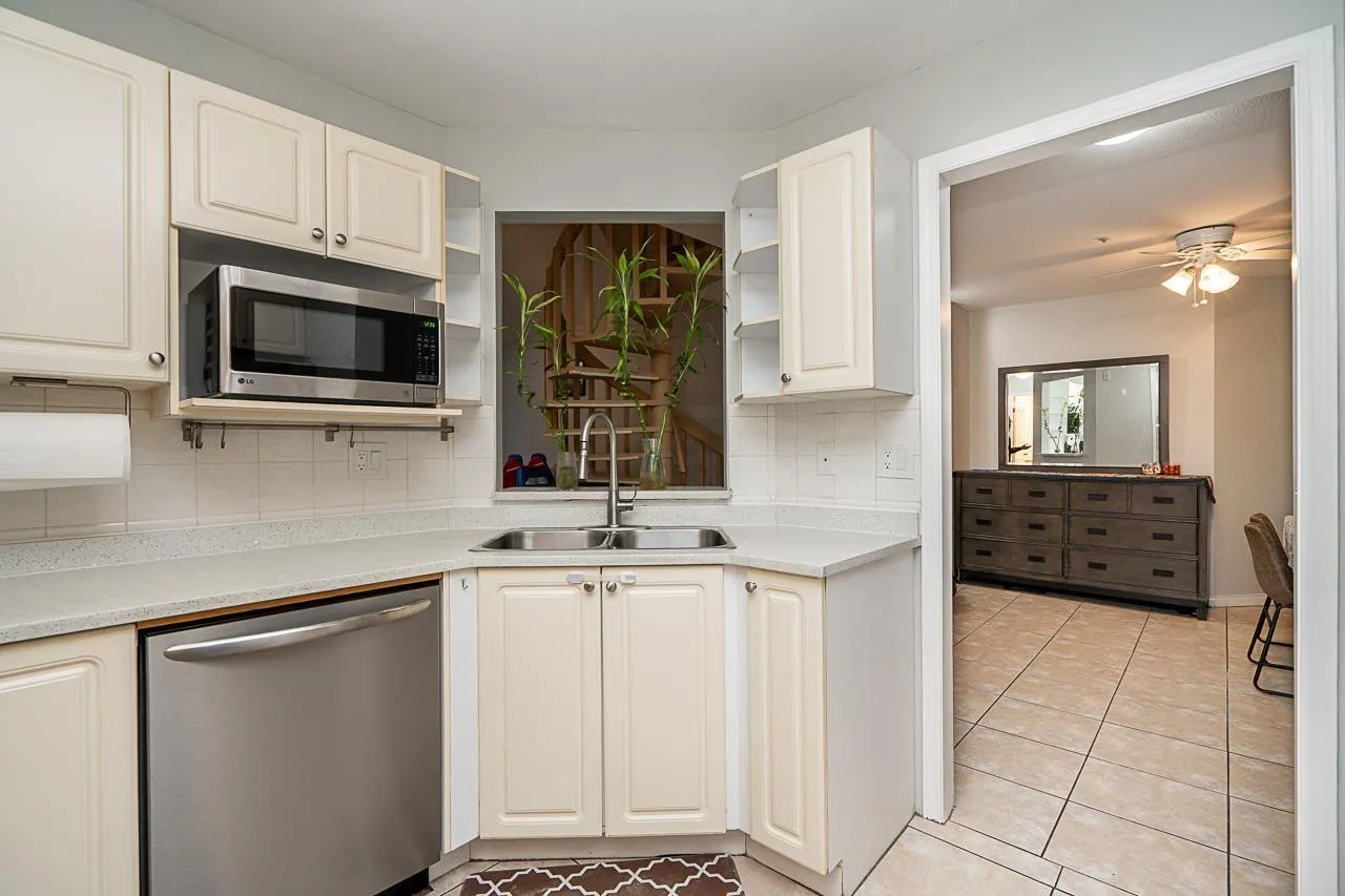 Beautifully spacious top-floor home featuring 2 bedrooms plus a loft large enough to serve as a third bedroom. Enjoy vaulted ceilings, skylights, generously sized rooms, a rooftop deck and a private balcony. Additional highlights include a gas fireplace, a large kitchen, spiral staircase, expansive windows, in-suite laundry room, and side-by-side parking. This well-maintained home is truly move-in ready, offering newer appliances, a 4-year-old hot water tank, radiant in-floor hot water heating, a gas fireplace, and impressive smart-control thermostats and lighting. The living room features new laminate flooring. Pets are welcome 2 cats or dogs. Conveniently located close to shopping, transit, the temple, and a variety of amenities. A truly impressive home. (id:27476)