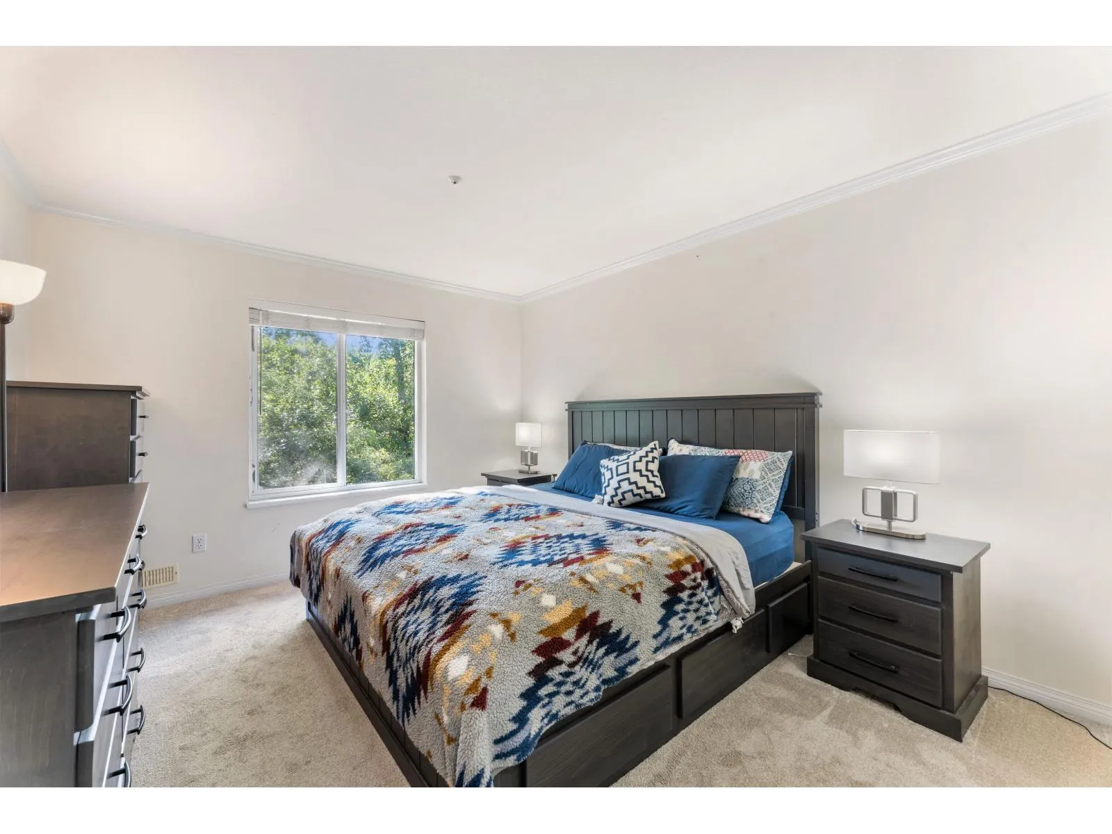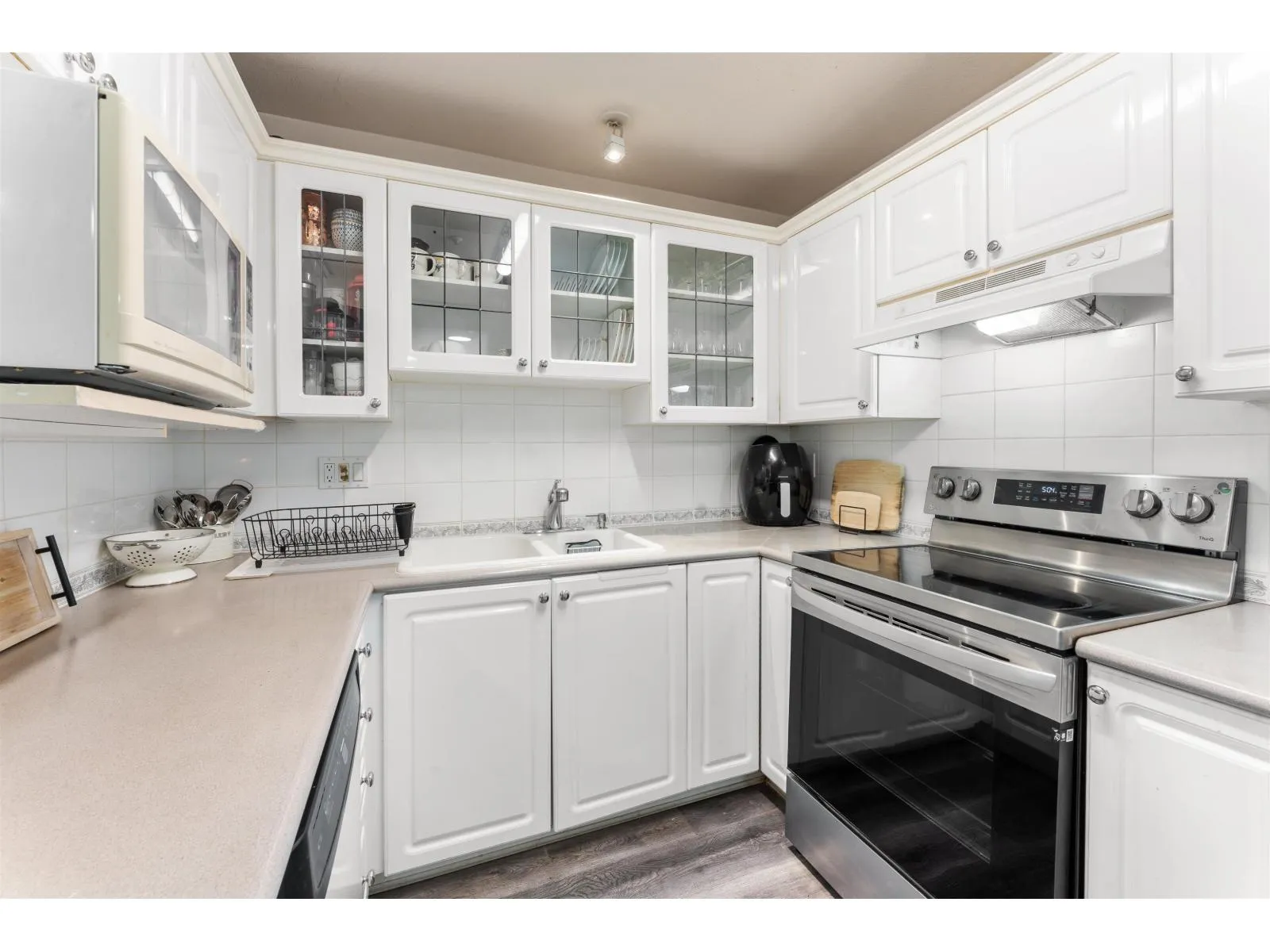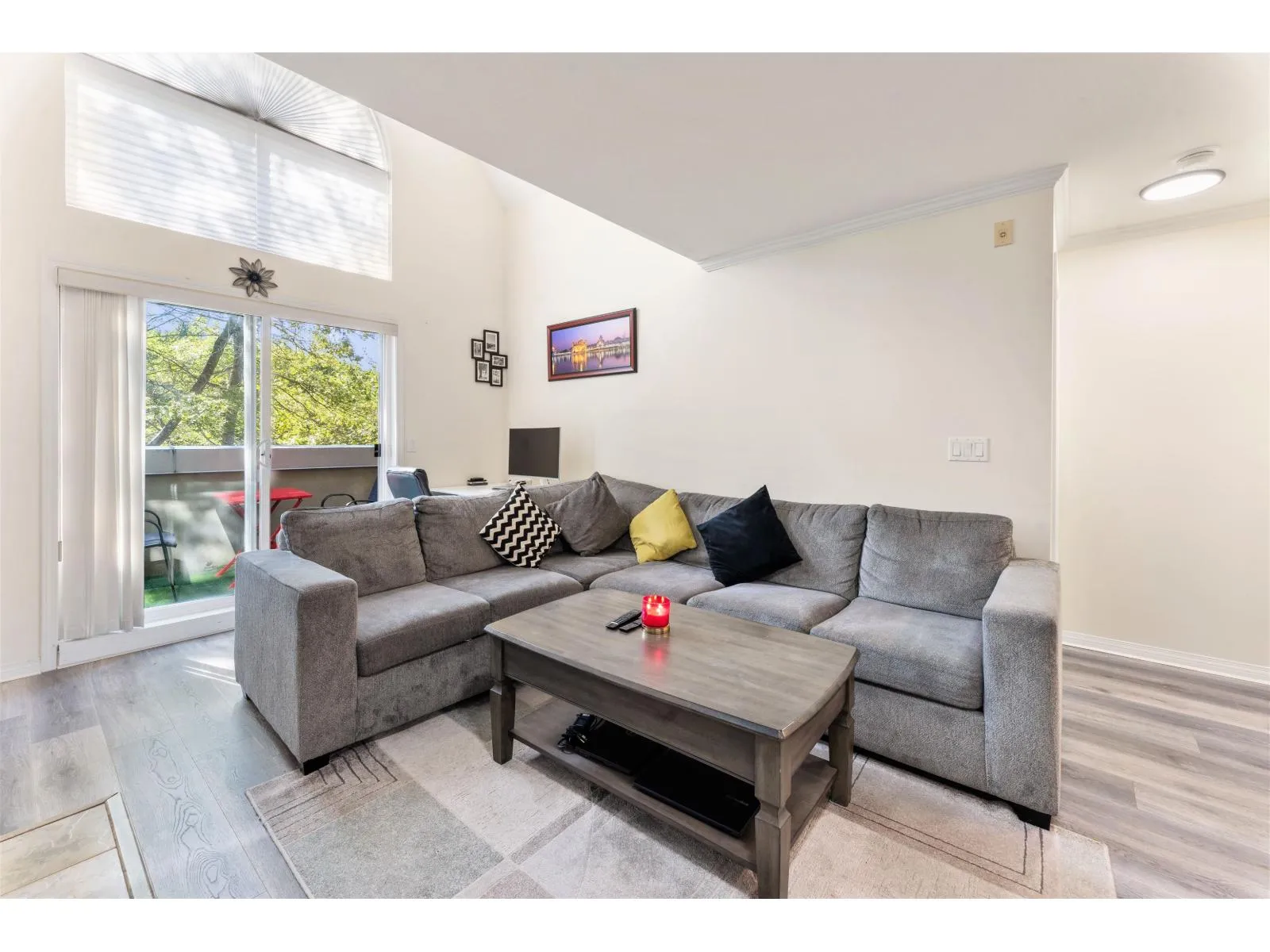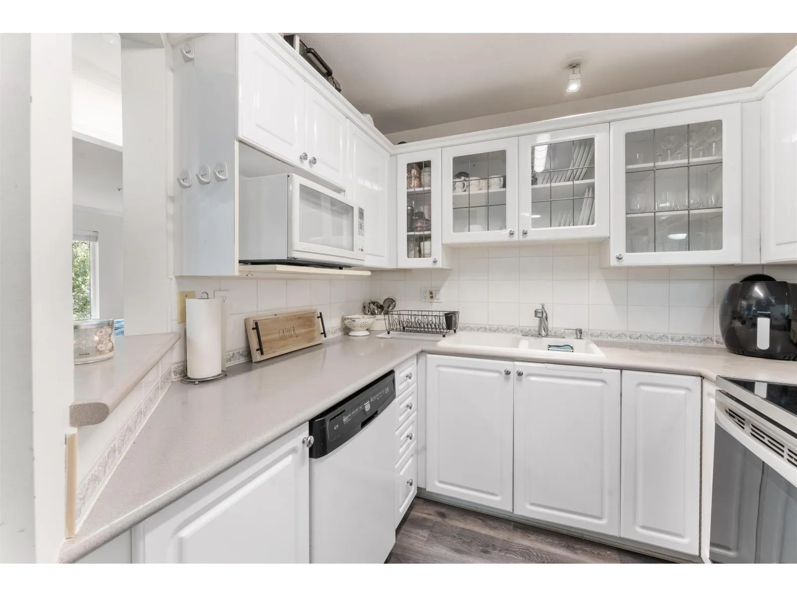 Welcome to this immaculate, bright and spacious TOP FLOOR, END UNIT which offers 2 bed & 2 bath, living room with vaulted ceiling and upgrades including floor, washer/dryer, Dish washer, hot water tank, lighting and more. Roof replaced in 2020. Unit comes with two parking spots. Well maintained building with car wash in parking. Spacious storage locker. Close to transit, shopping, Restaurants, Banks, Library & Movie Theaters. All of this yet the condo is tucked in a quiet residential setting, pets allowed and strata fee includes Radiant-Heat and Gas fireplace. (id:27476)