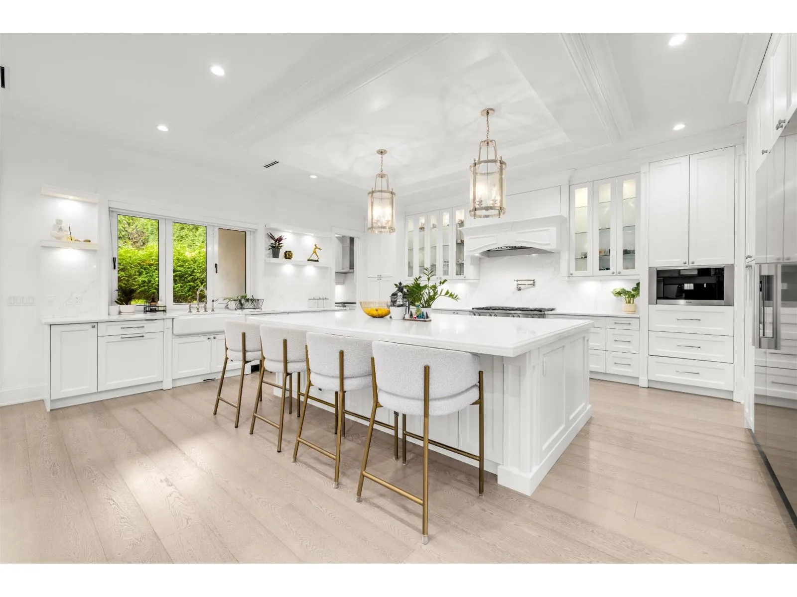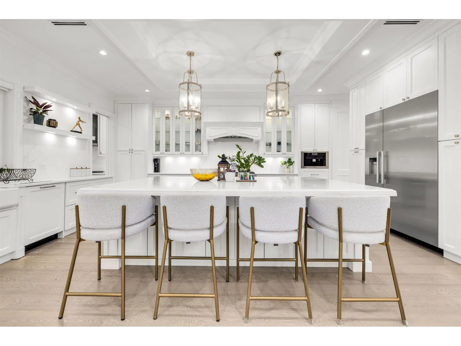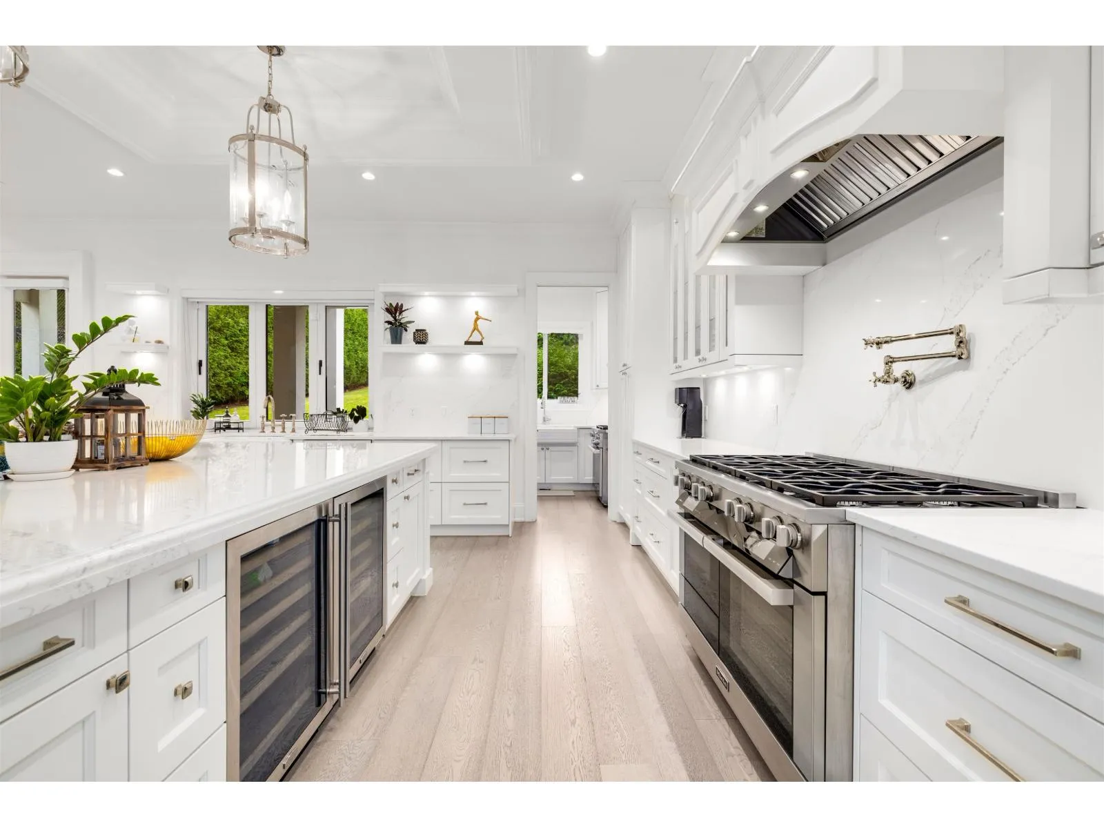 This exquisite, custom French-inspired residence is truly stunning. Situated on a 12,000 sq. ft. south-facing lot, the home enjoys exceptional natural light & exposure throughout. Designed for refined entertaining, the main level showcases a formal living room, adjacent dining room, & a unique, temperature-controlled wine room. The expansive great room is anchored by a chef's kitchen featuring Miele professional appliances and a fully appointed wok kitchen. A beautifully finished covered patio creates a seamless indoor-outdoor living experience. The upper level offers 4 generously sized BDRMS, including an extraordinary primary suite that rivals the world's finest luxury hotels. The entertaining basement features a theatre room, wet bar, gym, & guest BDRM, completing this exceptional home. (id:27476)
