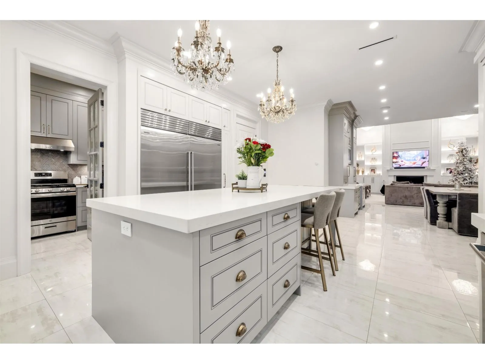 Ultra-luxury custom-built residence on quiet cul-de-sac, offering 5,200 sq. ft. of refined living space. Crafted with no expense spared, this home showcases exceptional quality and attention to detail throughout. Features include a custom floating staircase, 20-ft grand foyer and family room, and a gourmet kitchen equipped with Sub-Zero & Wolf appliances & a separate spice kitchen. The upper level offers three bedrooms with vaulted ceilings. The entertaining basement includes an English-style pub, theatre room, and fully equipped gym. Designed for elegant living and entertaining, the home opens to a private backyard oasis with putting green, outdoor kitchen and living area, and oversized hot tub. Minutes to Morgan Crossing, Grandview Aquatic Centre, Morgan Creek Golf Course and Southridge. (id:27476)