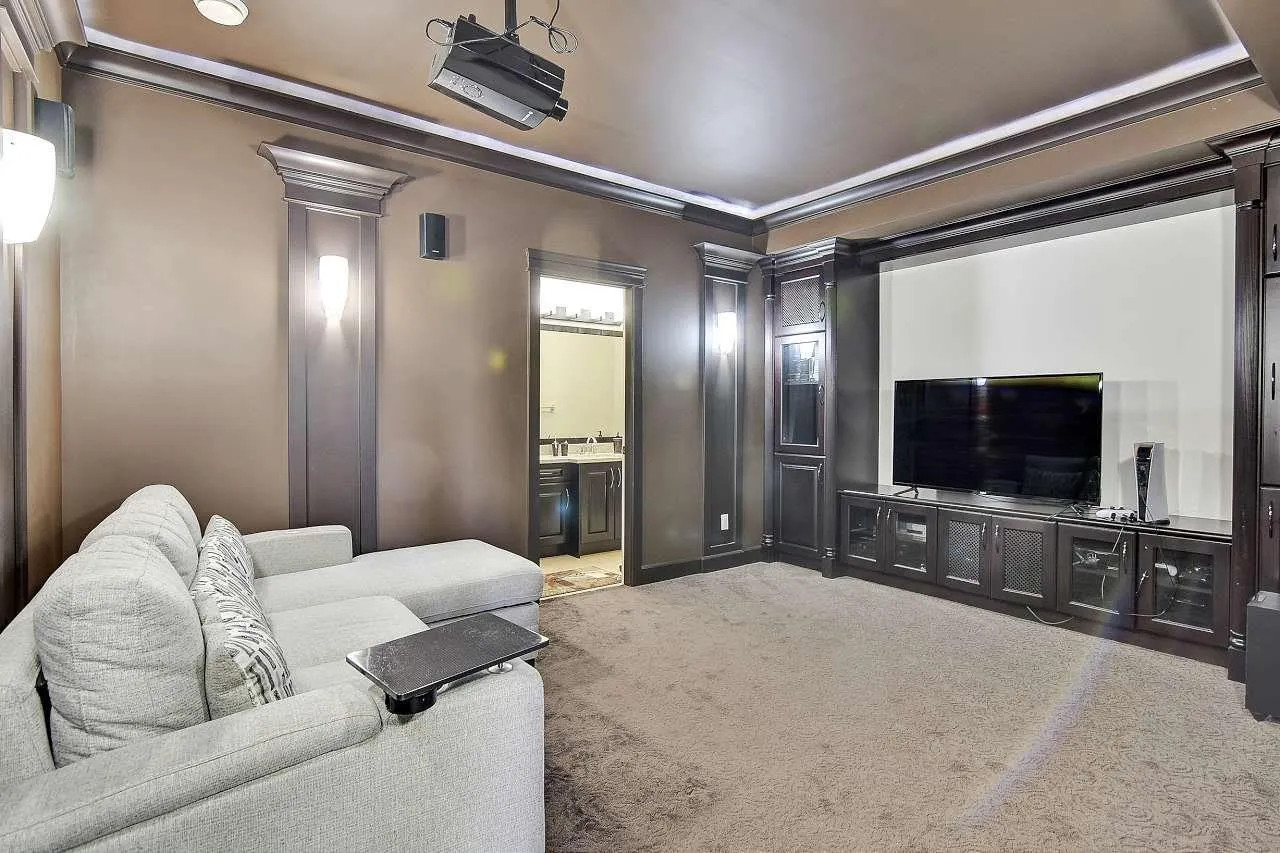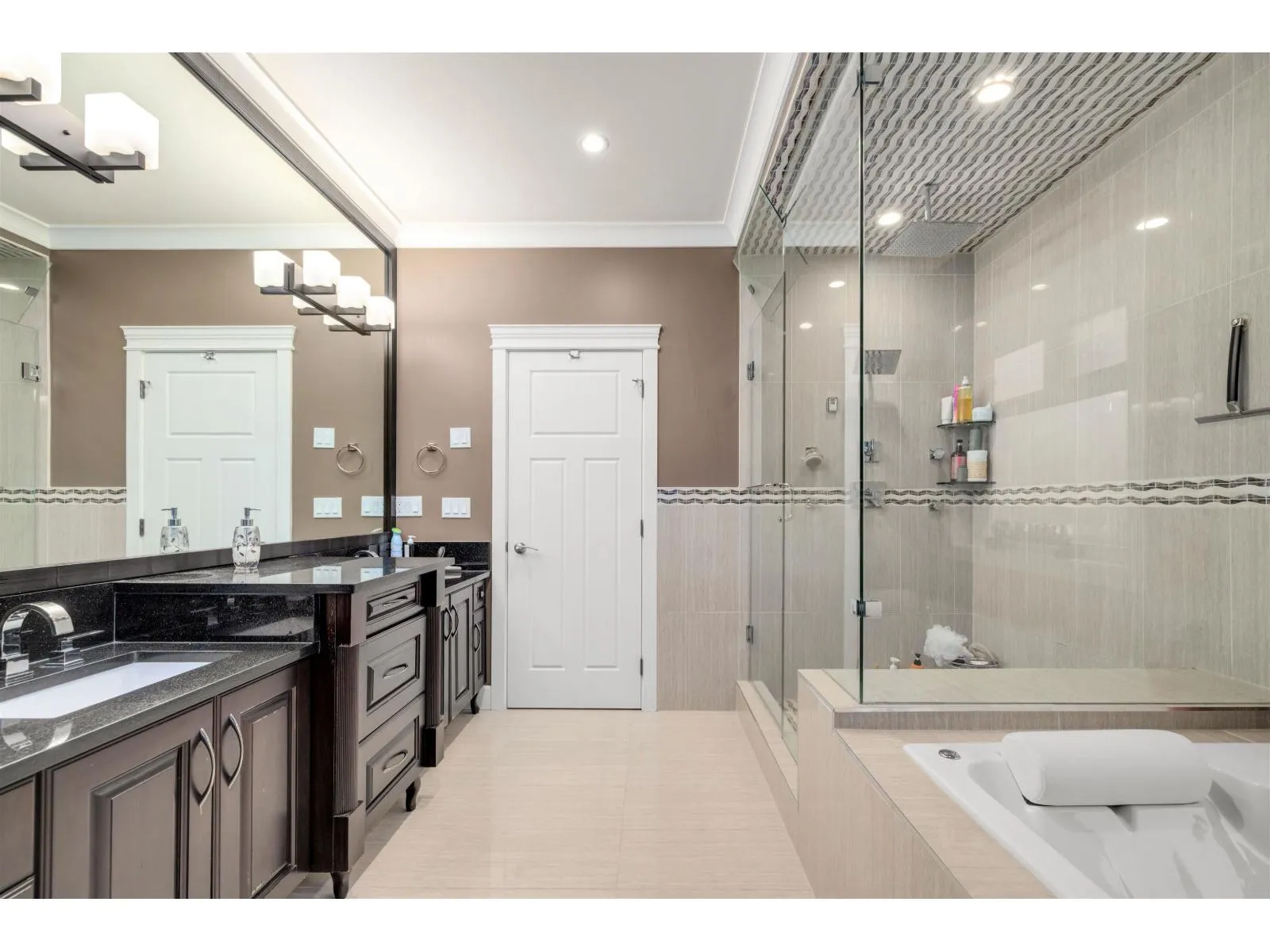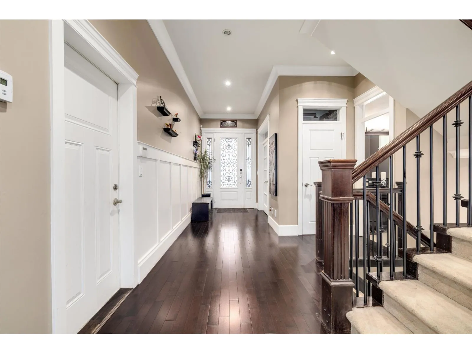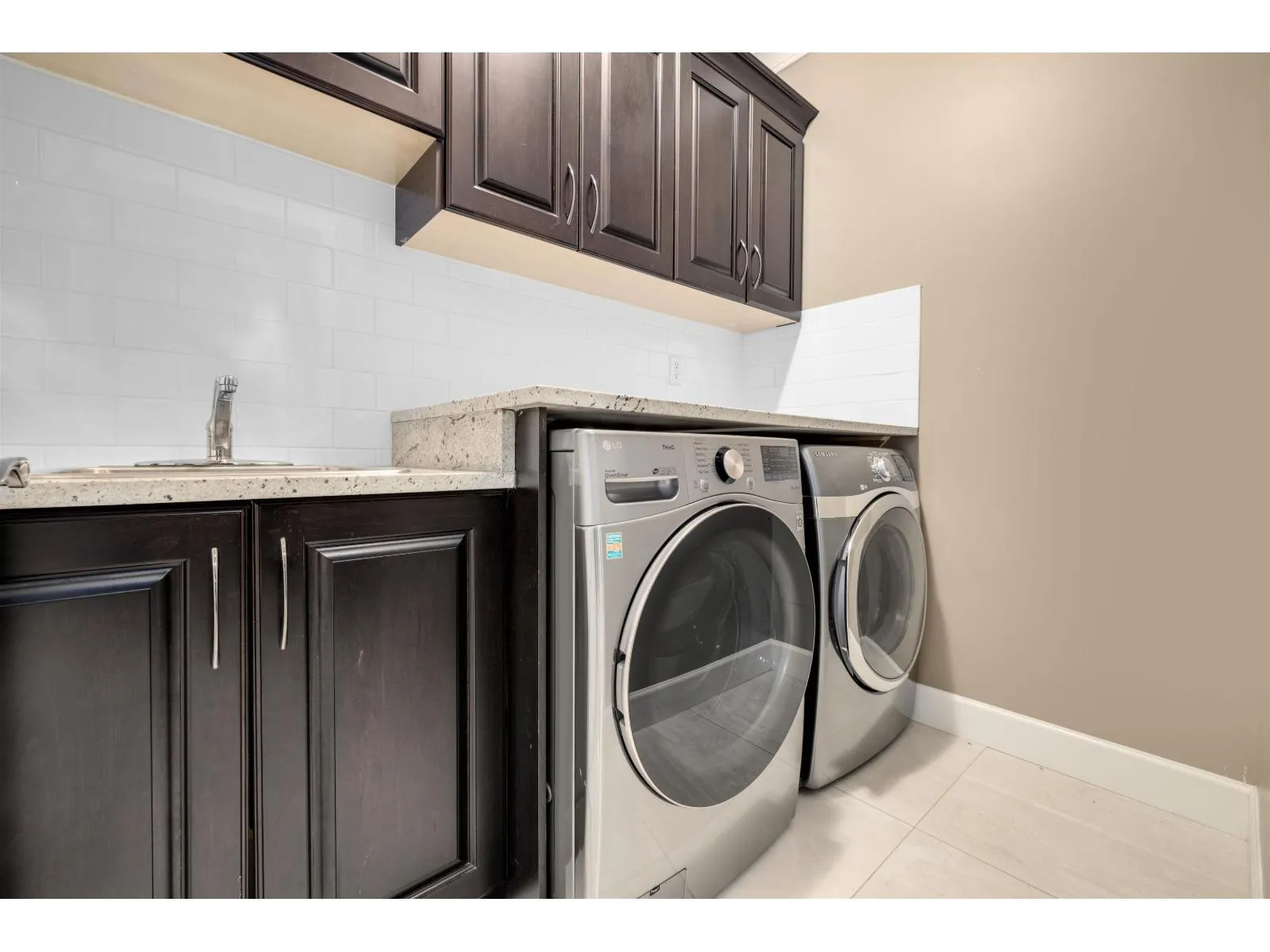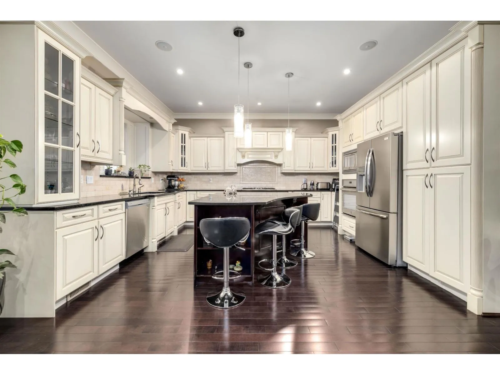 Anderson Walk! Finished and equipped to the highest standards, this stunning residence backs onto the Nicomekl River. The great room opens to a spacious island kitchen featuring antique white cabinets with soft-close doors and drawers, granite countertops, and high-end stainless steel appliances. Solid hardwood floors flow throughout the main level, complemented by premium carpet in all bedrooms. A feature wall in the great room showcases built-in cabinetry and a stone-finished fireplace. A den/office is conveniently located off the foyer. The luxurious 5-piece primary bedroom includes a jacuzzi tub and steam shower. The fully finished basement offers a large recreation room and a separate theatre room. Additional highlights include central A/C, built-in vacuum, and a security/alarm system. (id:27476)